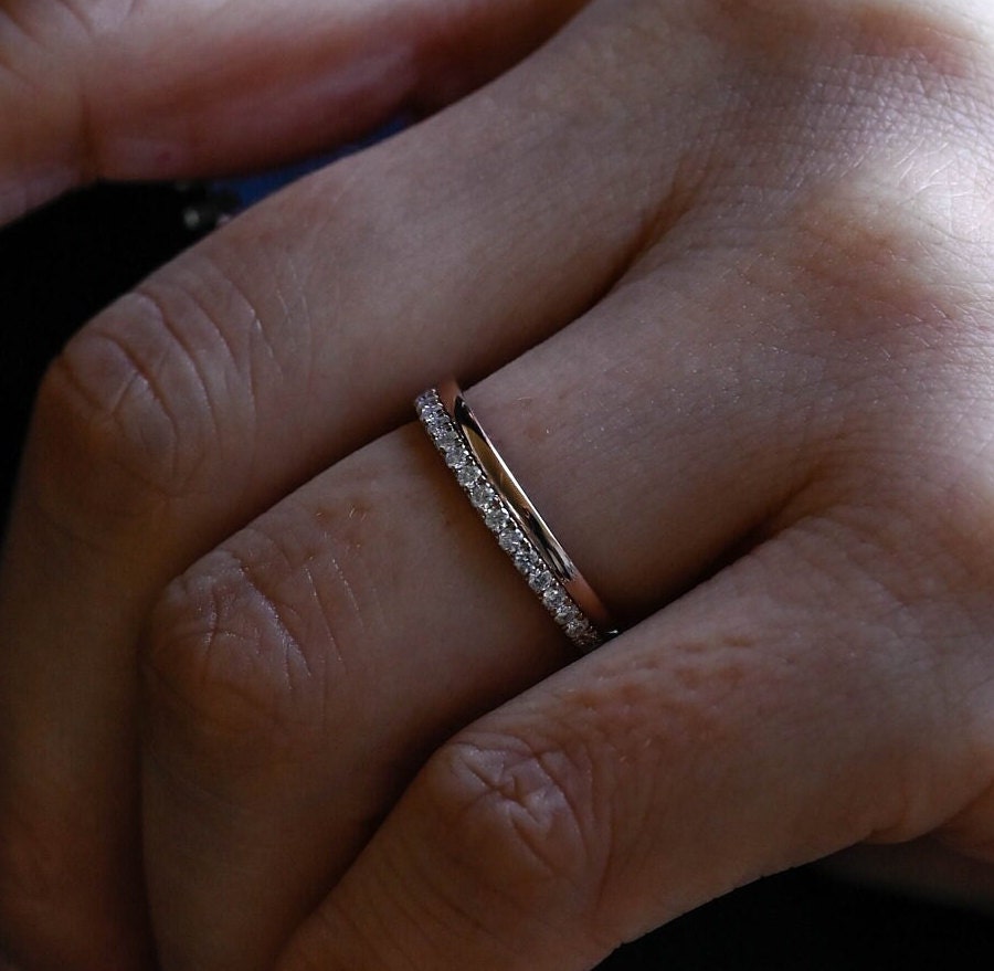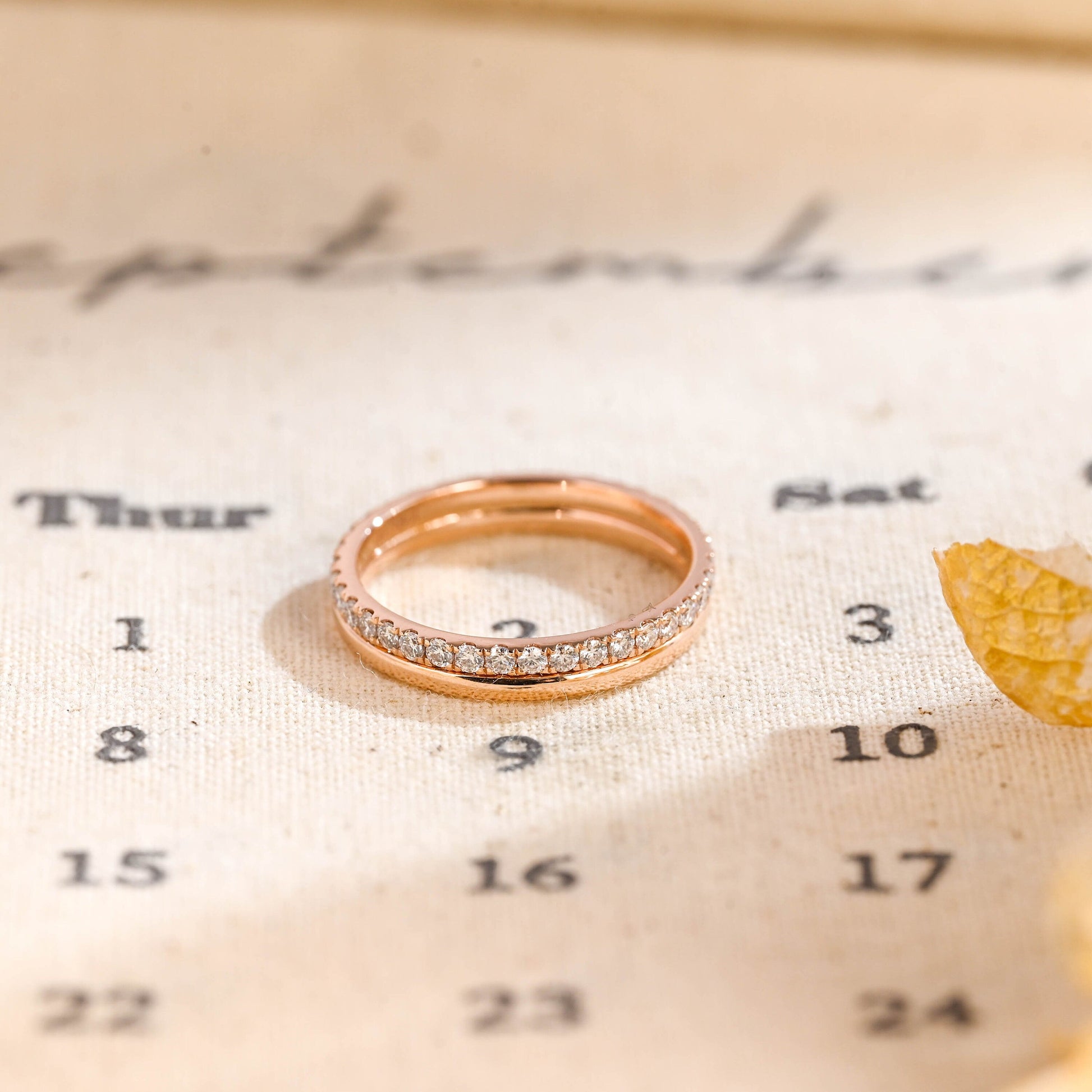 Solid Gold Round Cut Full-Eternity Channel Setting Moissanite Matching Band