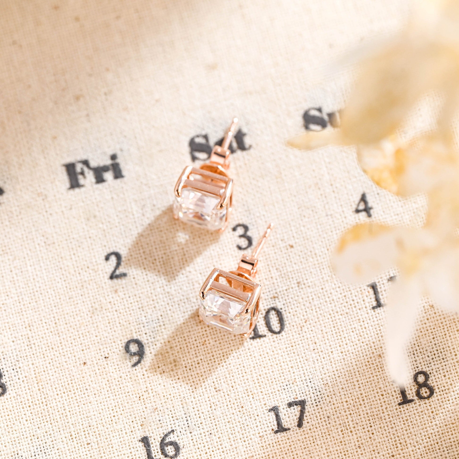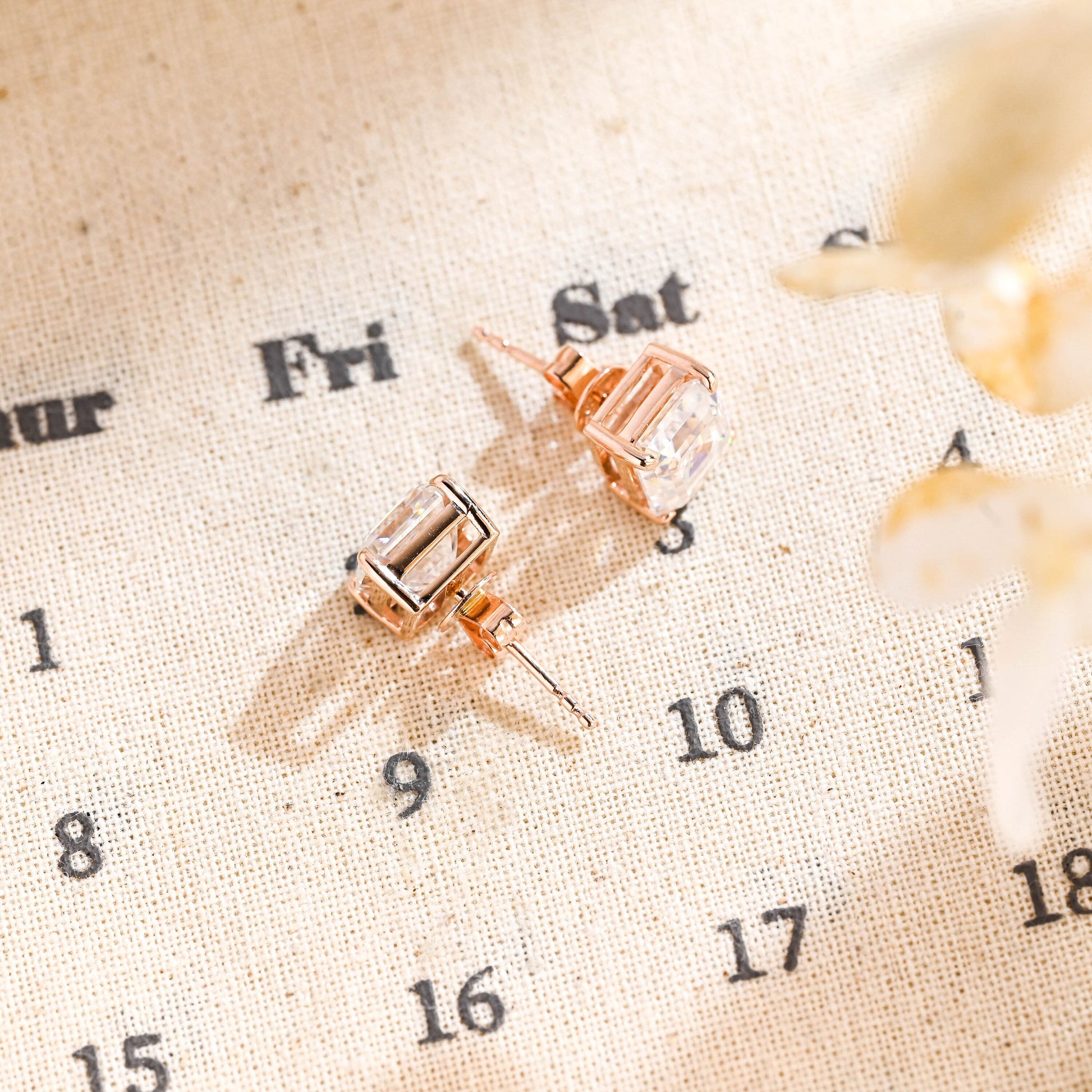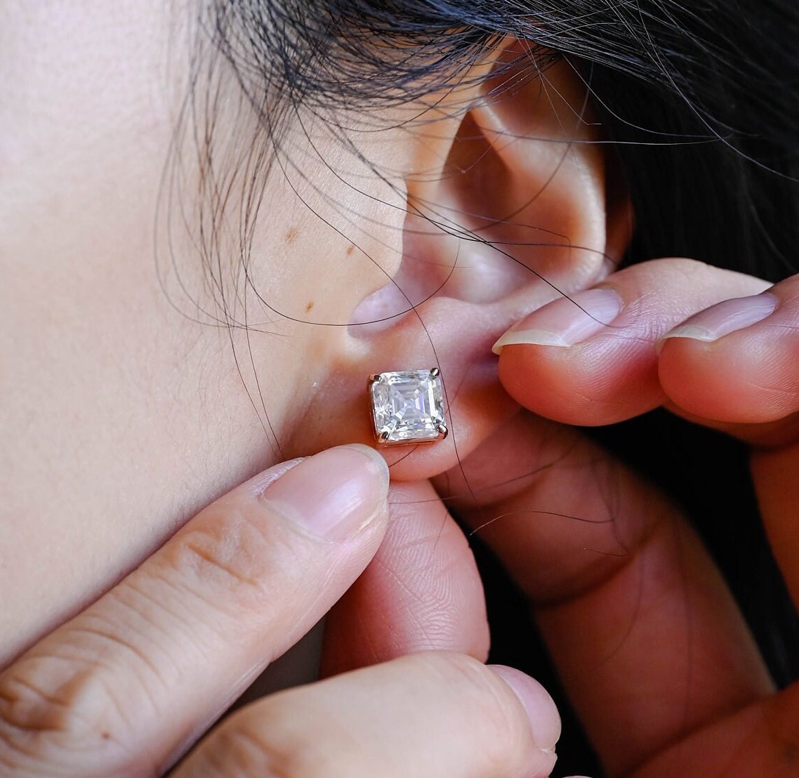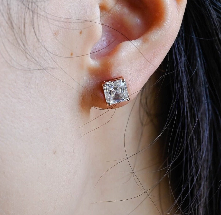 Asscher Cut Moissanite Engagement Earrings Studs, Minimalist 9K/14K/18K Solid Gold Moissanite Earrings Anniversary Christmas Gift for Woman