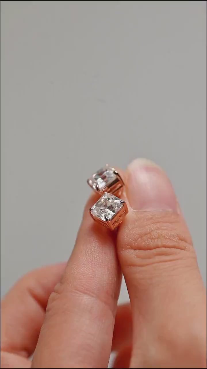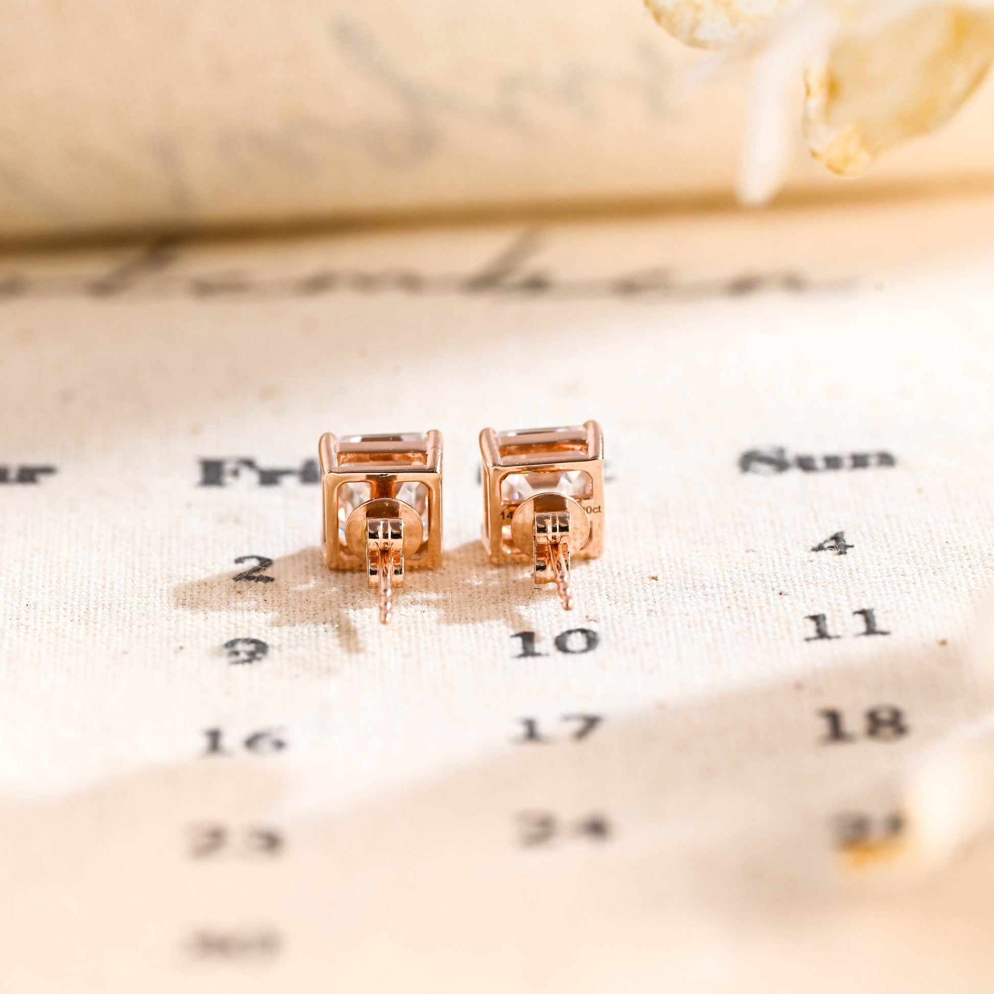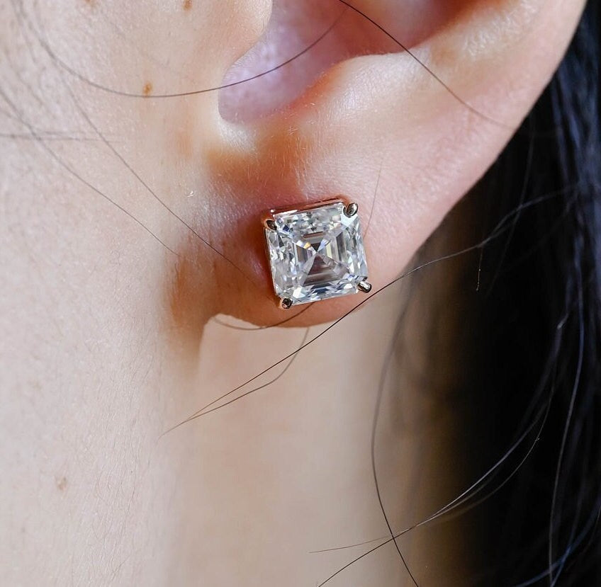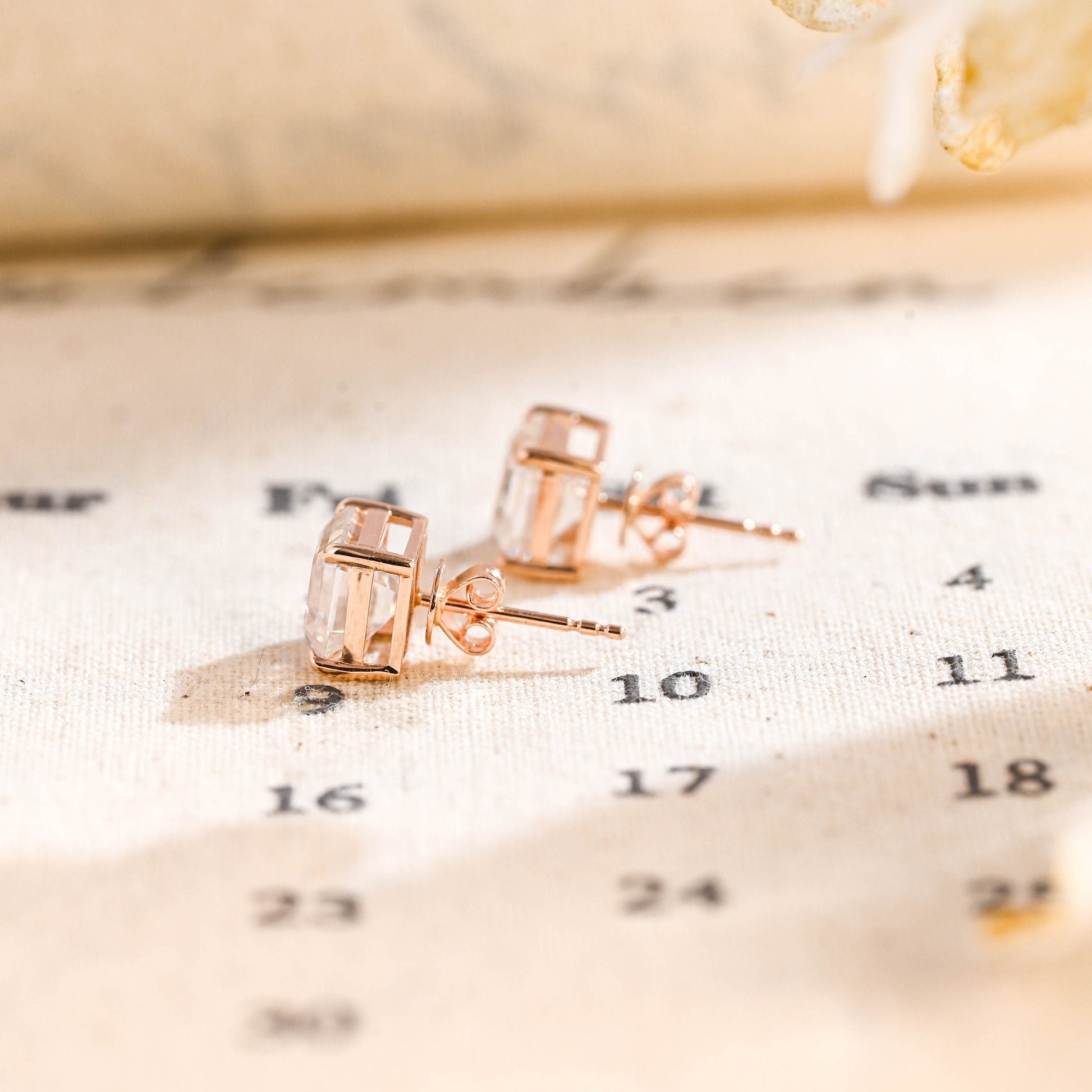 Asscher Cut Moissanite Engagement Earrings Studs, Minimalist 9K/14K/18K Solid Gold Moissanite Earrings Anniversary Christmas Gift for Woman