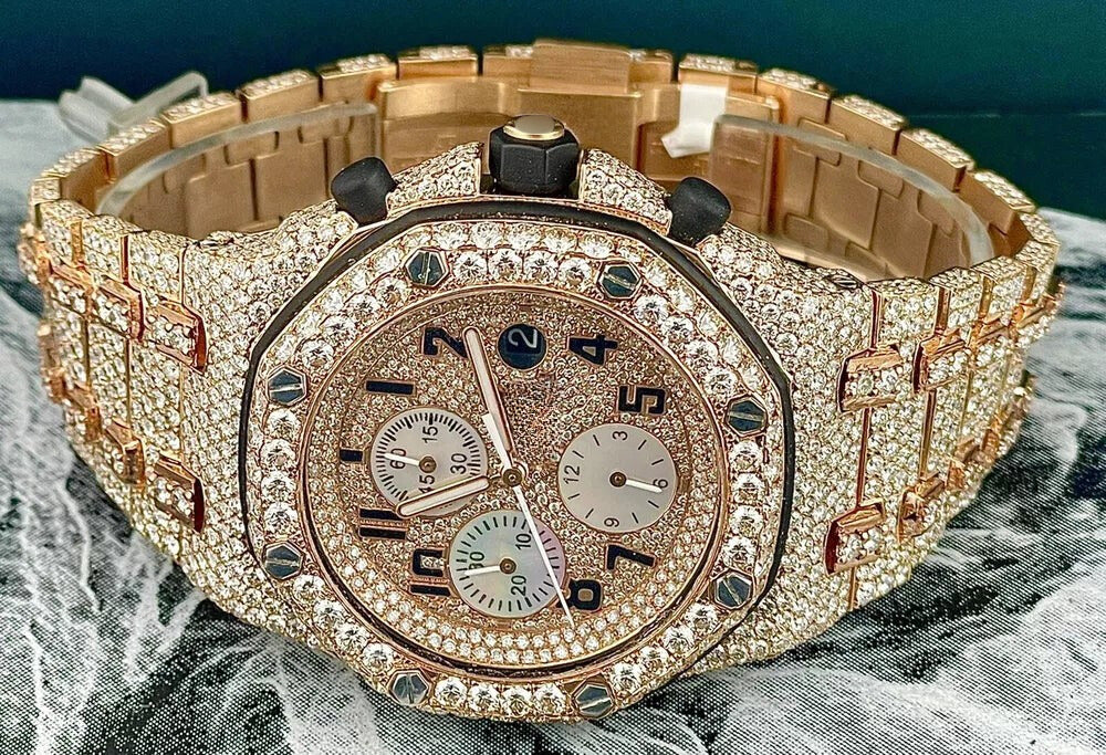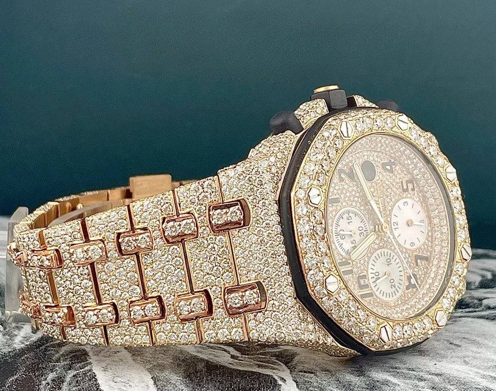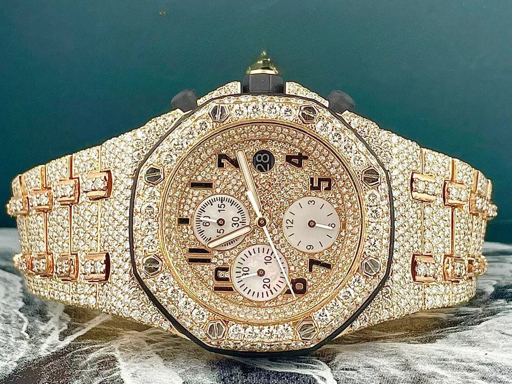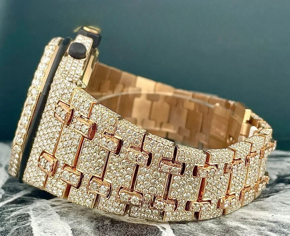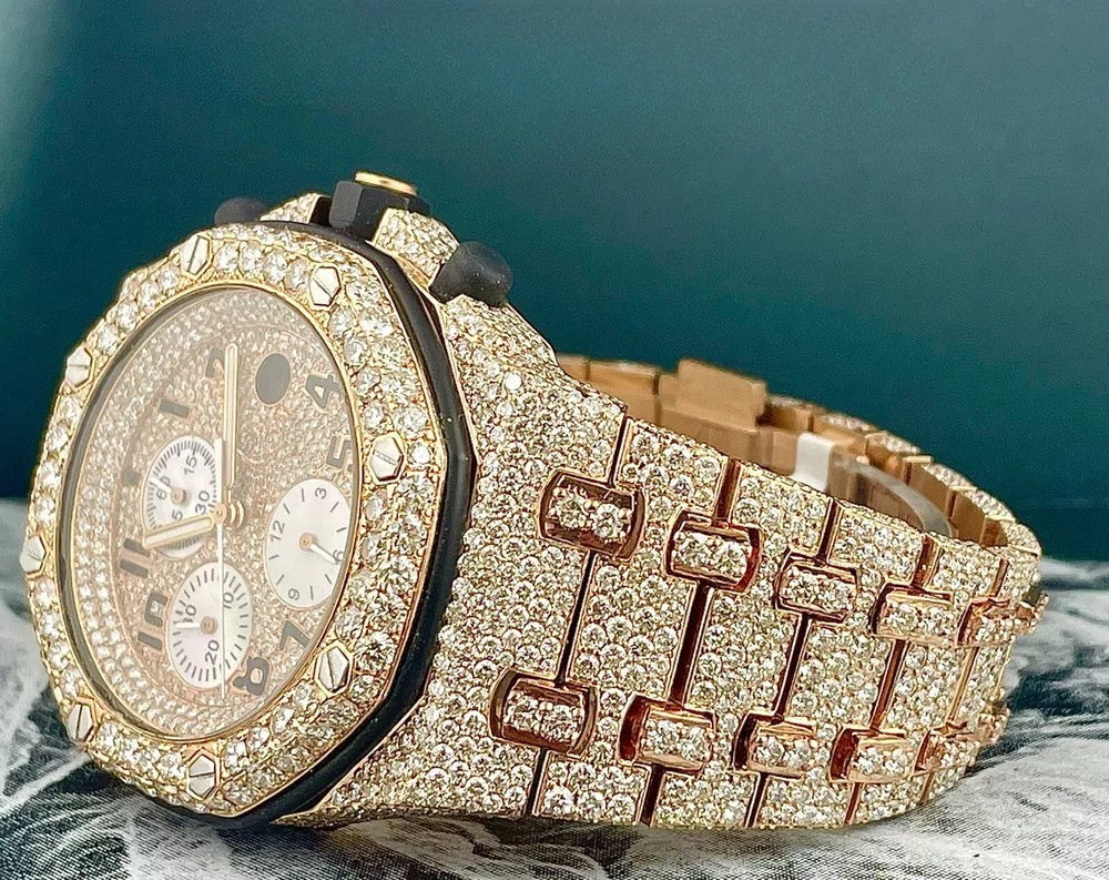 Abyss Moissanite Diamond Watch 42mm 18k Rose Gold Watch Iced 30ct Diamonds