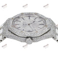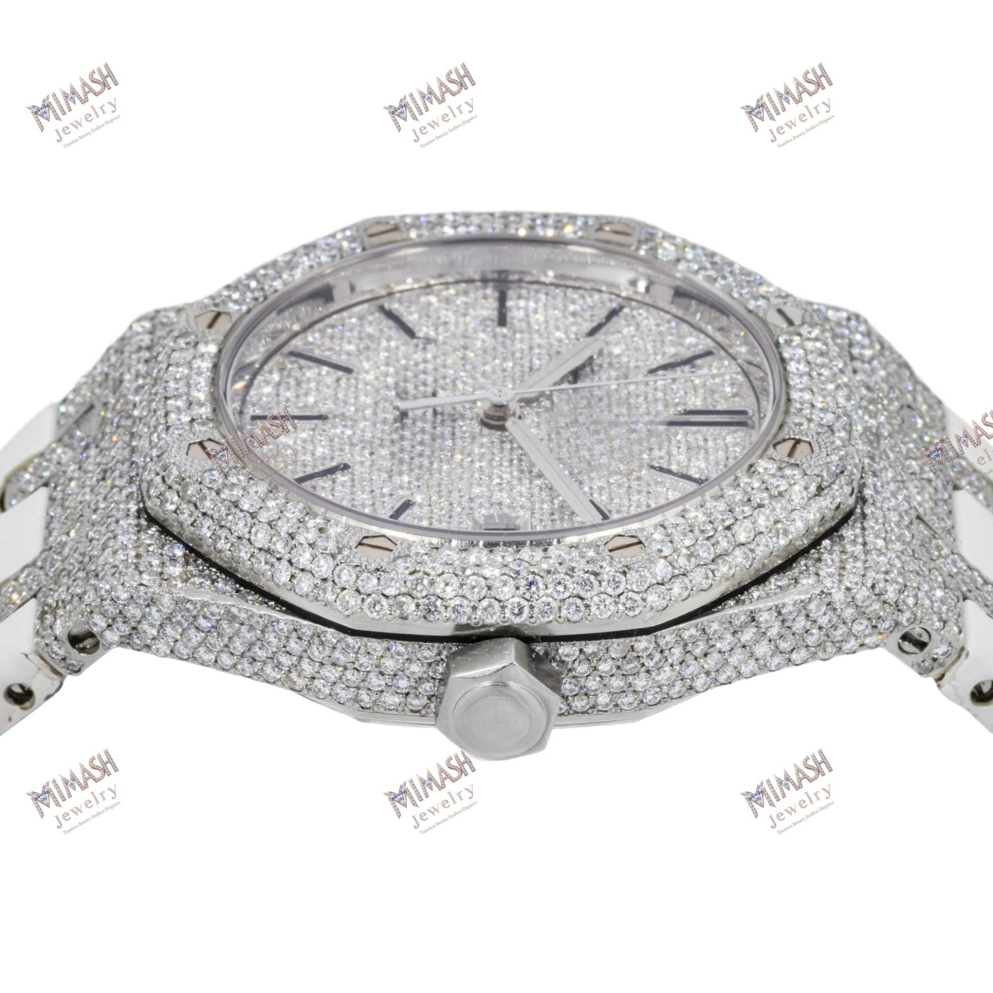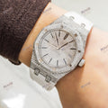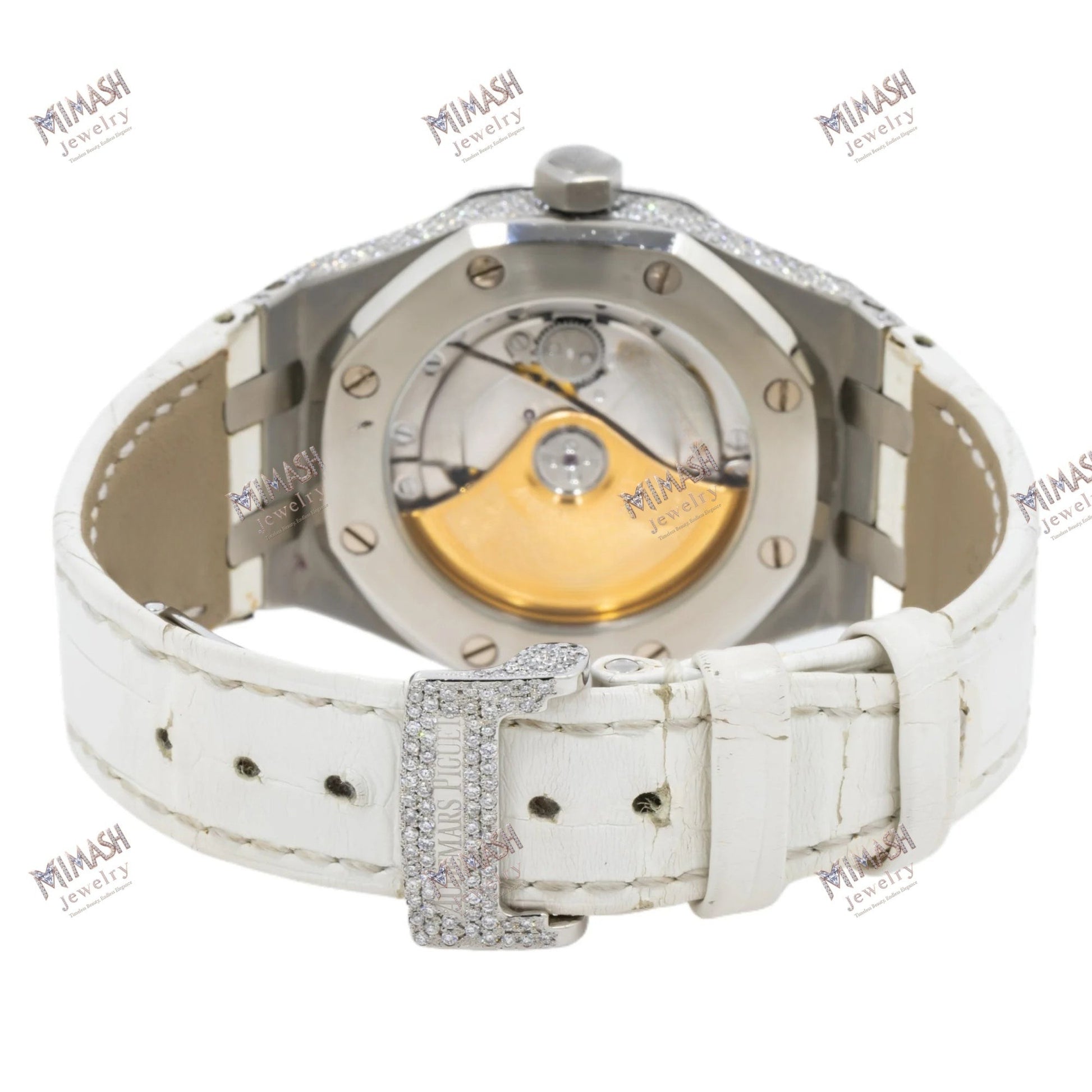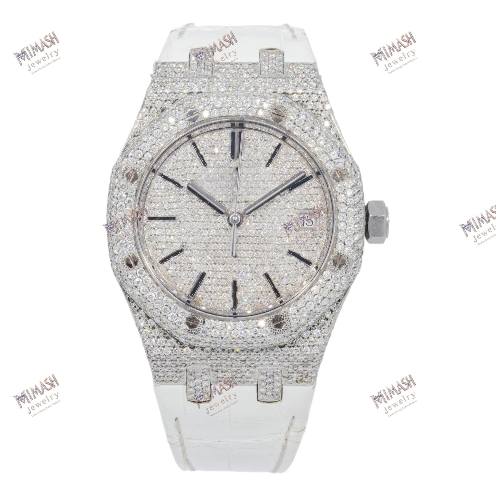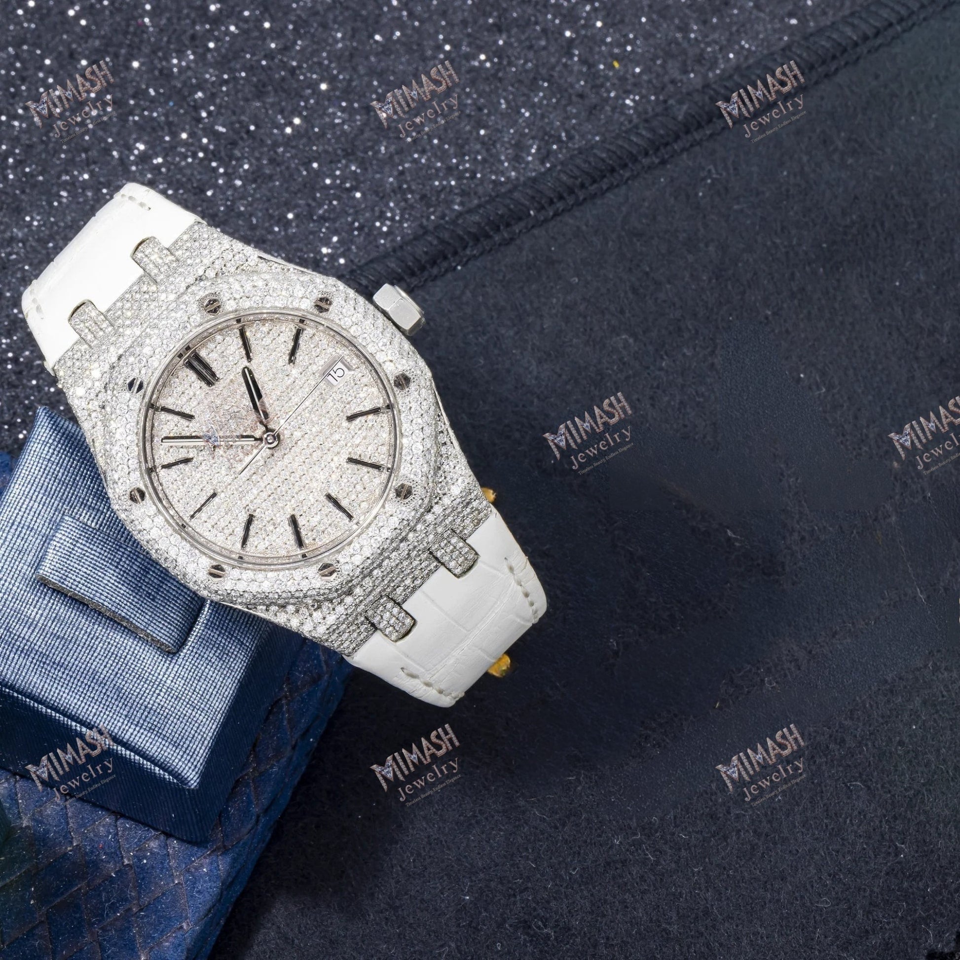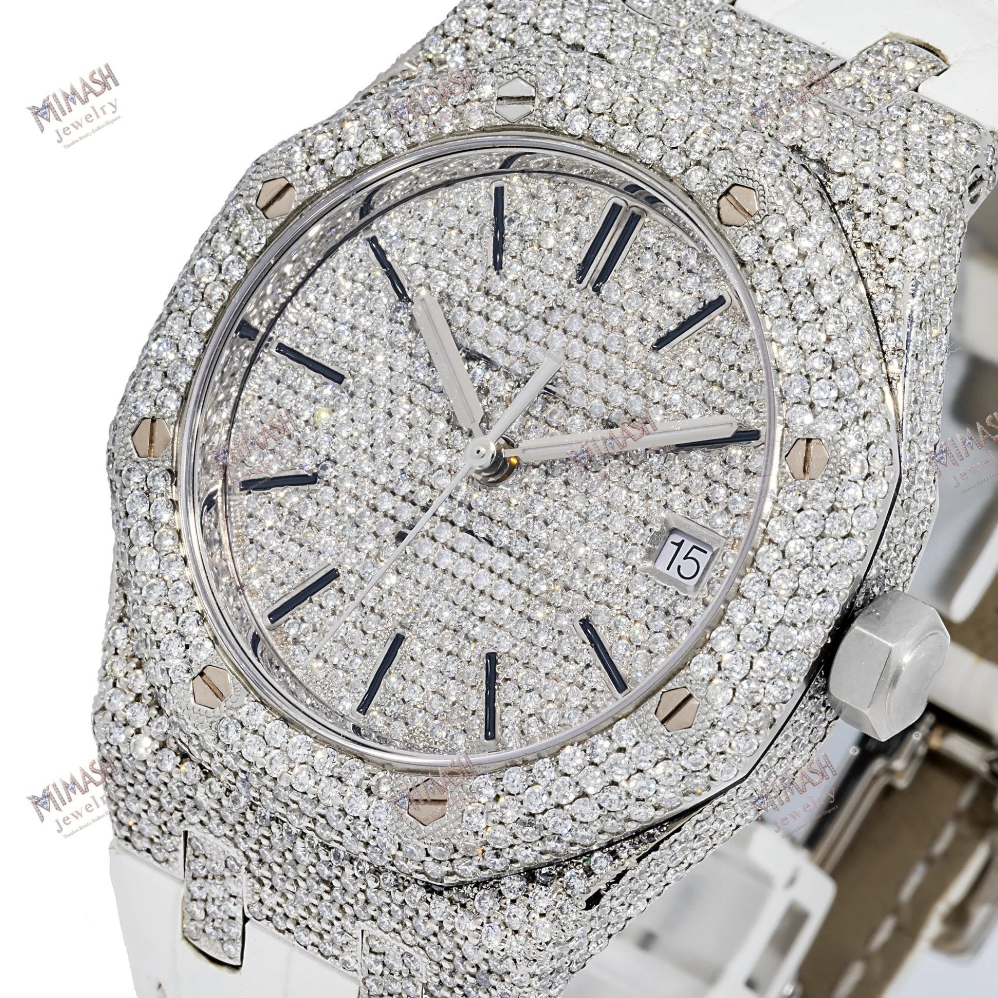 Aqua Chrono Moissanite Diamond Watch 37MM Diamond Dial And Bezel With White Rubber Bracelet