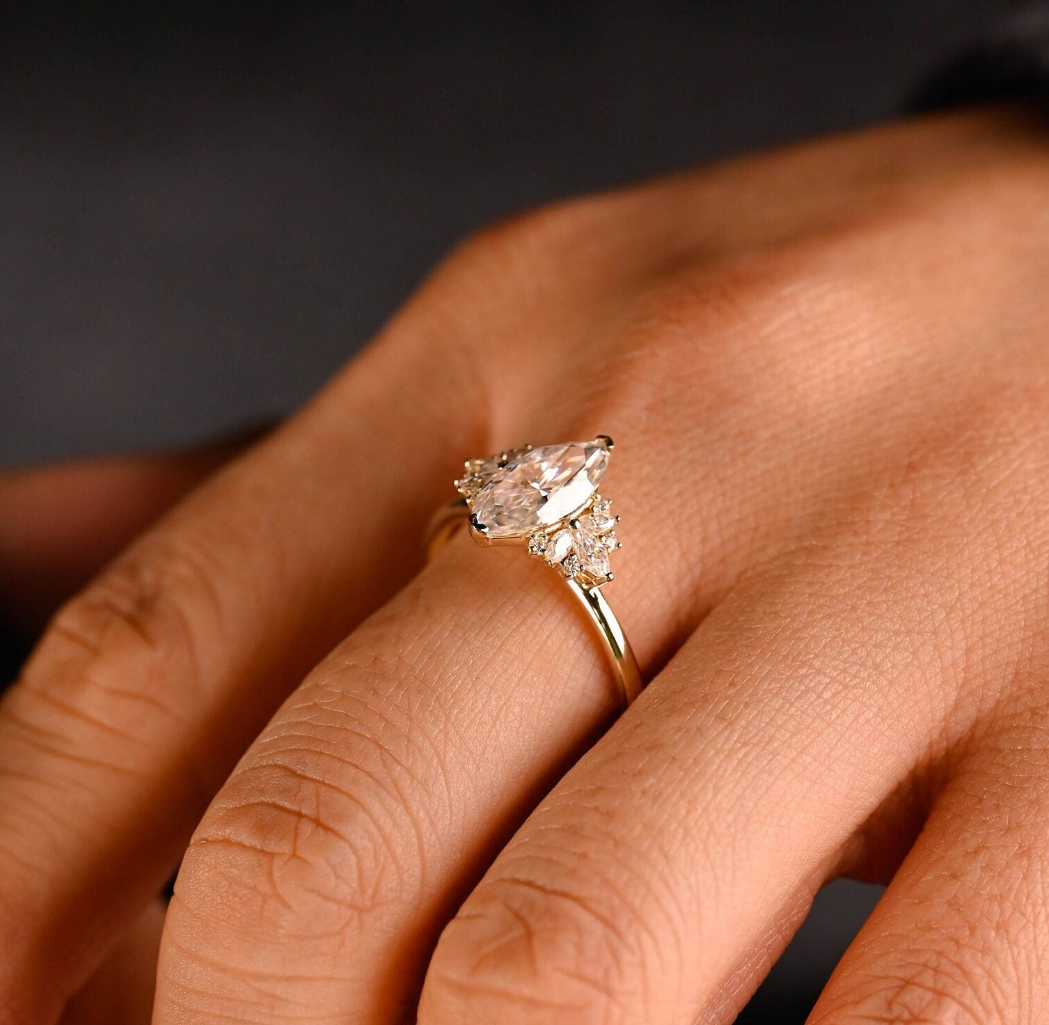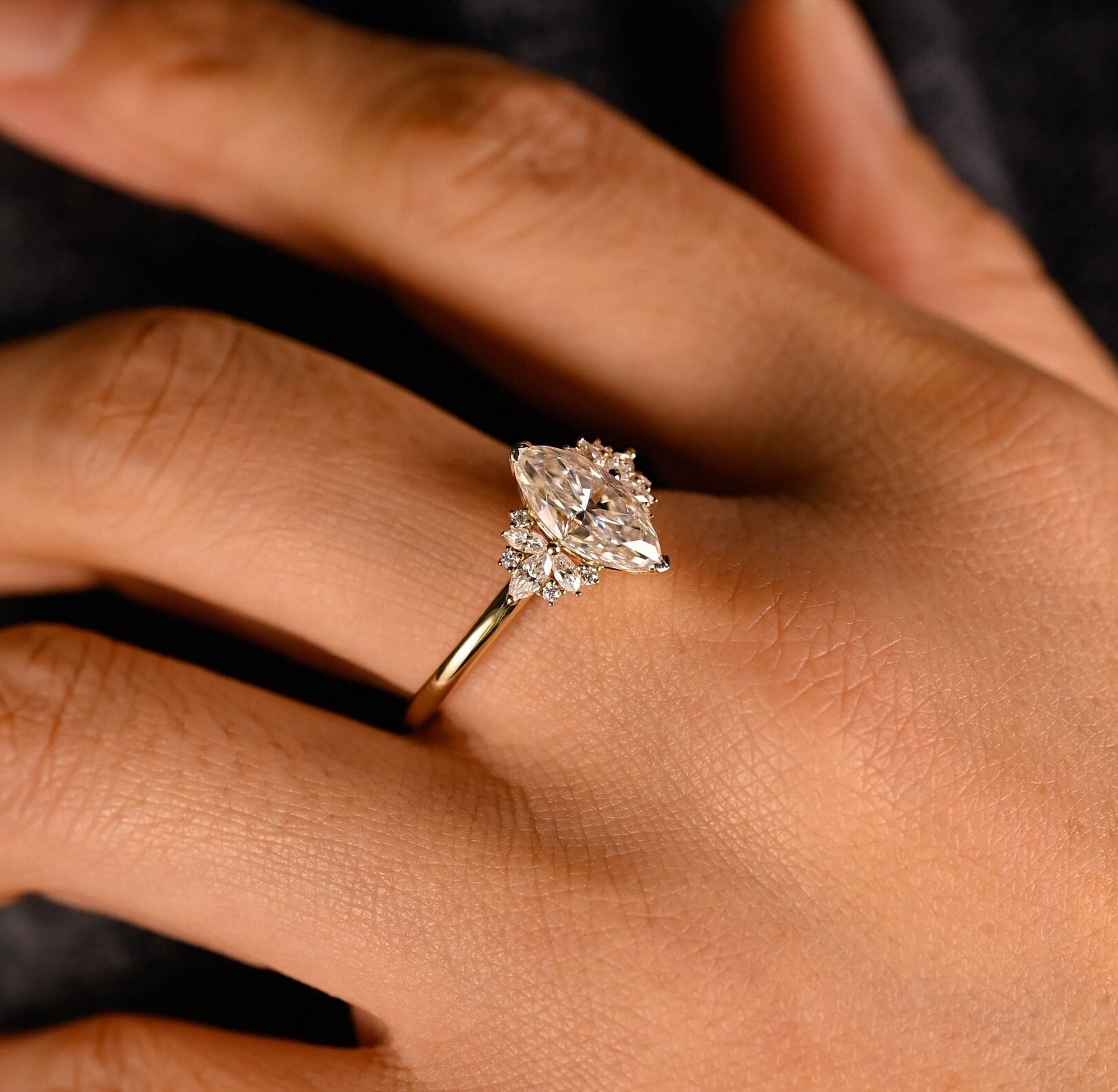 2.00ctΒ Bezel Prong Marquise Cluster Engagement Ring, Halo Marquise Wedding Ring, Vintage Ring, Anniversary Gift for Her