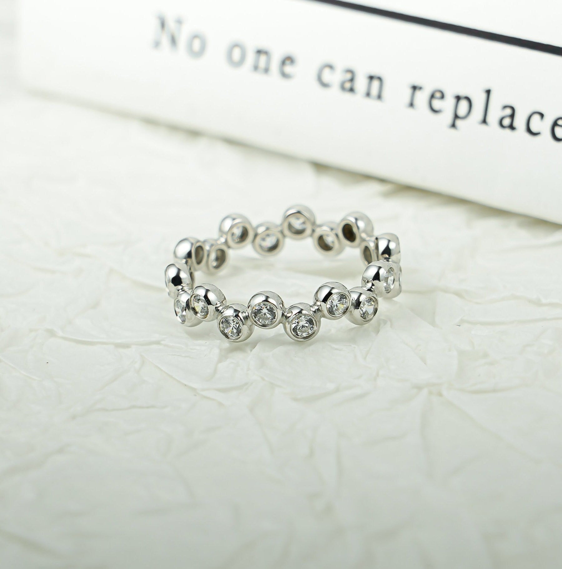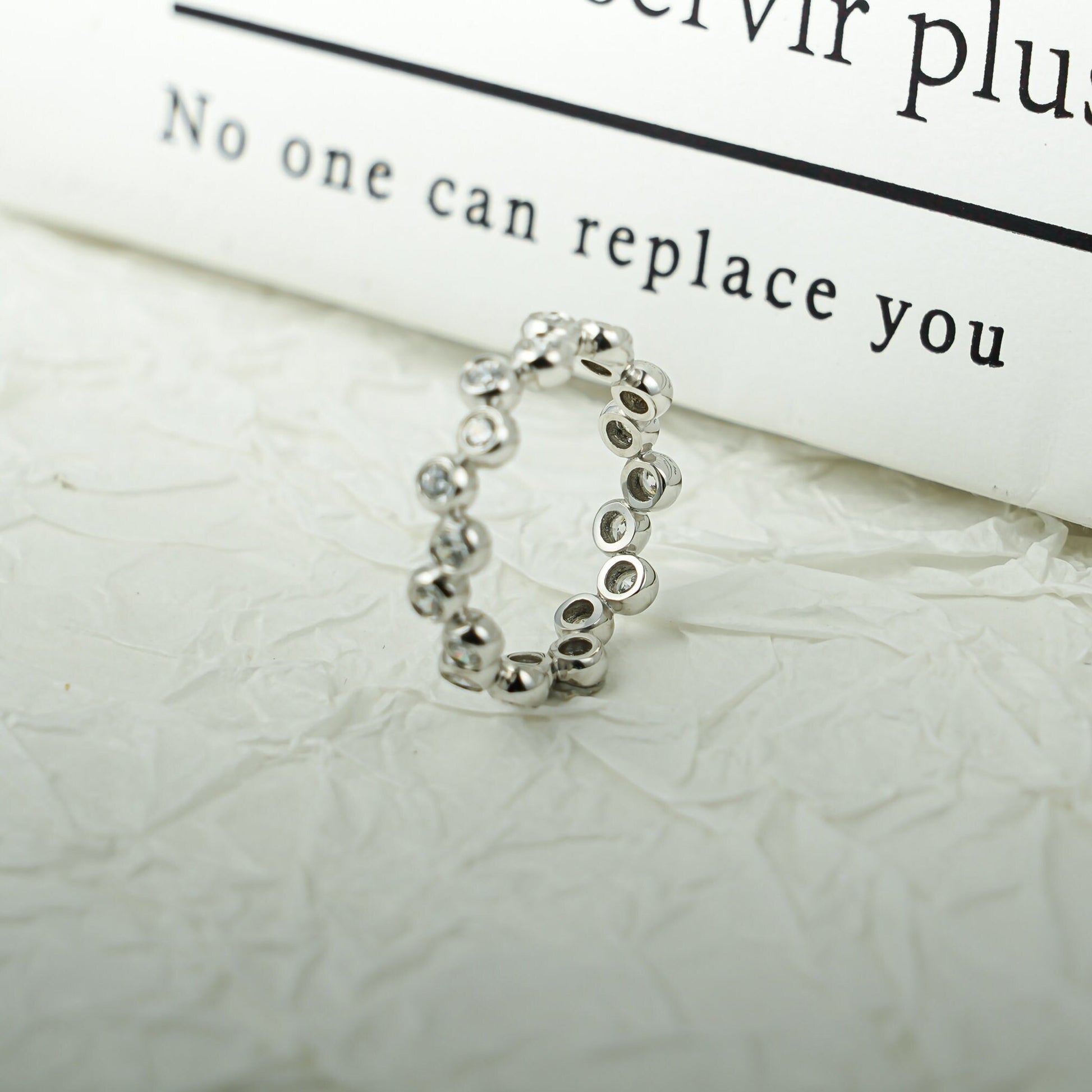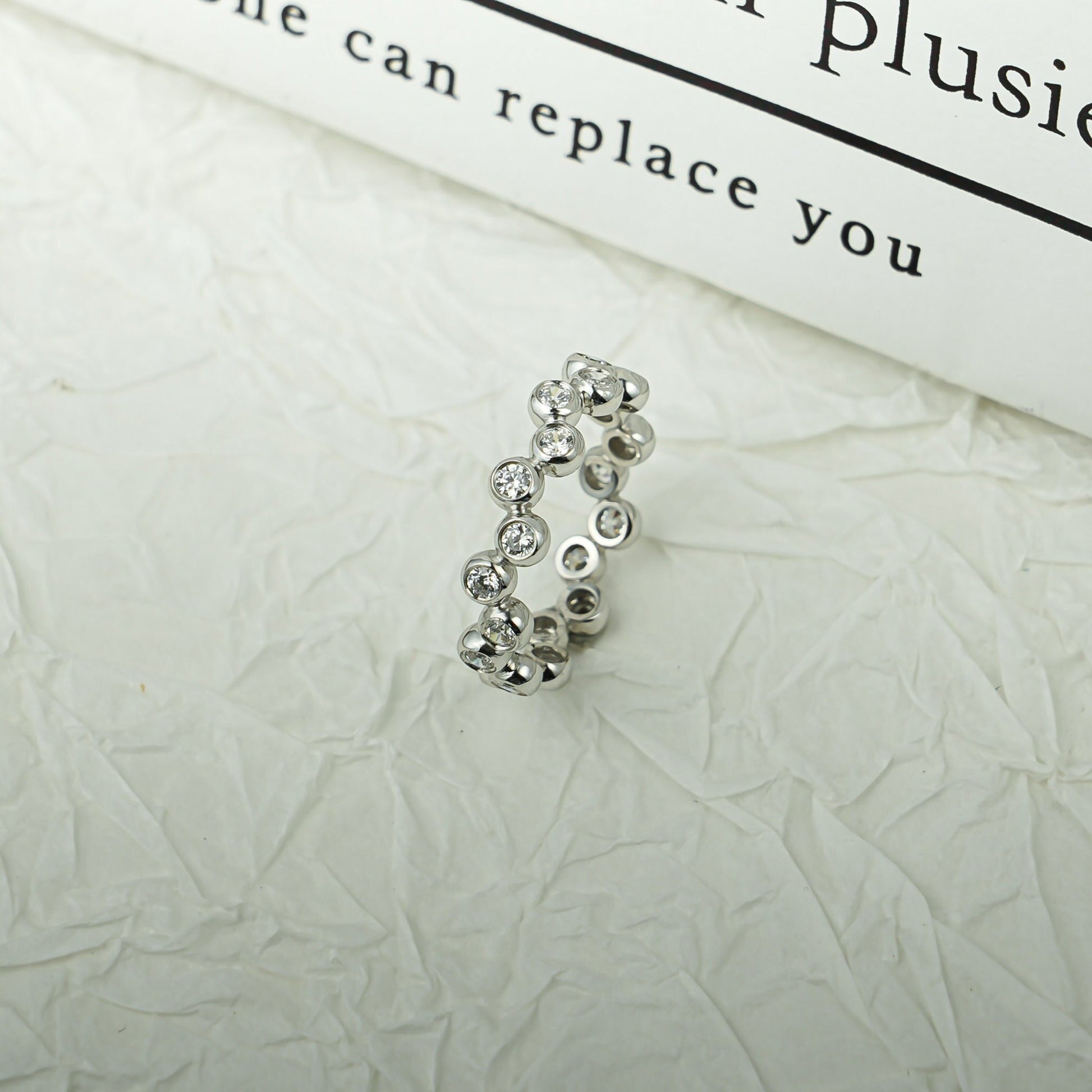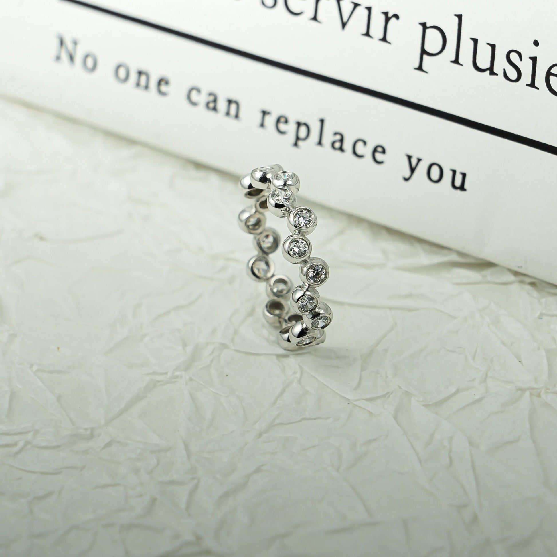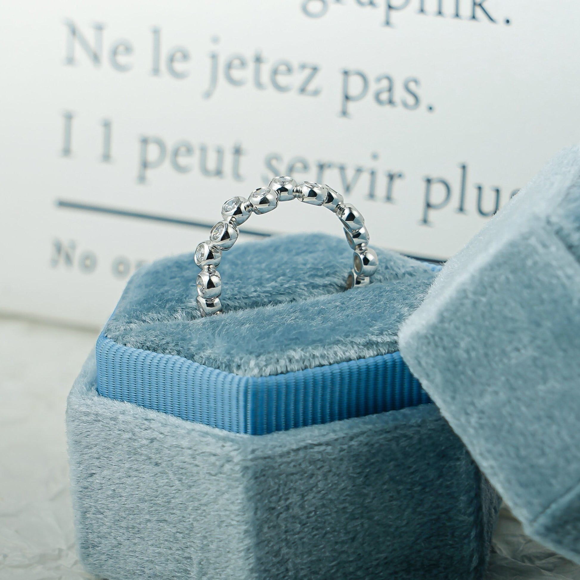 Bezel Round Cut Moissanite Engagement Ring Wedding Band, Full-Eternity 9K/14K/18K Solid Gold Personalized Matching Band, Anniversary Gift