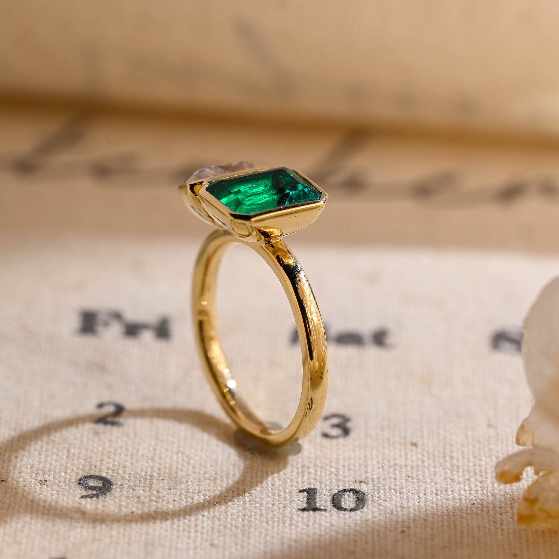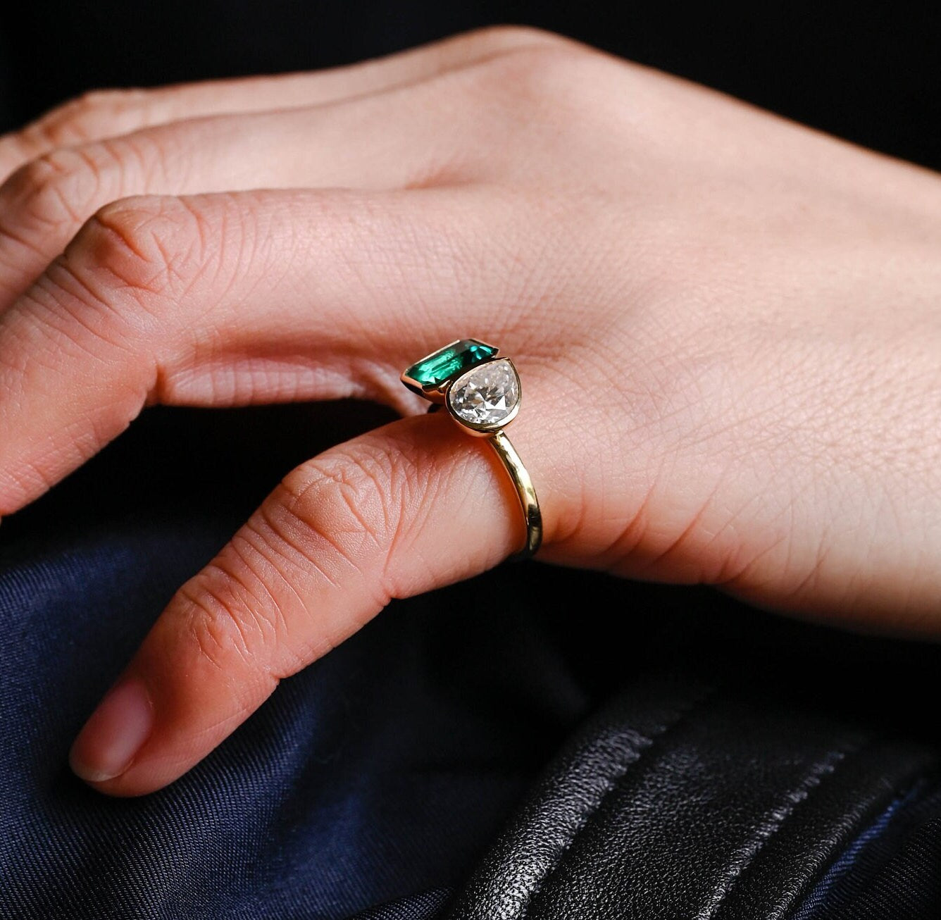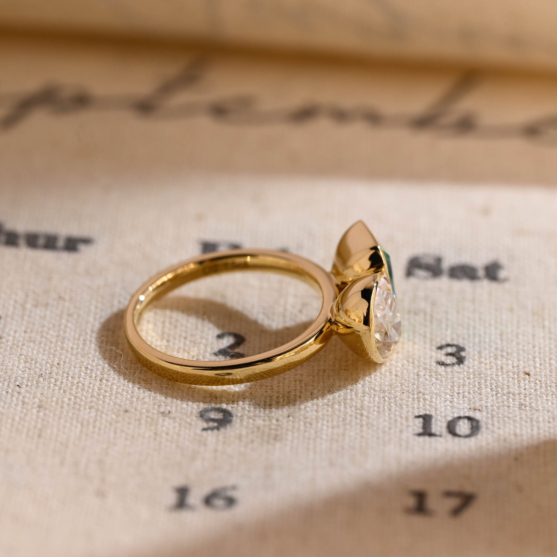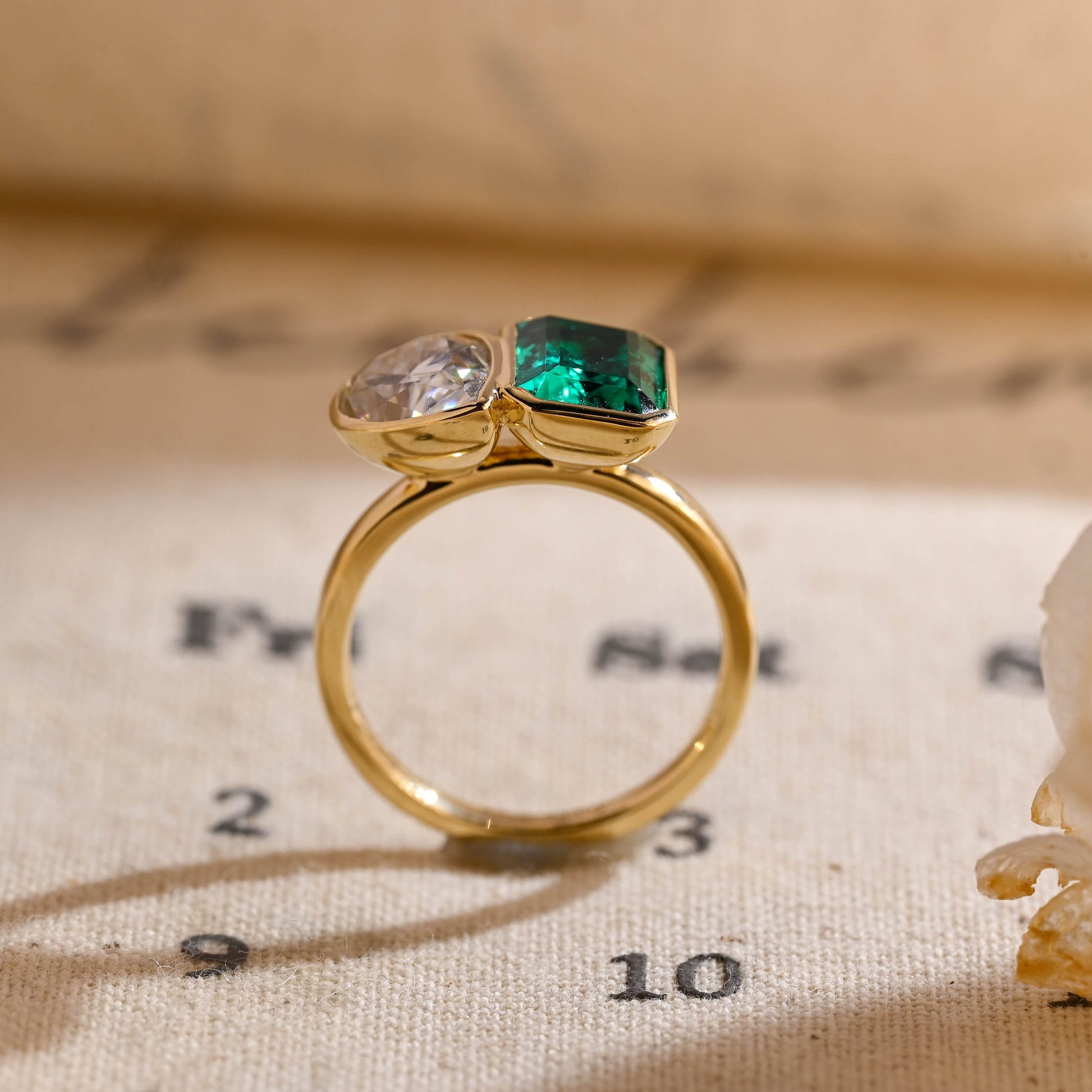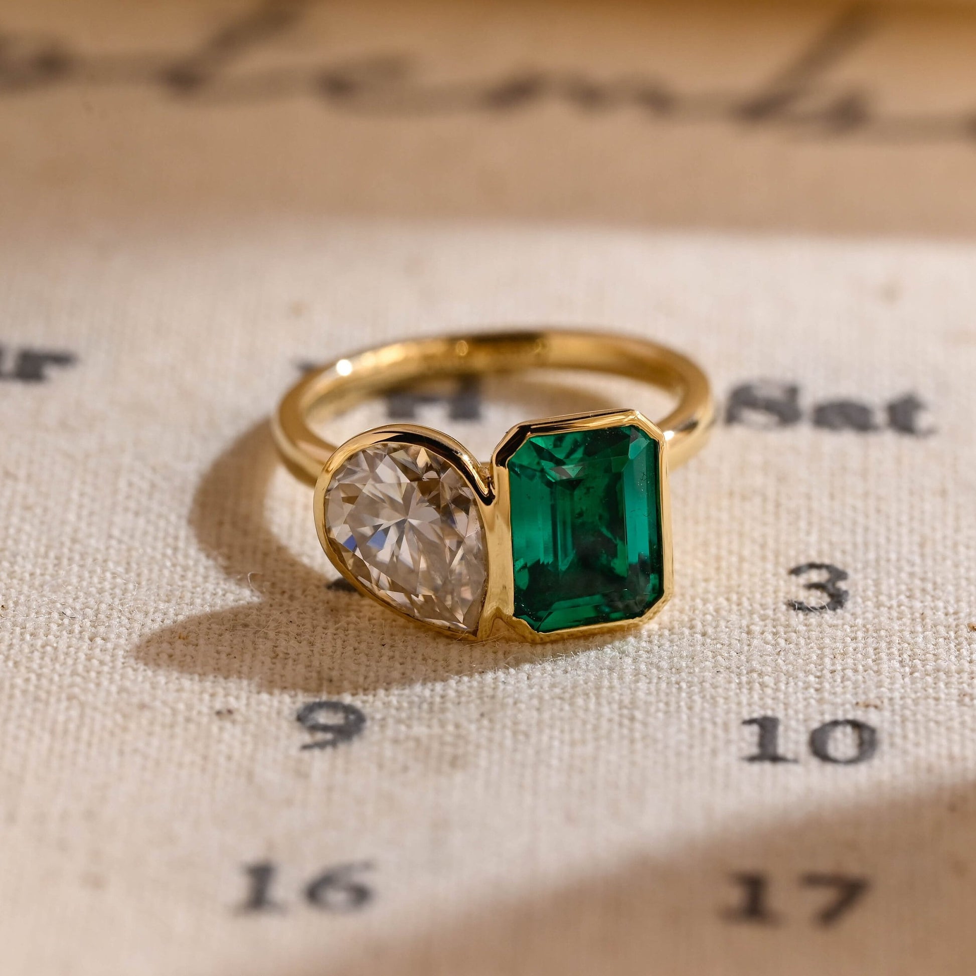 1.25ctΒ Pear & 1.50ctΒ Emerald Toi Et Moi Engagement Ring, Bezel Two Stone Wedding Ring, Anniversary Ring Gifts
