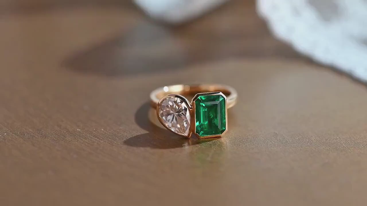 1.25ct Pear & 1.50ct Emerald Toi Et Moi Engagement Ring