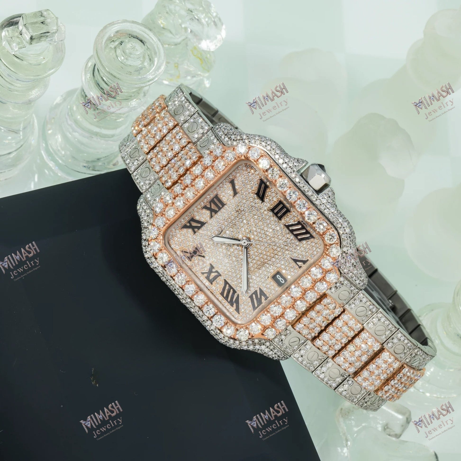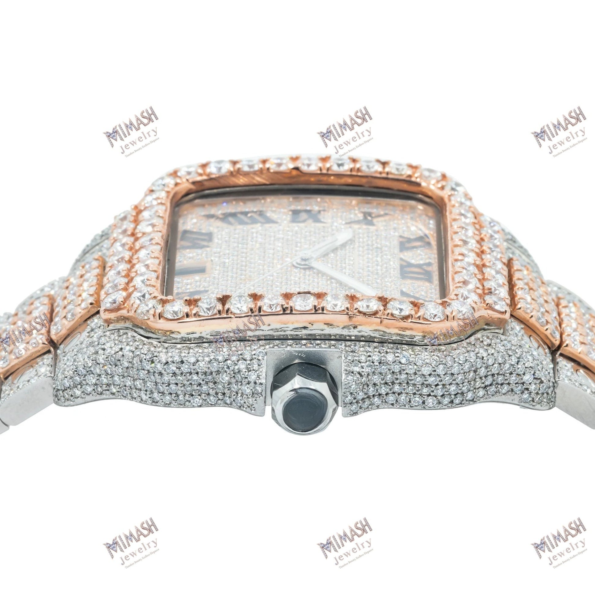 Moissanite Men’s Watch 39.8MM Diamond Dial & Bezel With Two Tone Bracelet