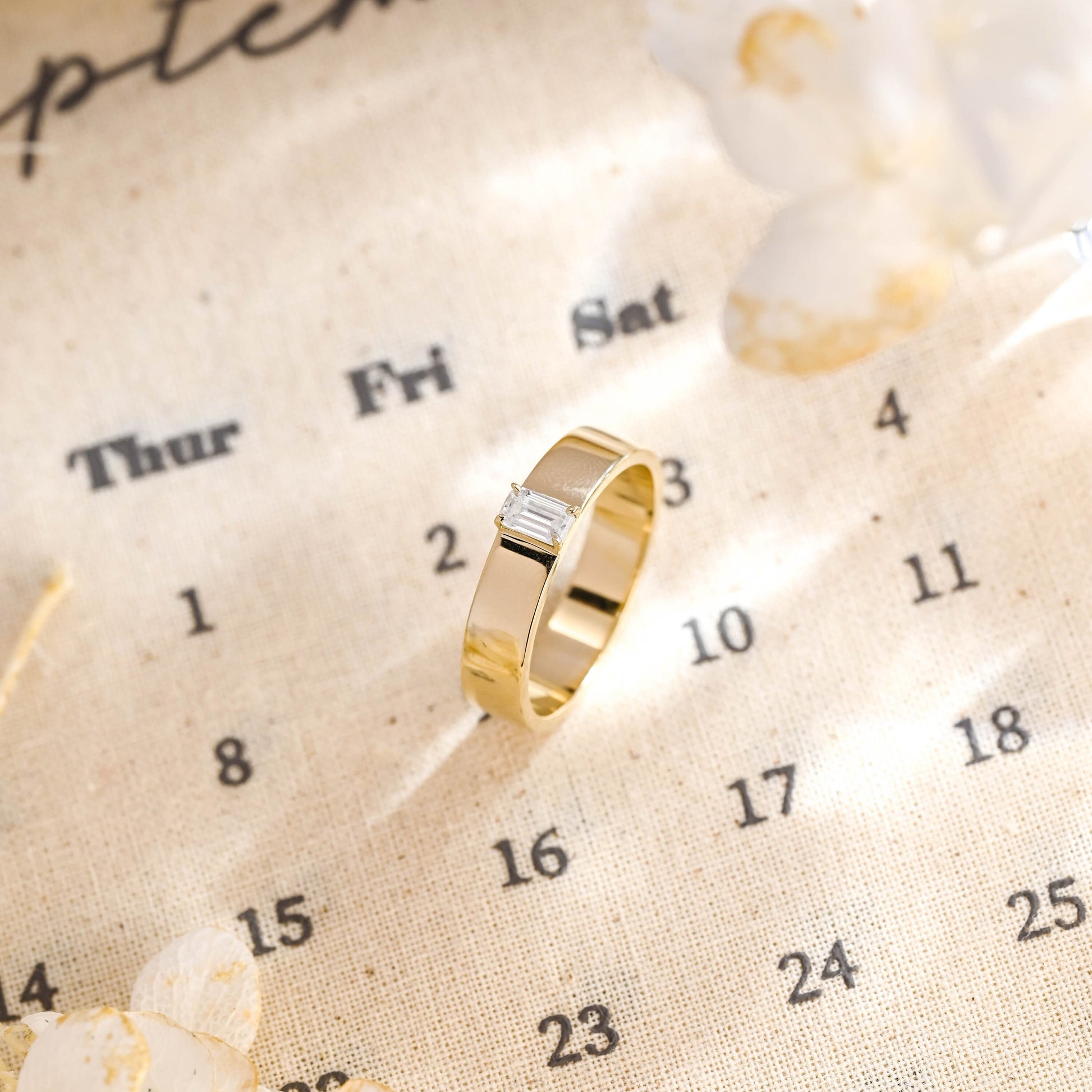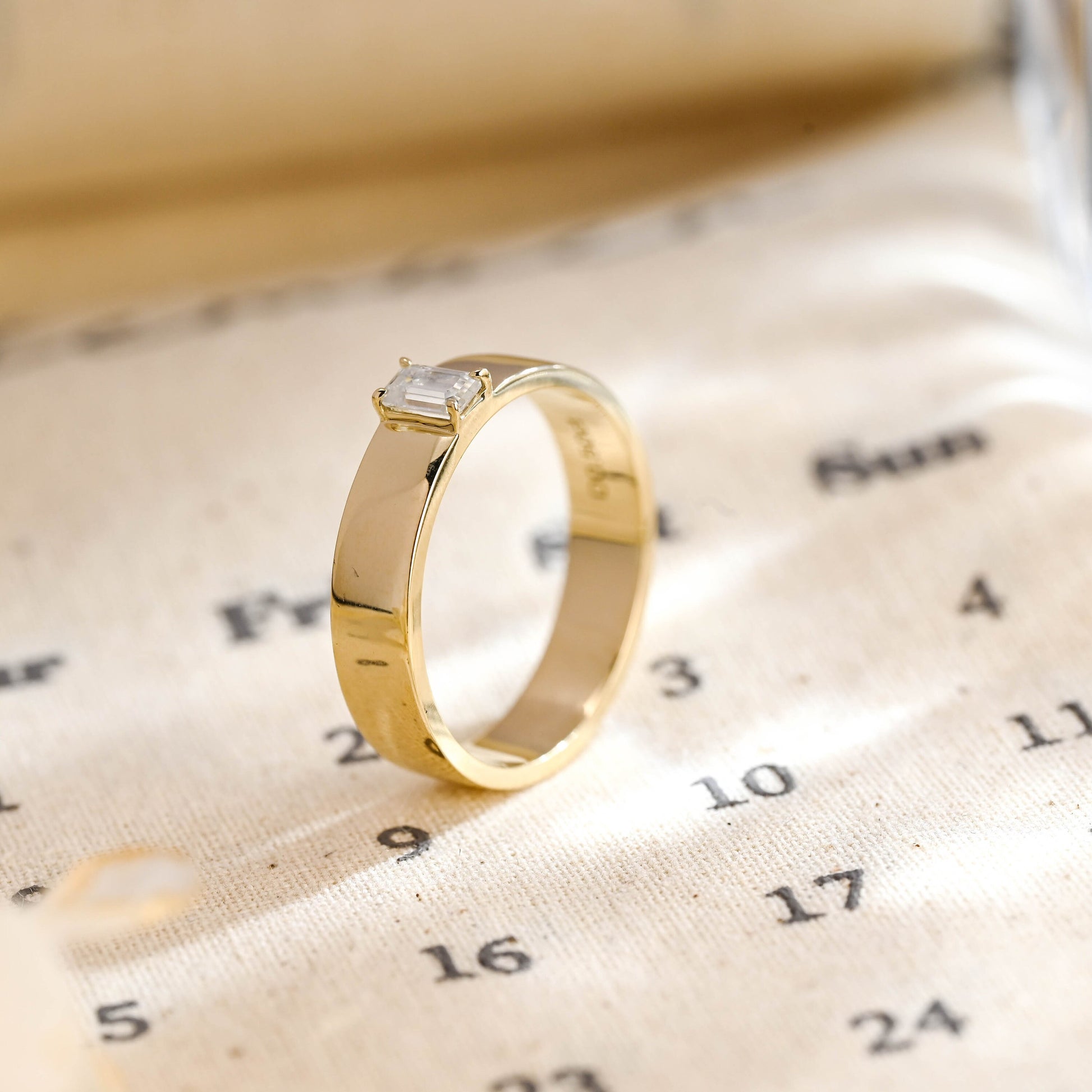 Classy Emerald Cut Men's Moissanite Wedding Band, Men's Eternity 9K/14K/18K Solid Gold Engagement Band, Stylish Moissanite Ring/Gift for Him