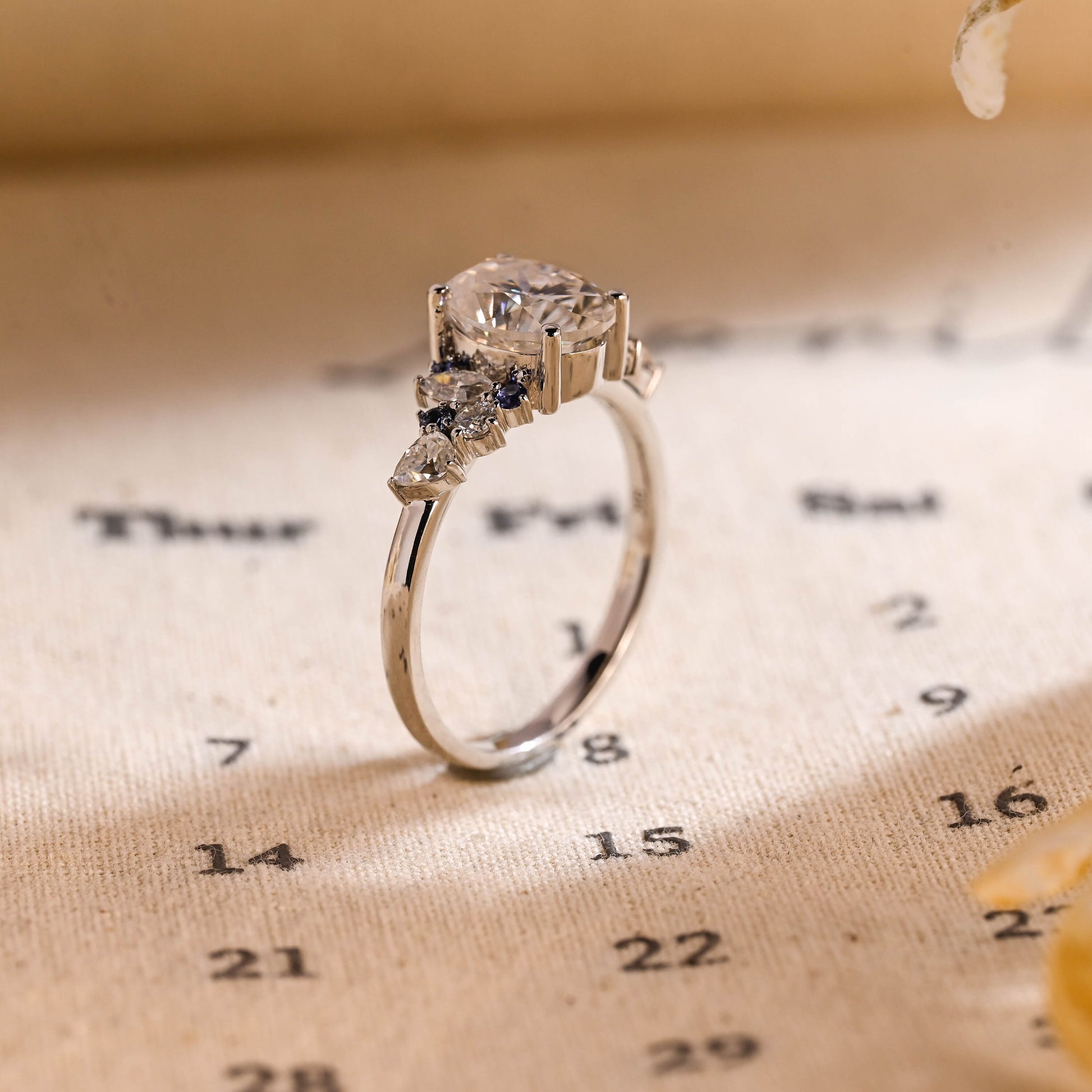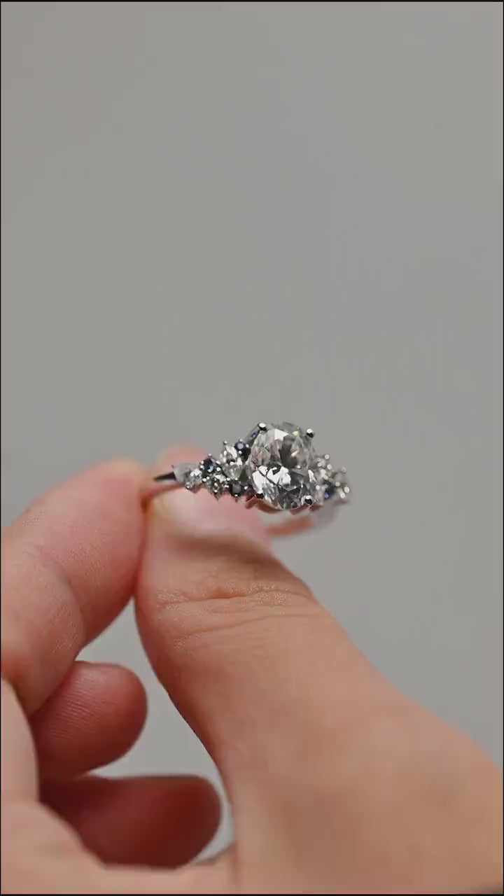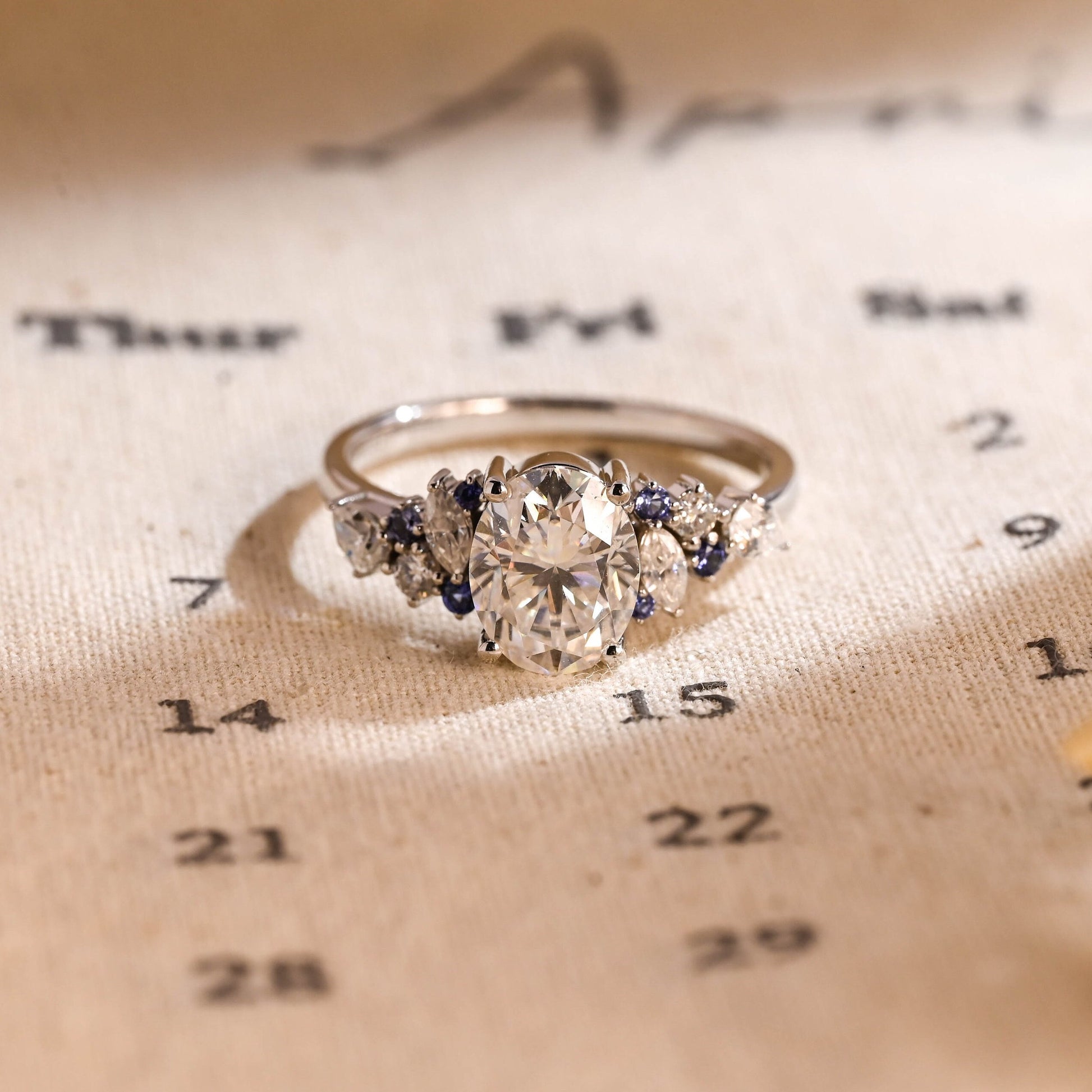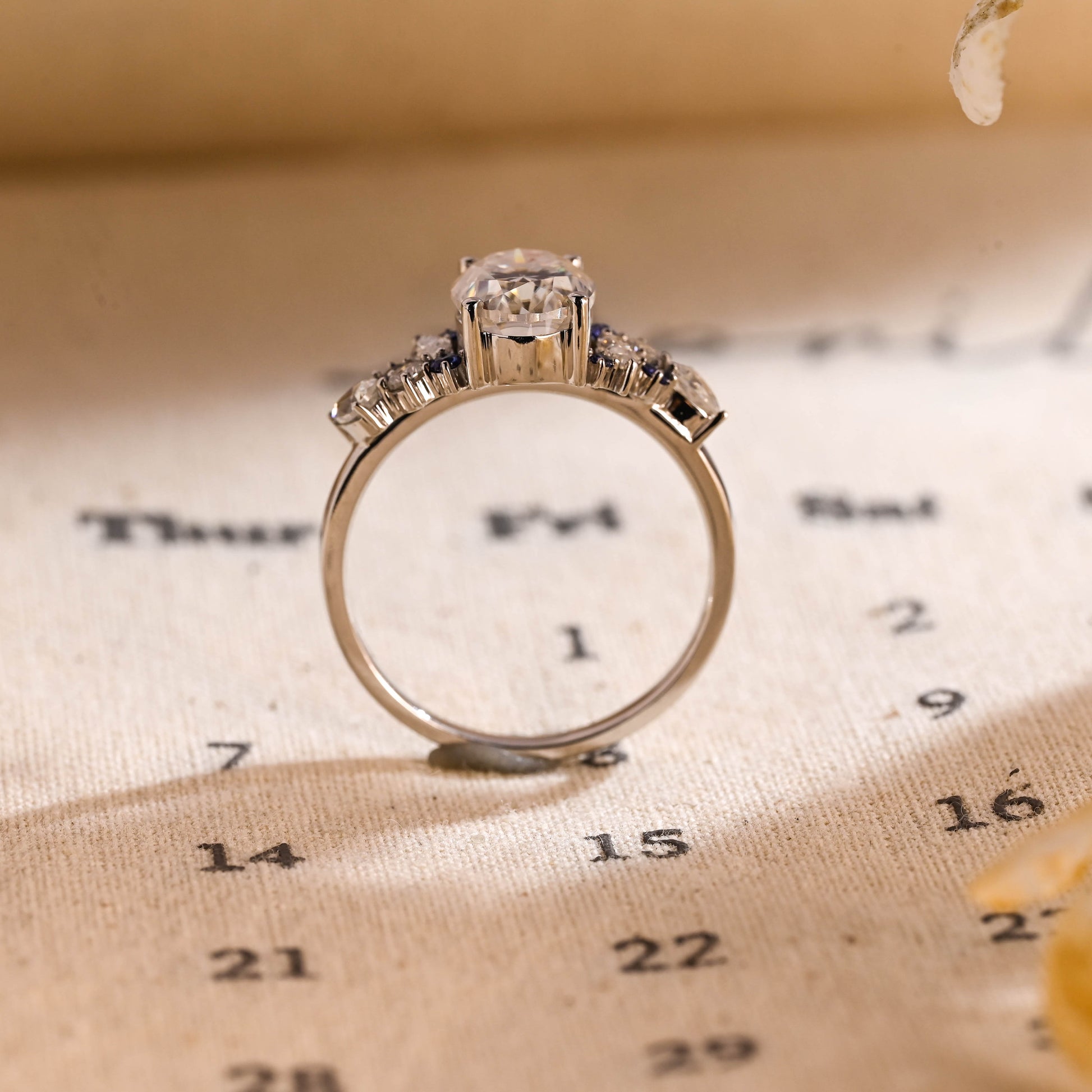 9mm Cluster Oval Diamond Engagement Ring with Sapphire Multi-Stone Oval Cut Ring