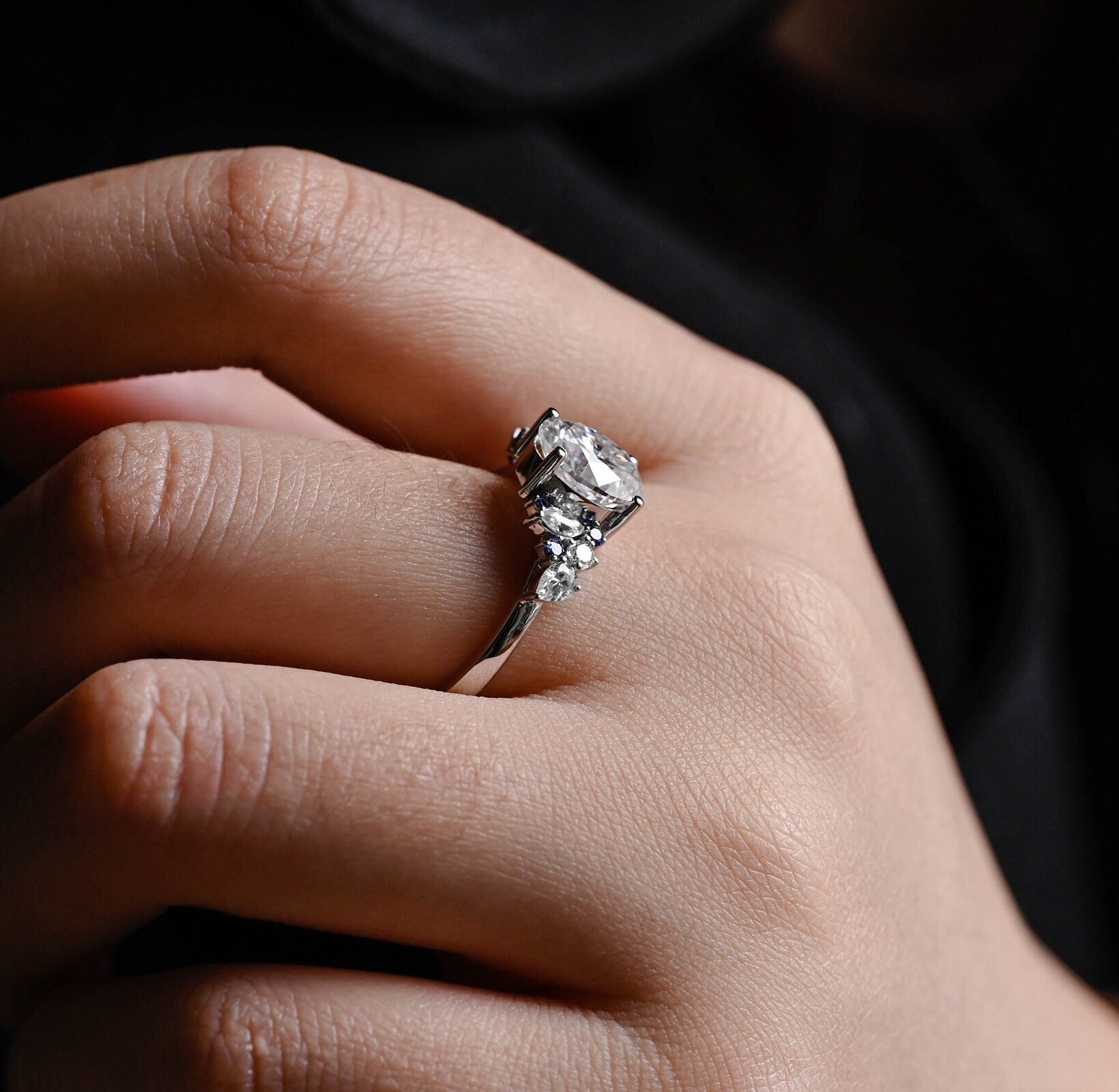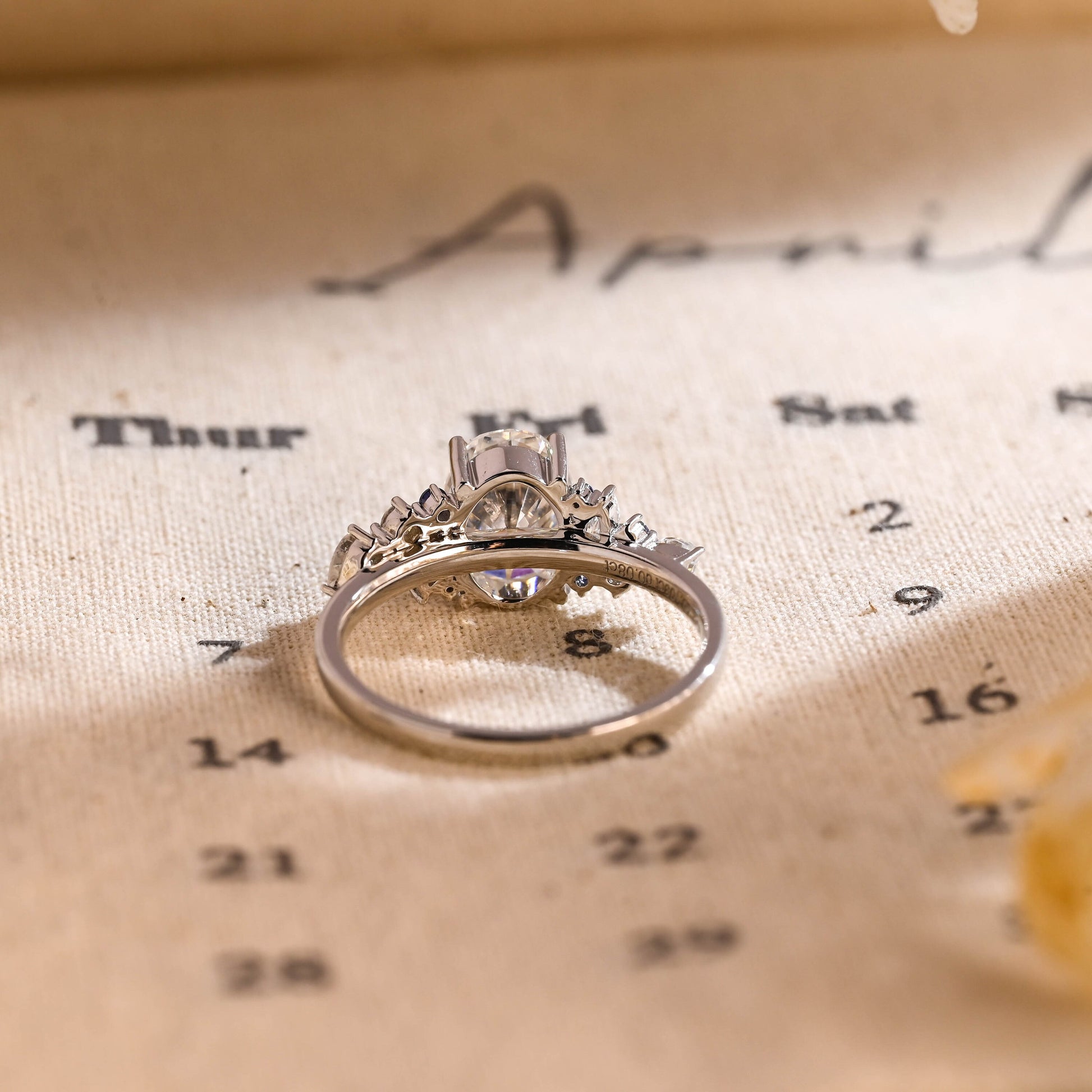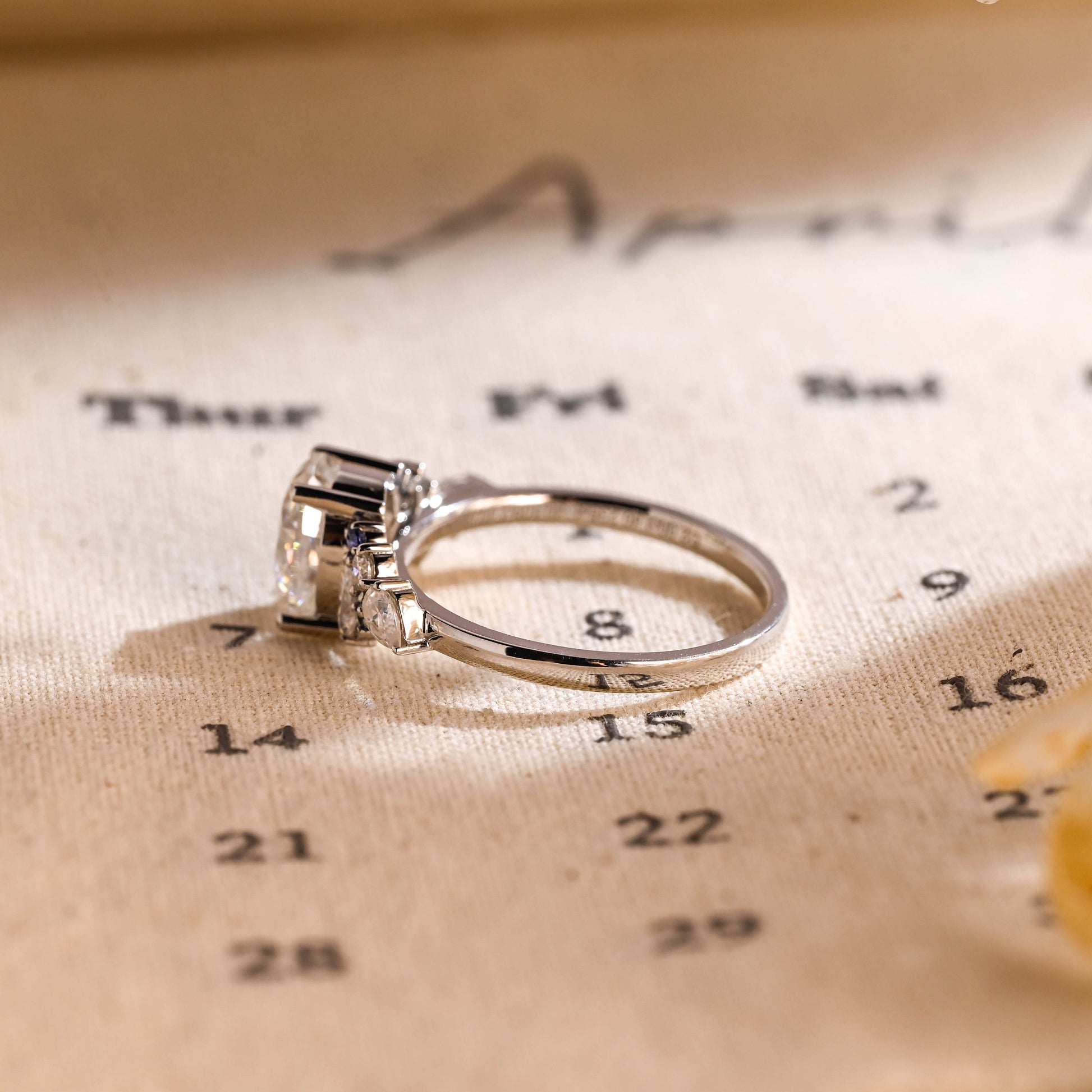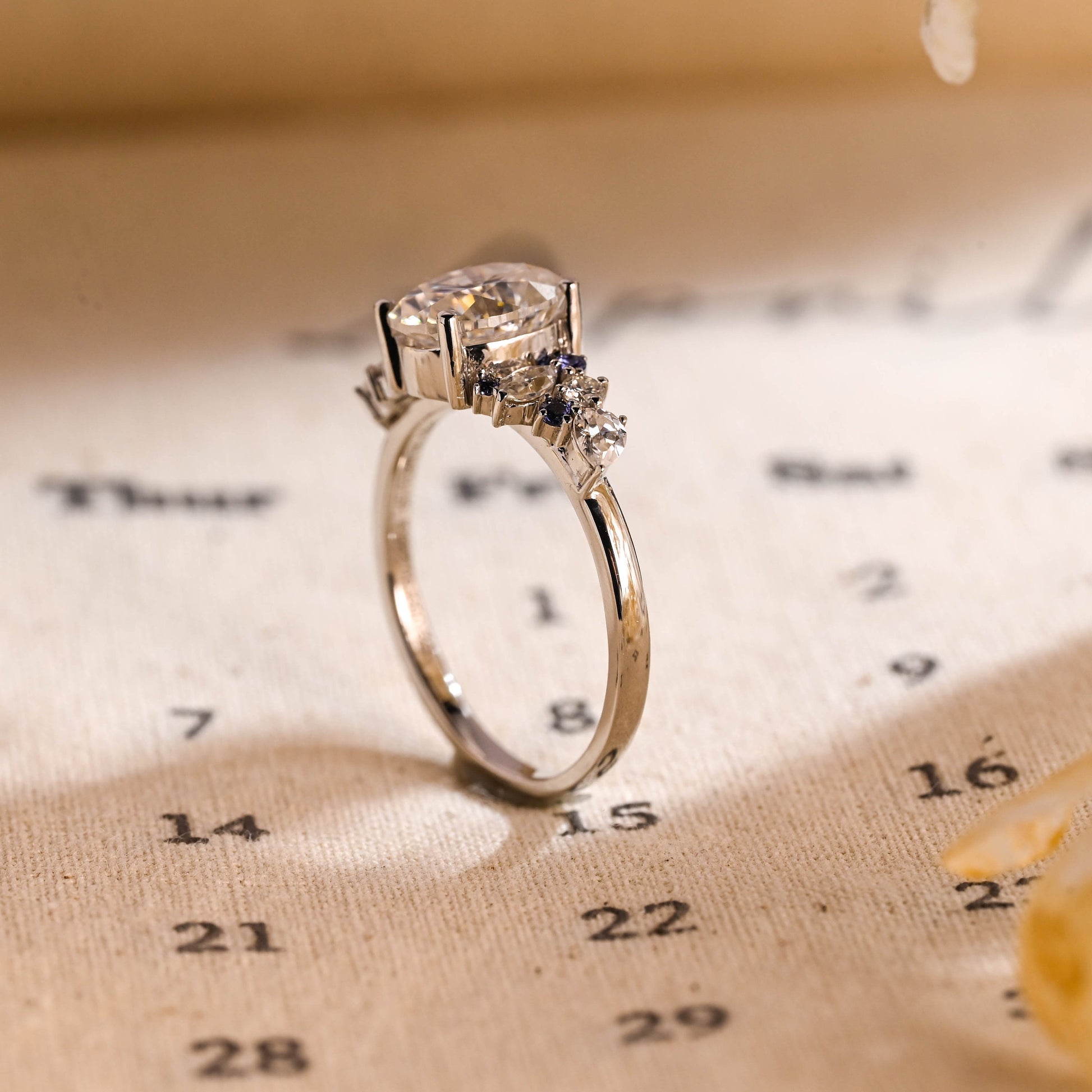 9mm Cluster Oval Diamond Engagement Ring with Sapphire Multi-Stone Oval Cut Ring