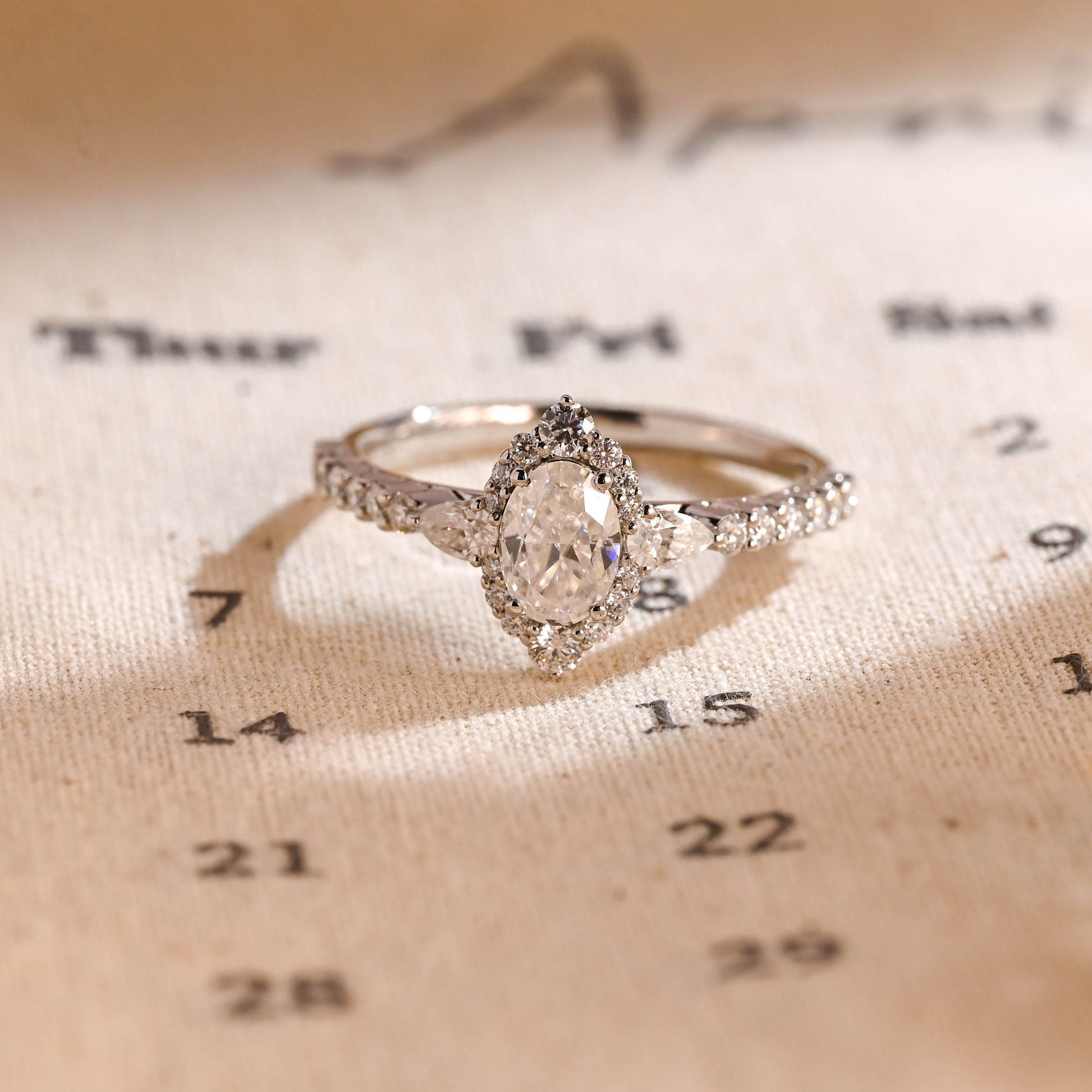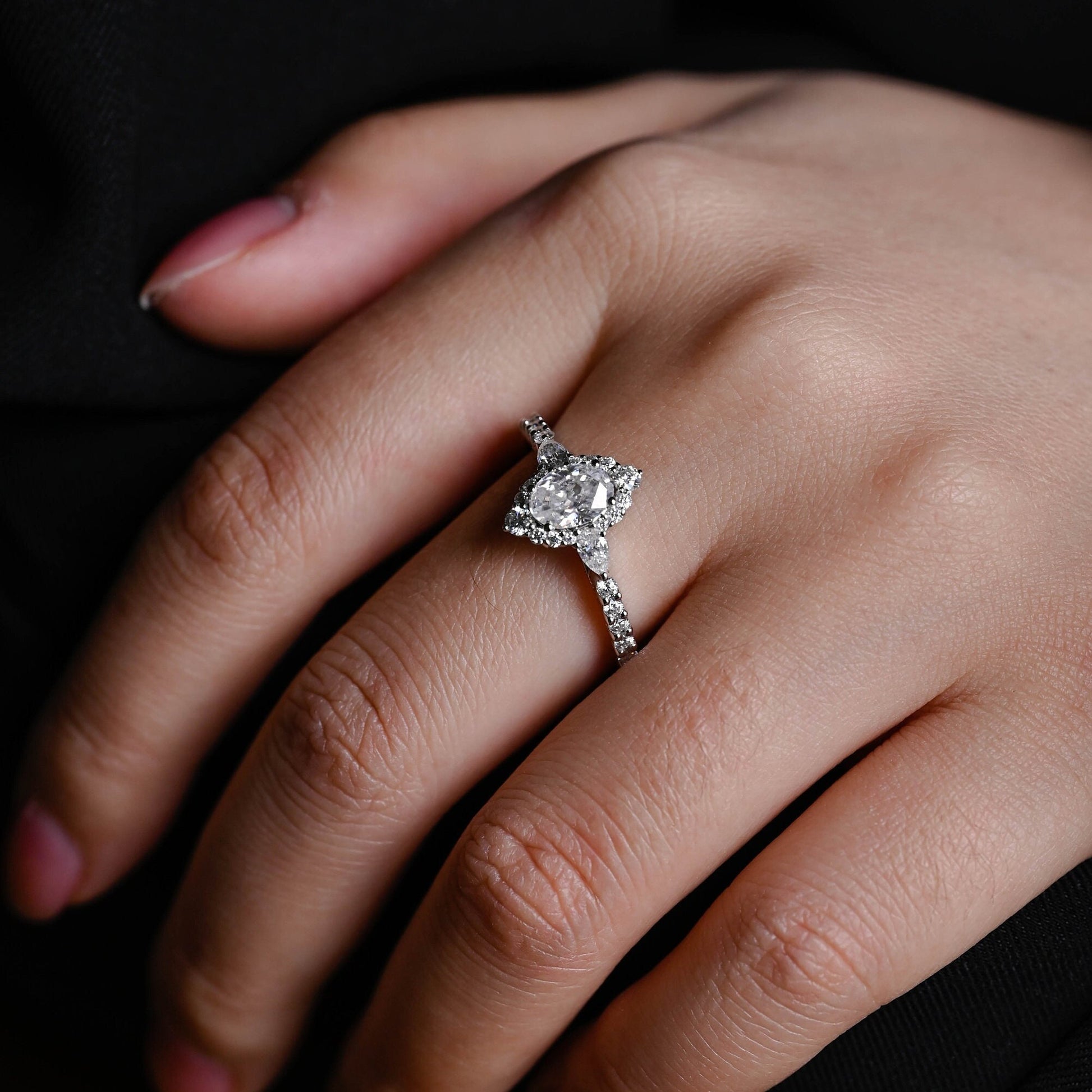 5mm Oval Crushed Ice Cut Three Stone Diamond Engagement Ring, Three Stone Oval Diamond Wedding Ring for Wife