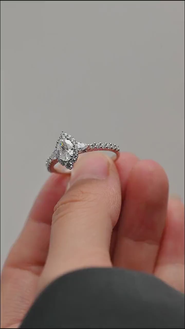5mm Crushed Ice Oval Cut Three Stone Diamond Engagement Ring