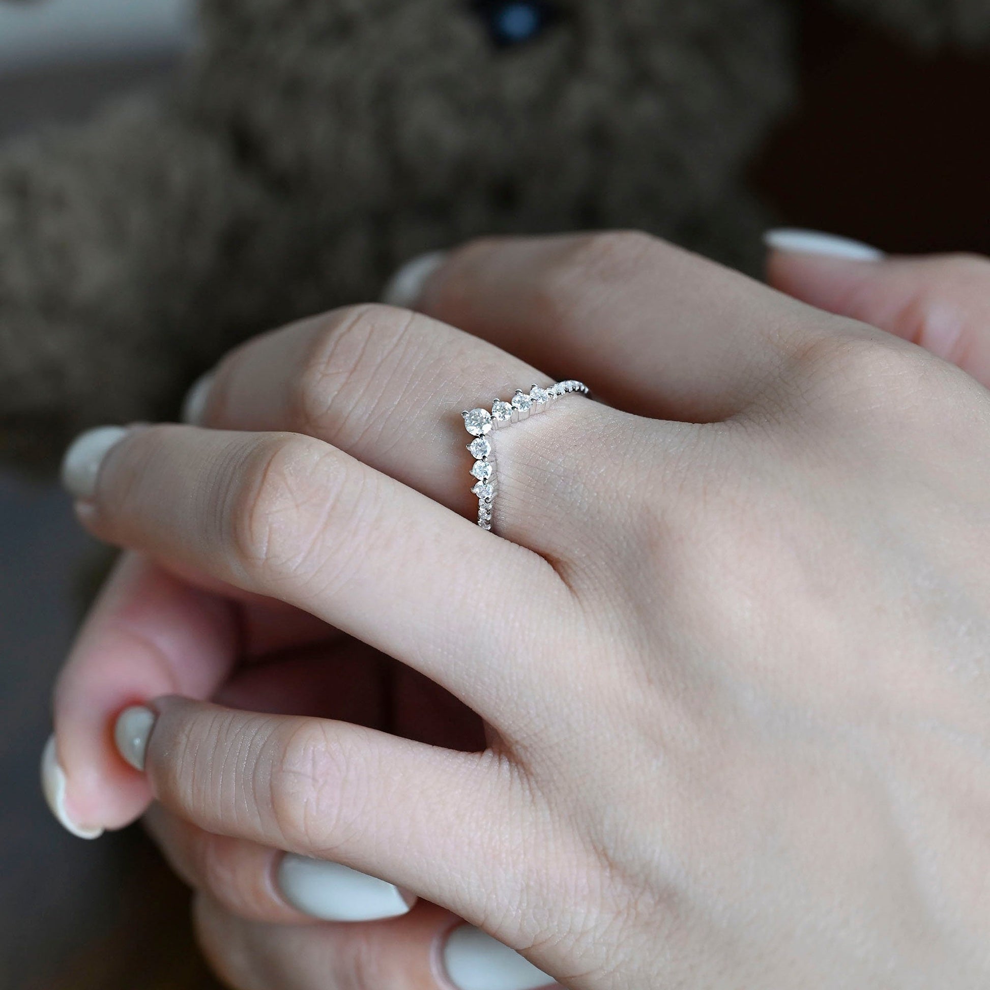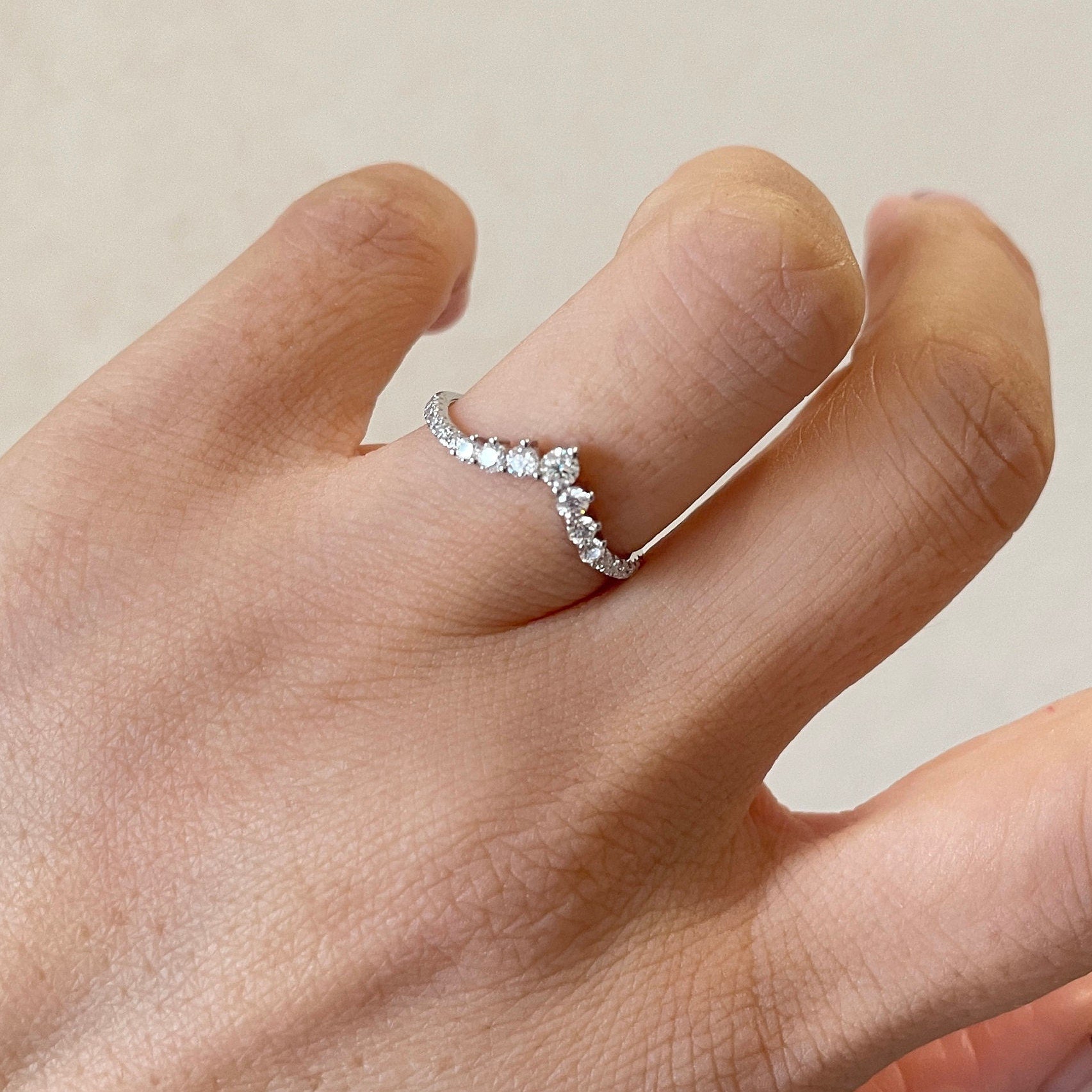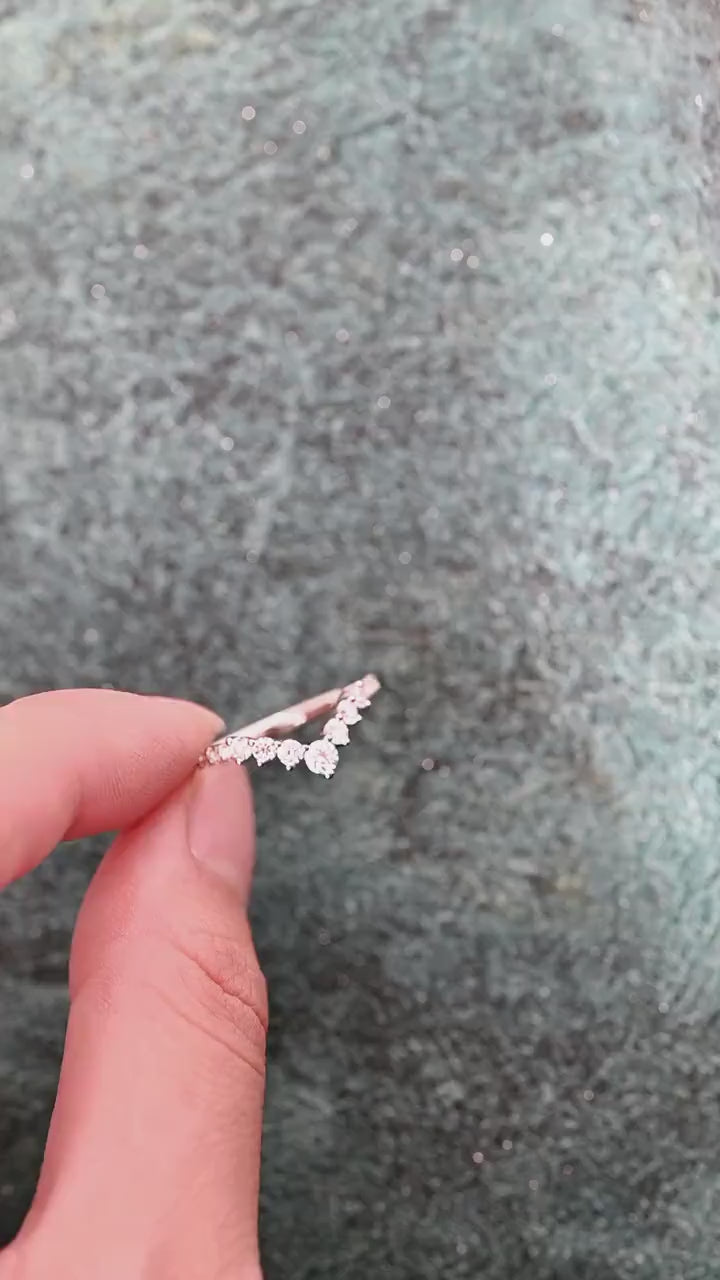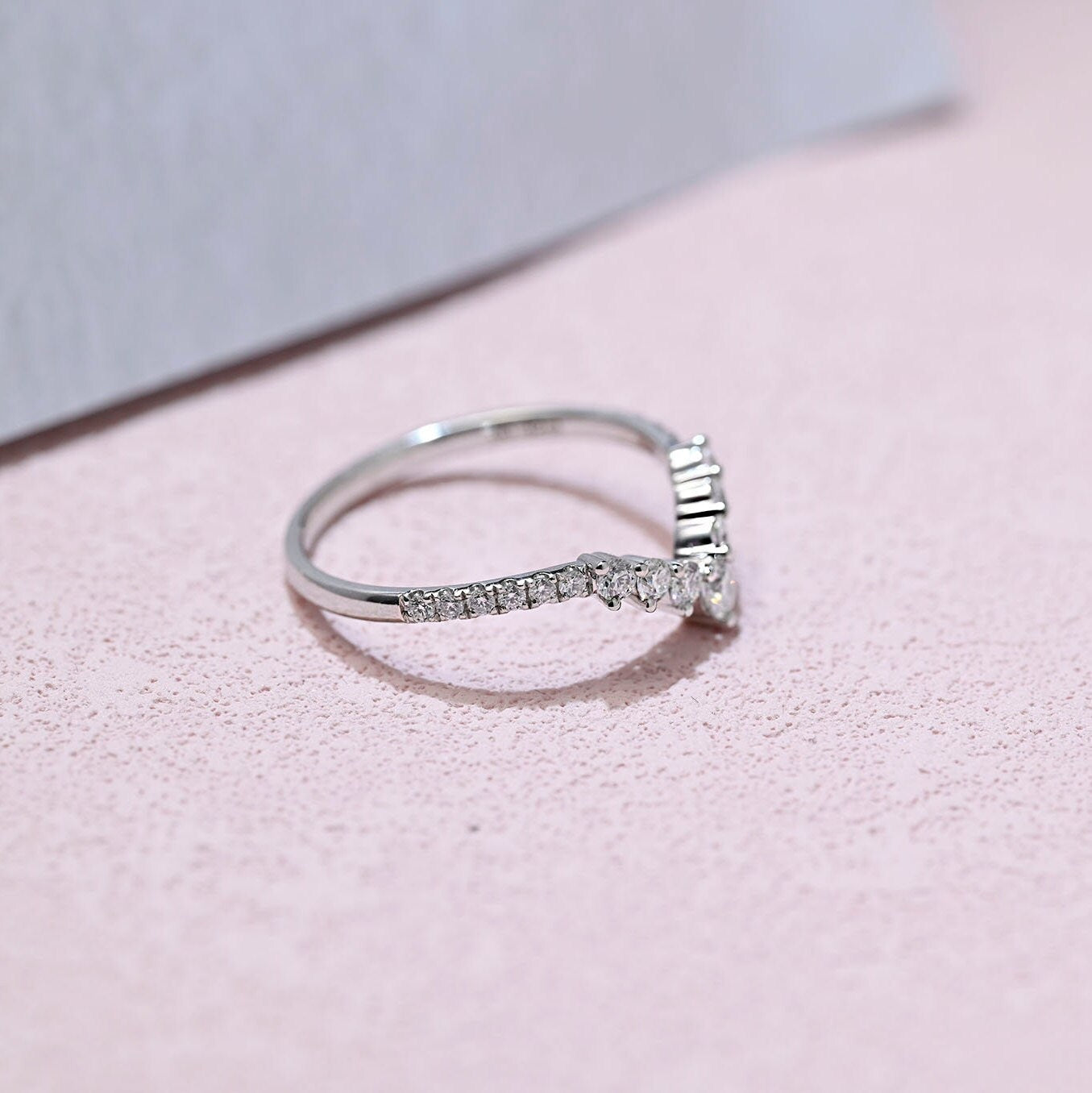 Curve Round Cut Moissanite Wedding Band, Half Eternity Wedding Ring Matching Bridal Ring, 9K 14K 18K Solid Gold Anniversary Gift for Women