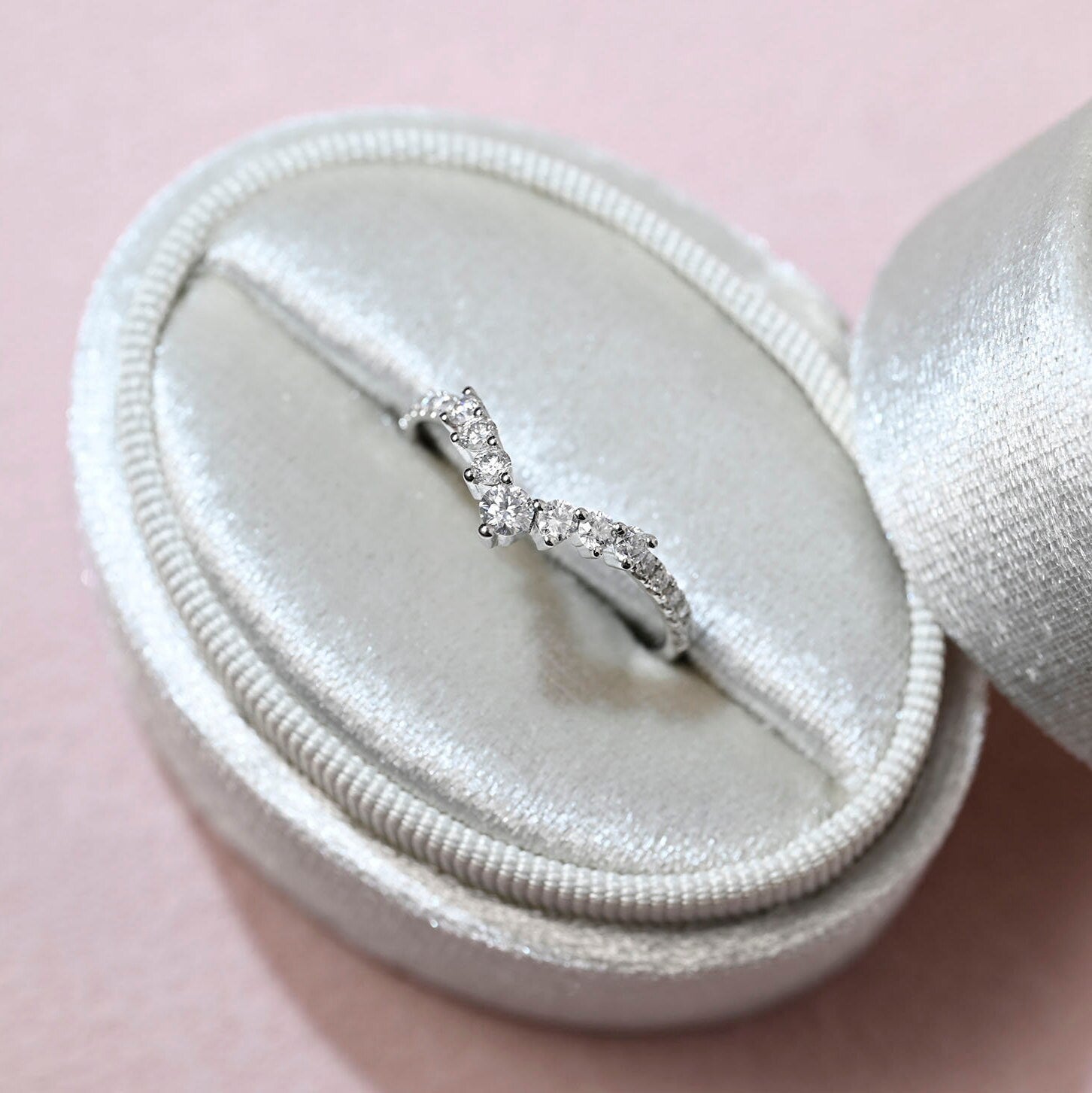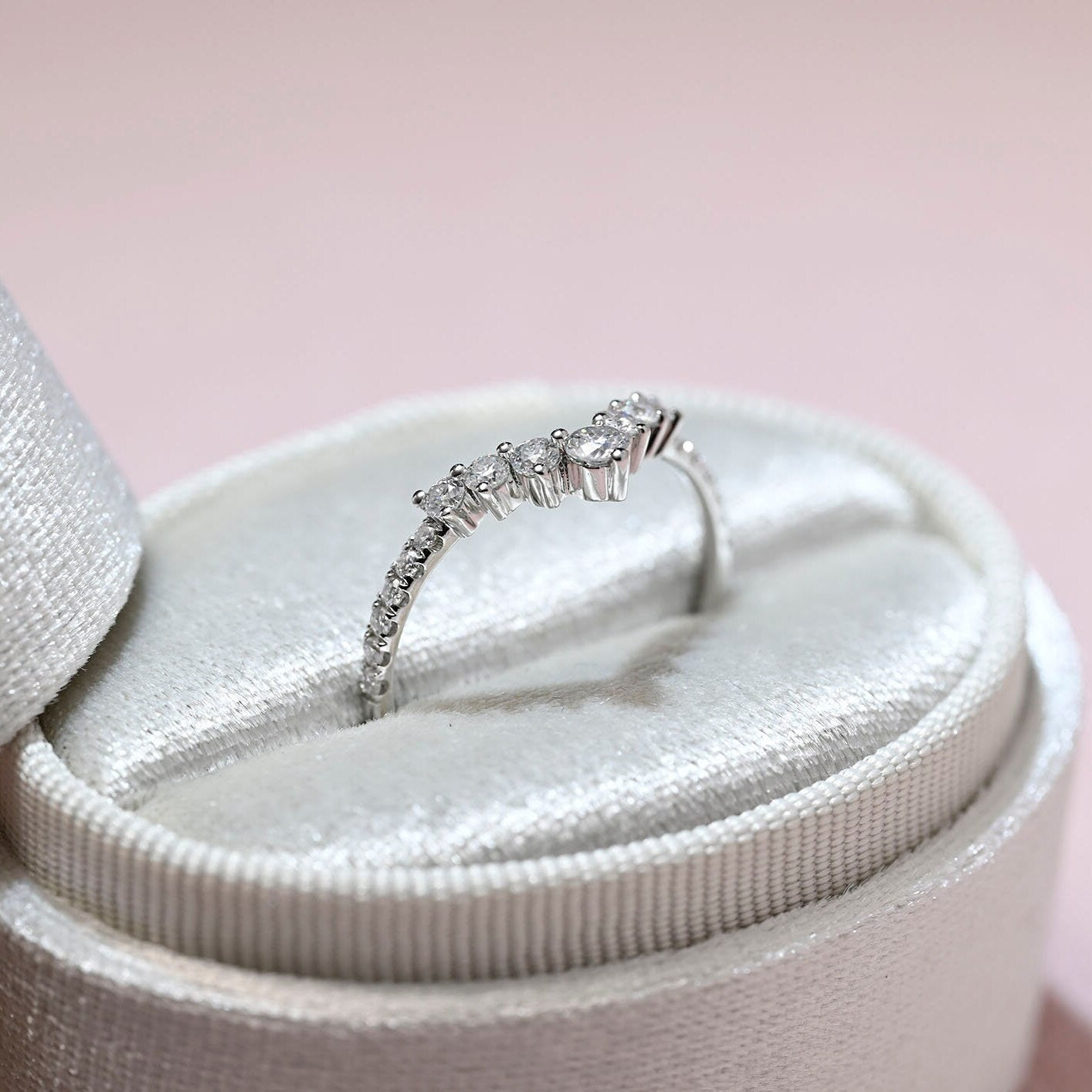 Curve Round Cut Moissanite Half Eternity Wedding Ring