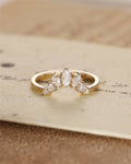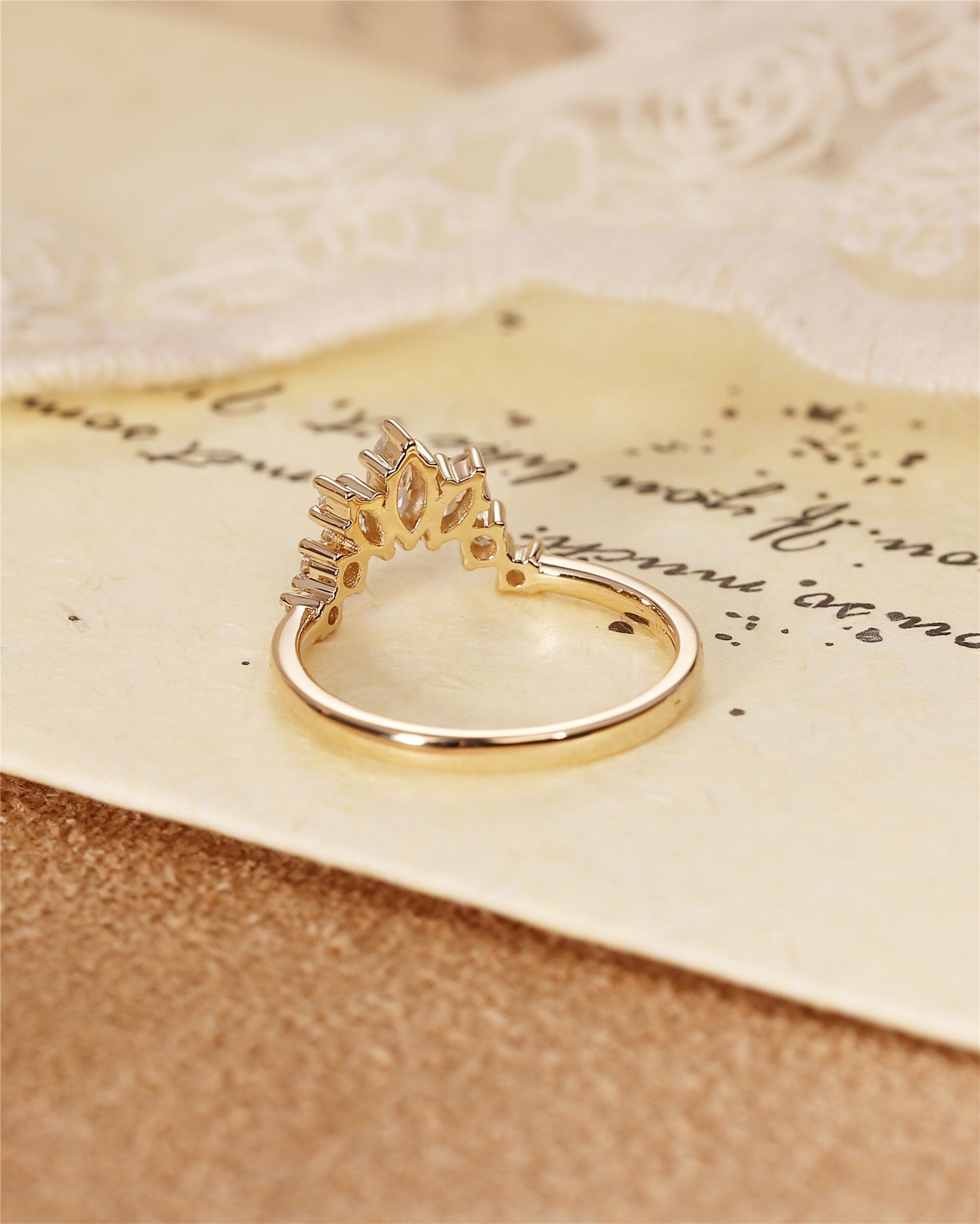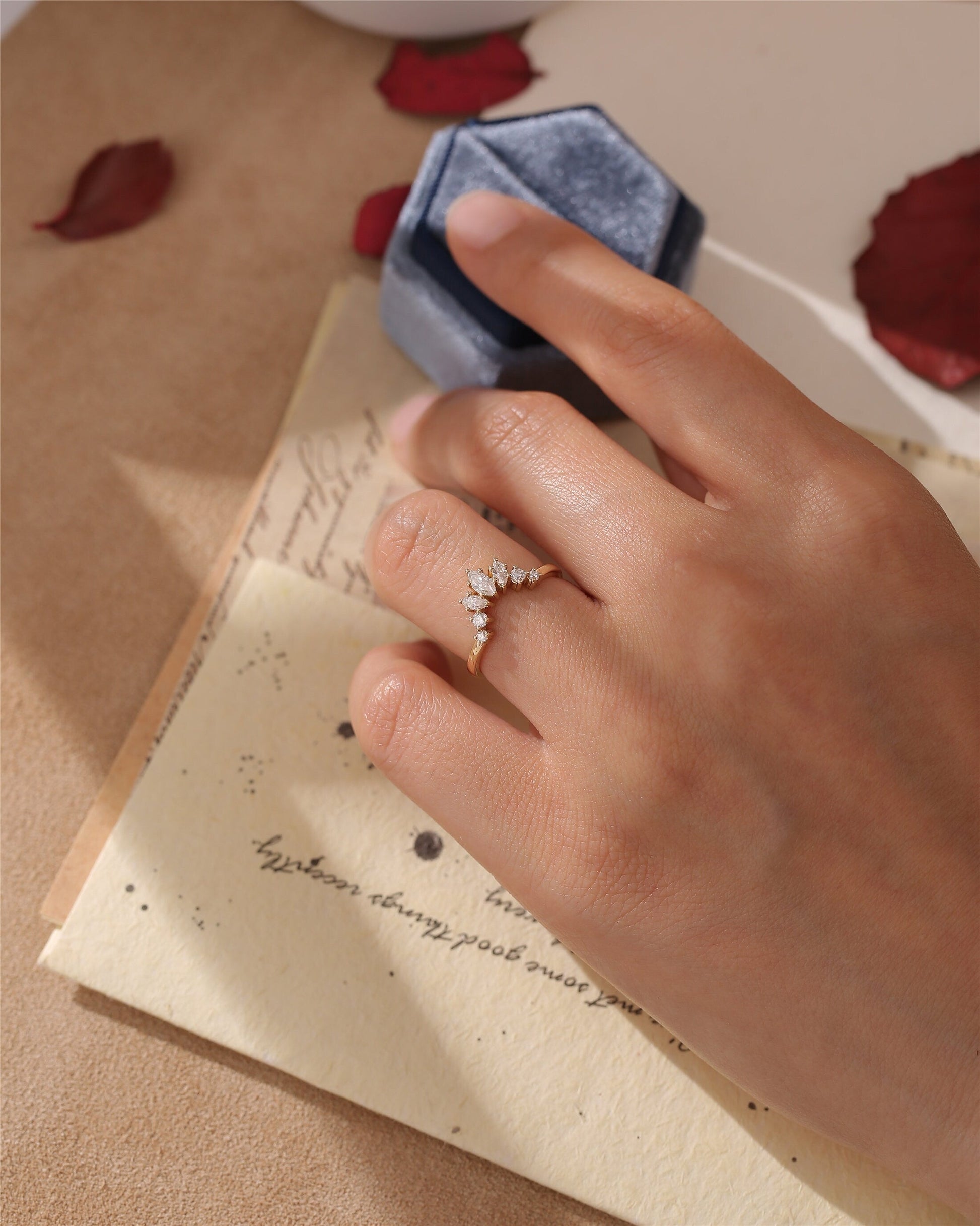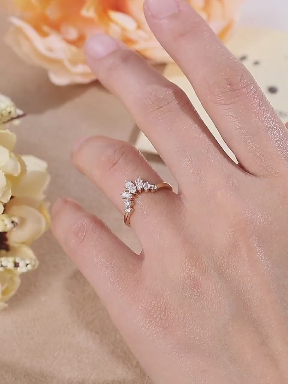 Curved Moissanite Wedding Band Vintage Marquise & Round Wedding Ring