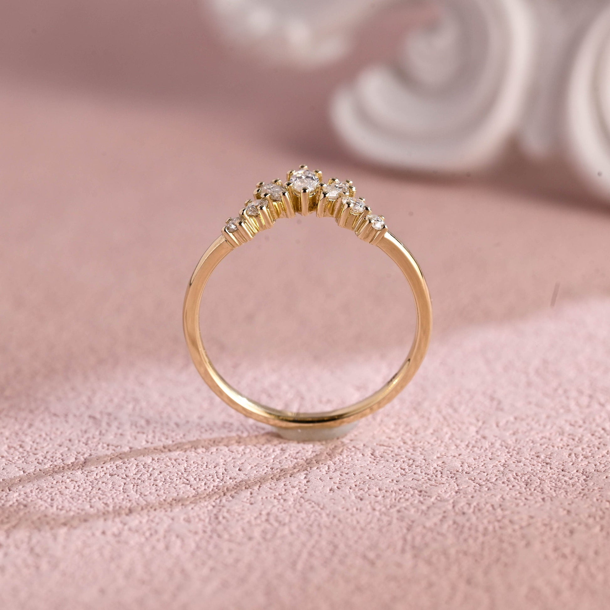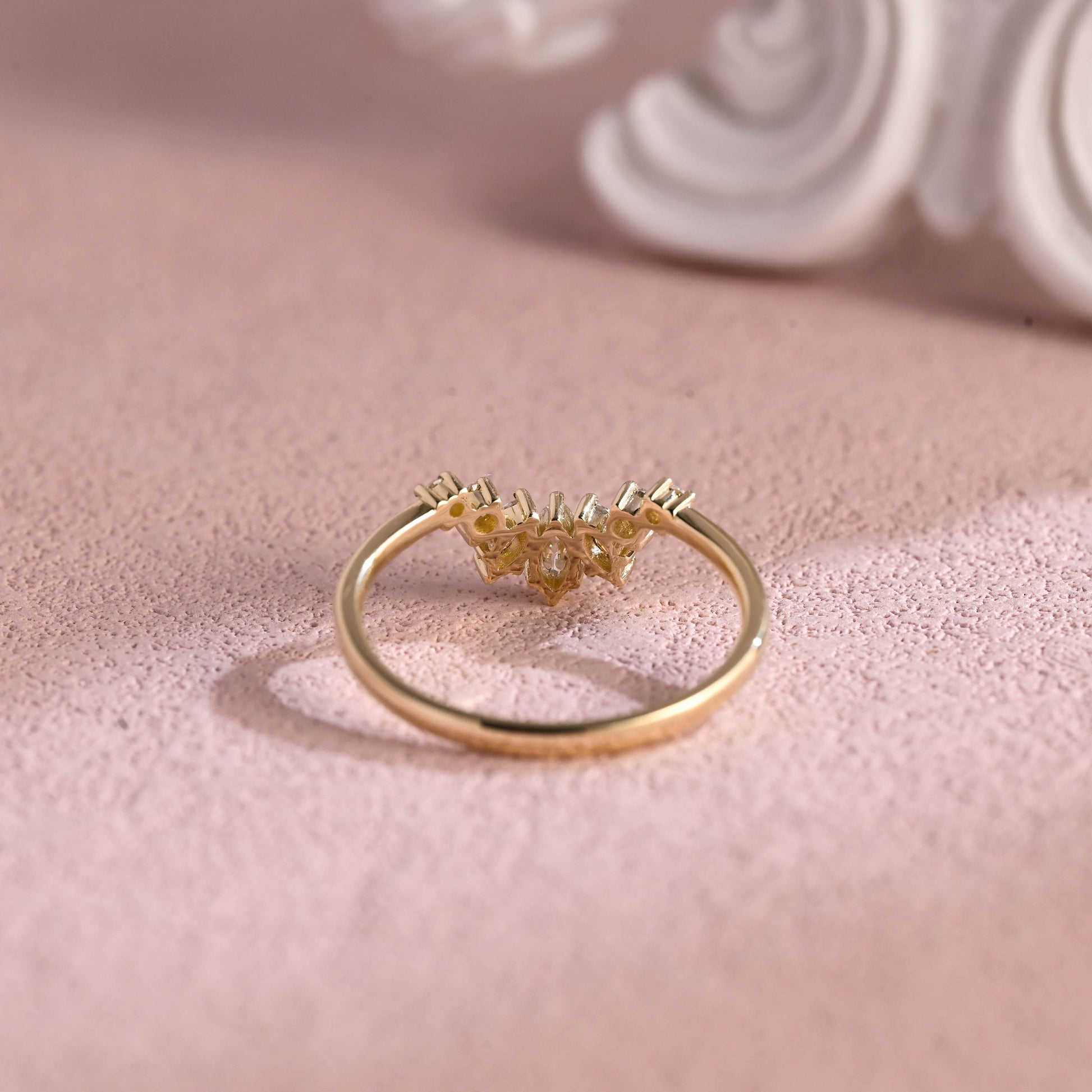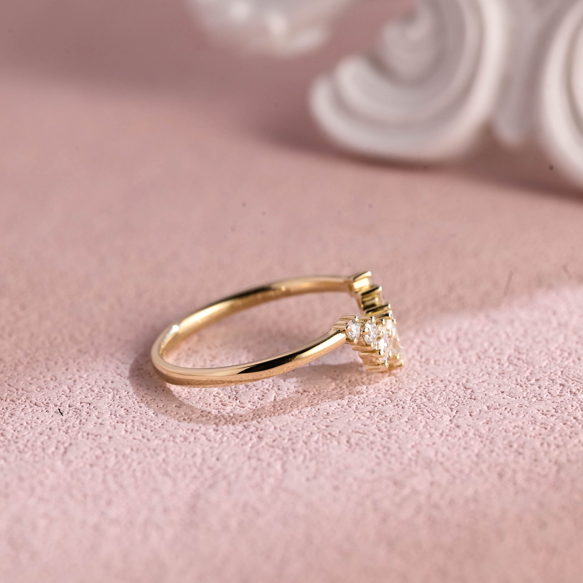 Curved Moissanite Wedding Band for Women, Vintage Marquise & Round Wedding Ring, Round Bridal Matching Band Stacking Ring Gift for Women
