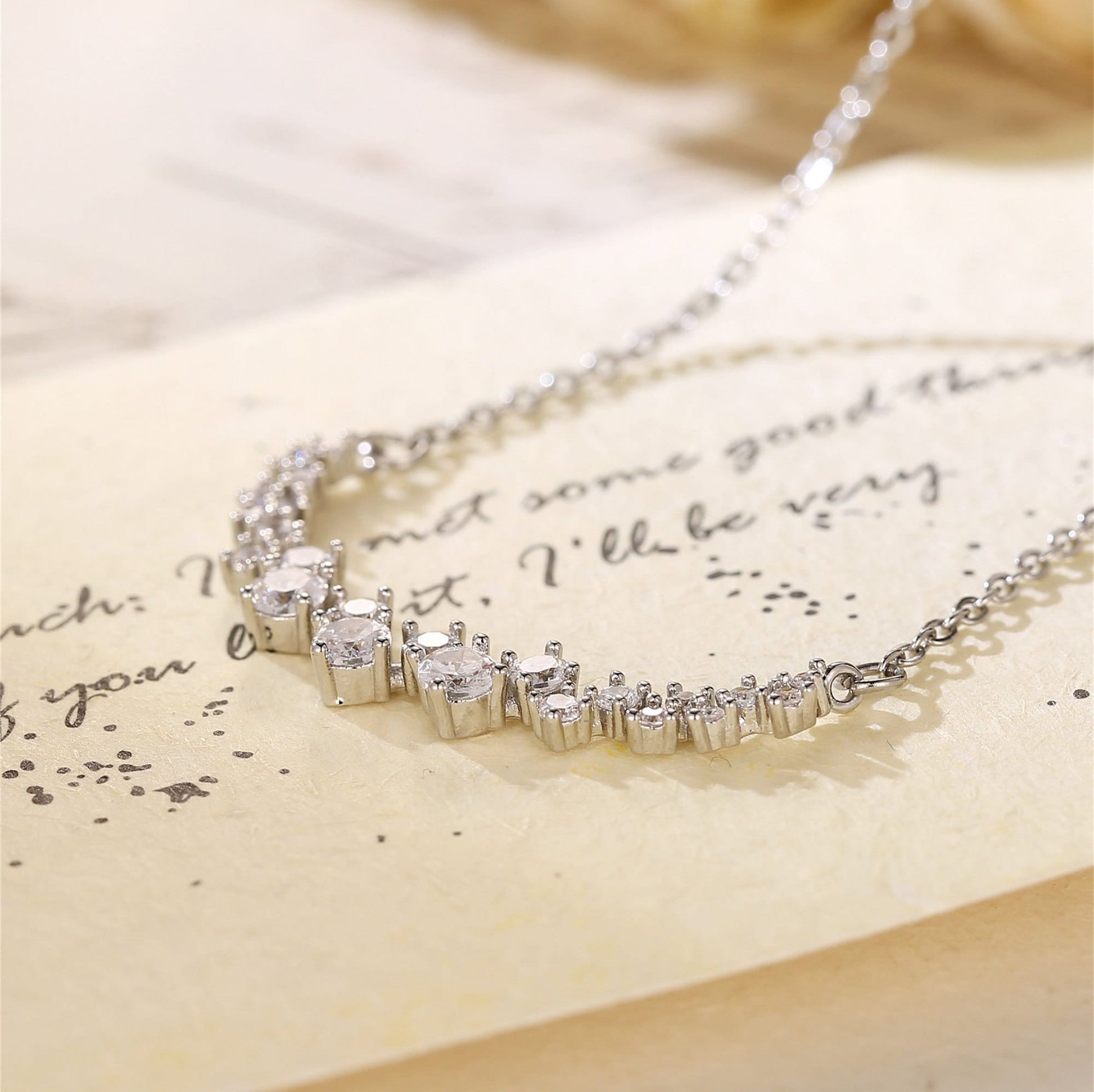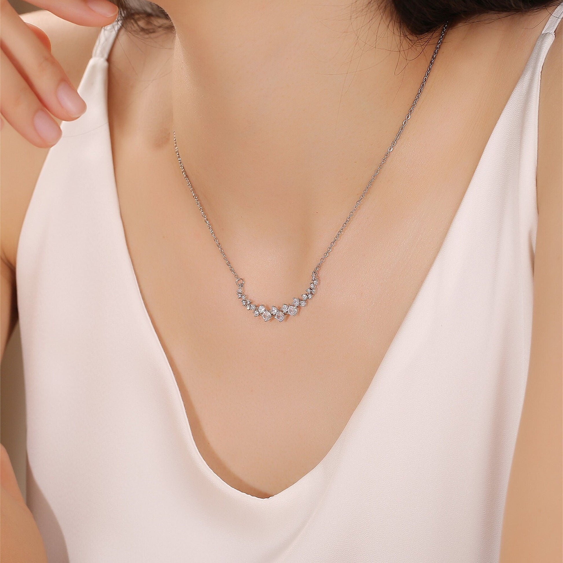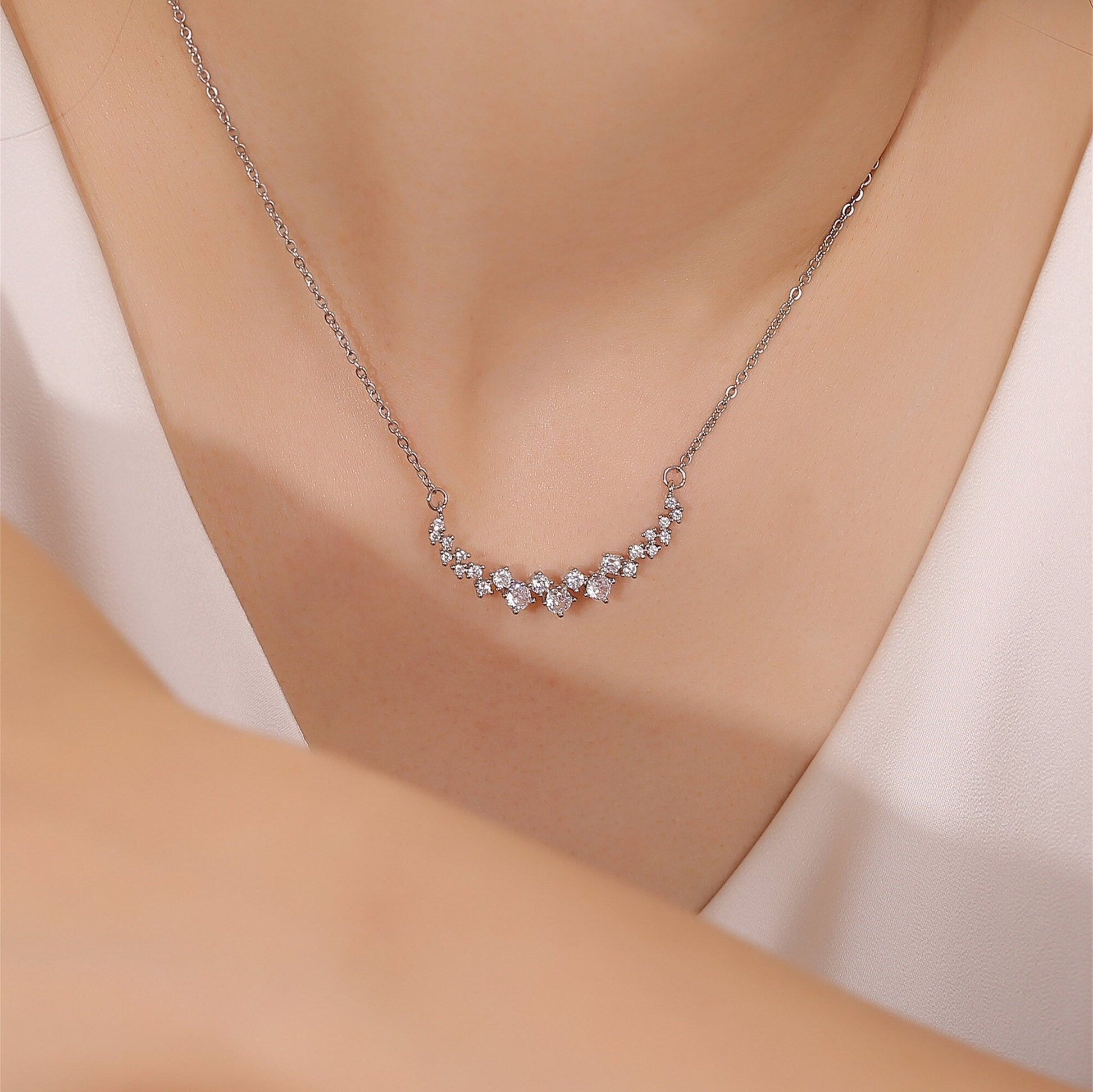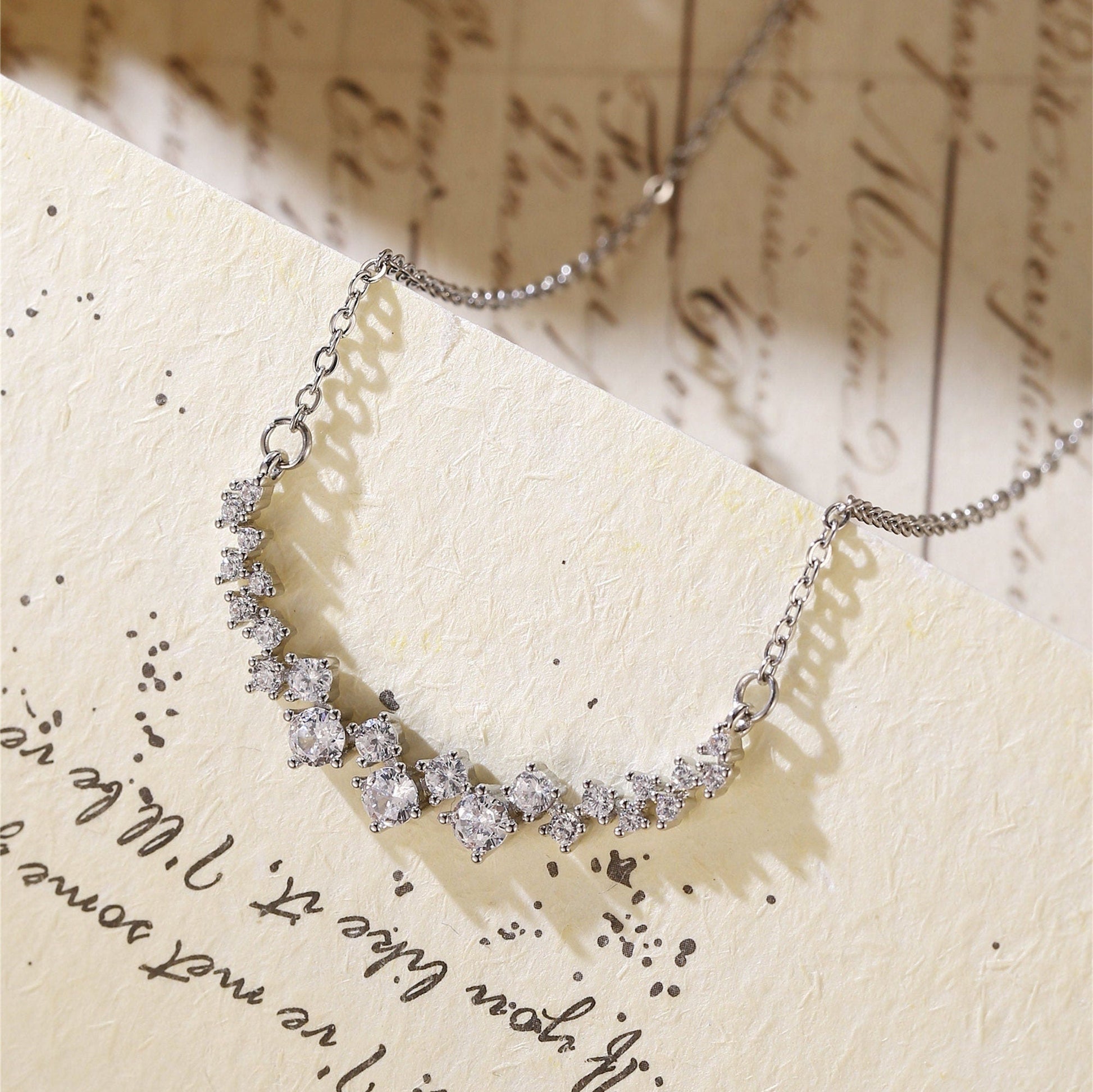 Curved Round Cut Moissanite Necklace, Minimalist Prong Setting Necklace, 9K-18K Solid Gold Necklace, Necklace with Adjustable Chain
