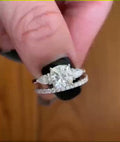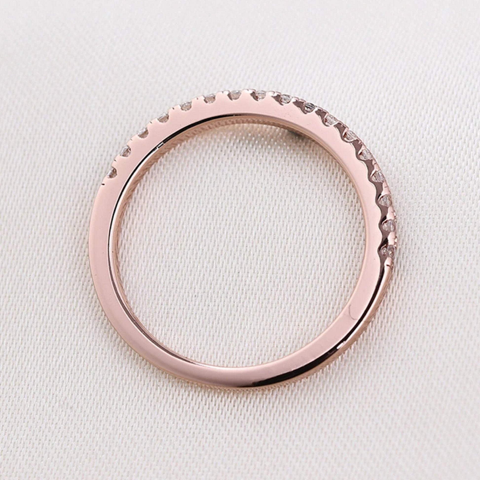 Cushion Moissanite Engagement Ring Set, Round Half Eternity Wedding Band, Bridal Ring Set for Her, Unique 14K Gold Ring, Anniversary Gift