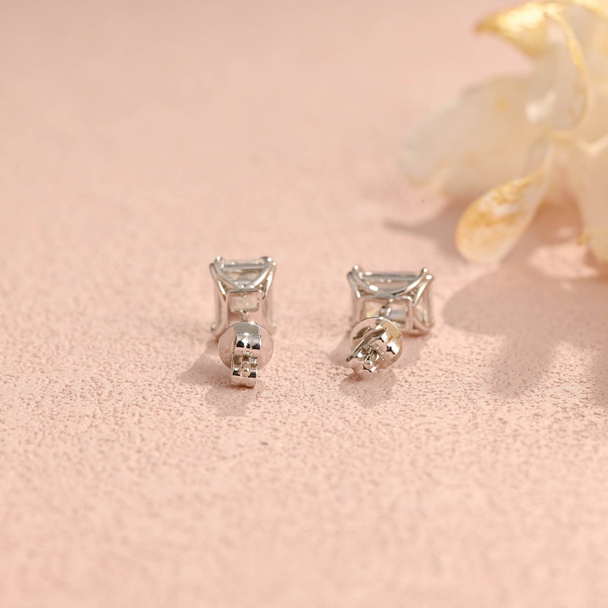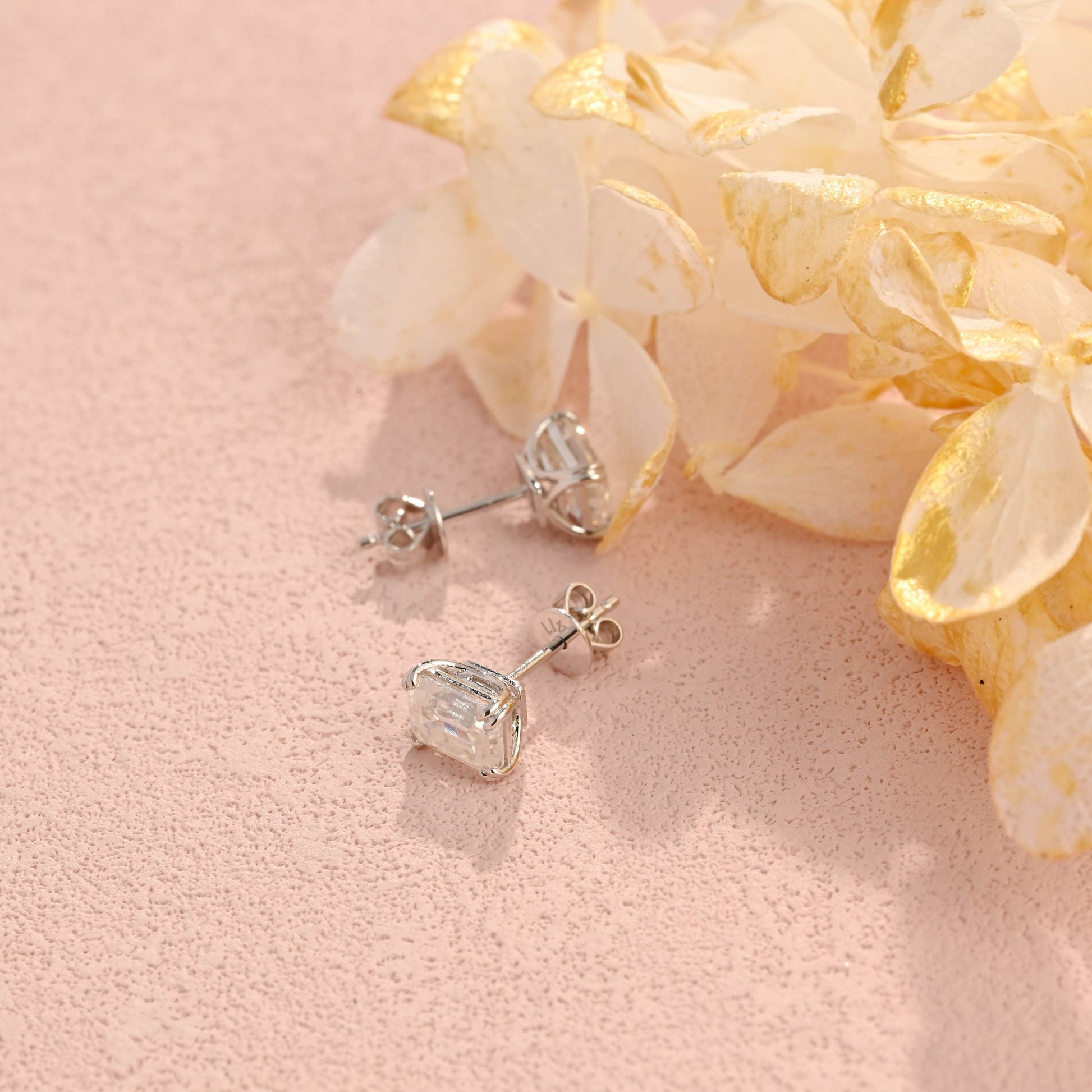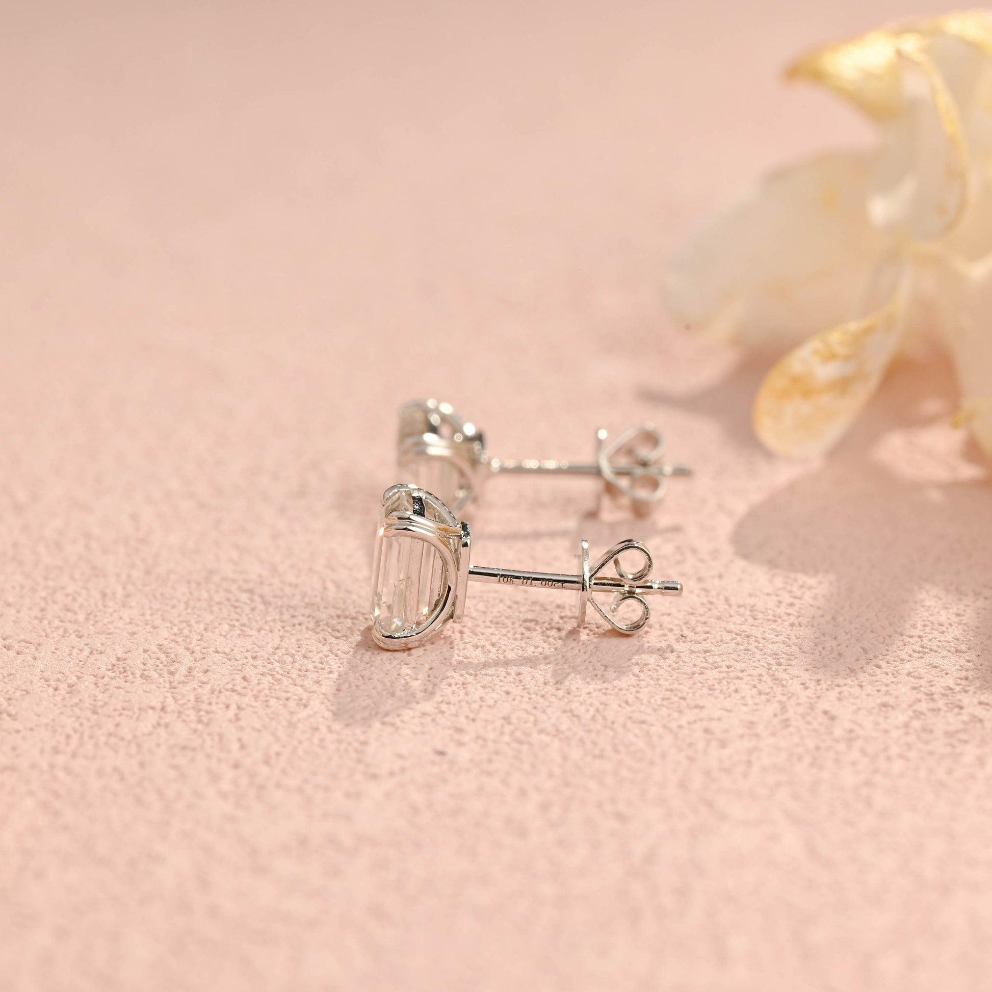 Emerald Cut Moissanite Earrings/14K Gold Earrings Studs/Colorless Moissanite Earrings/1ct Moissanite Studs/Wedding Earrings/Push Back Studs