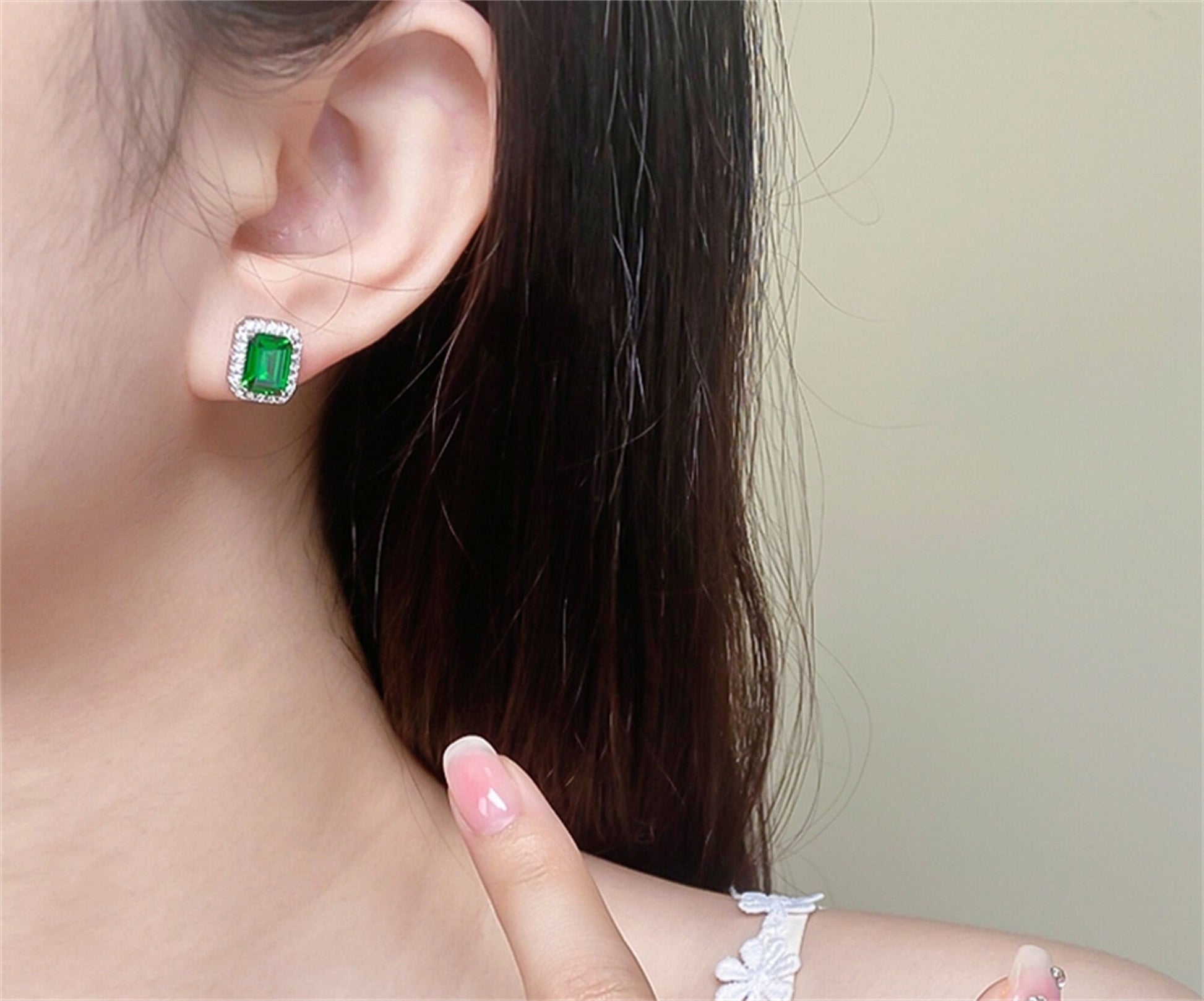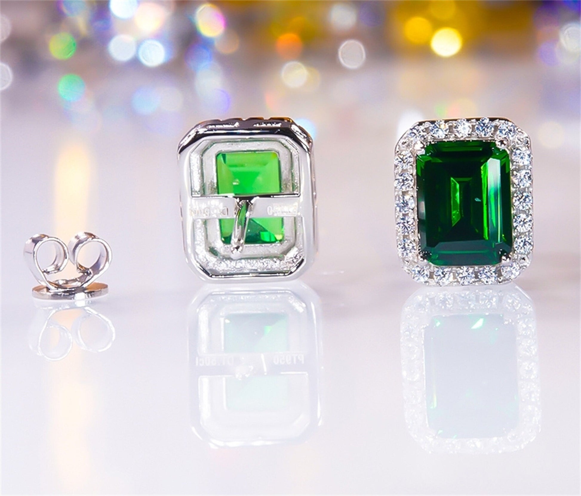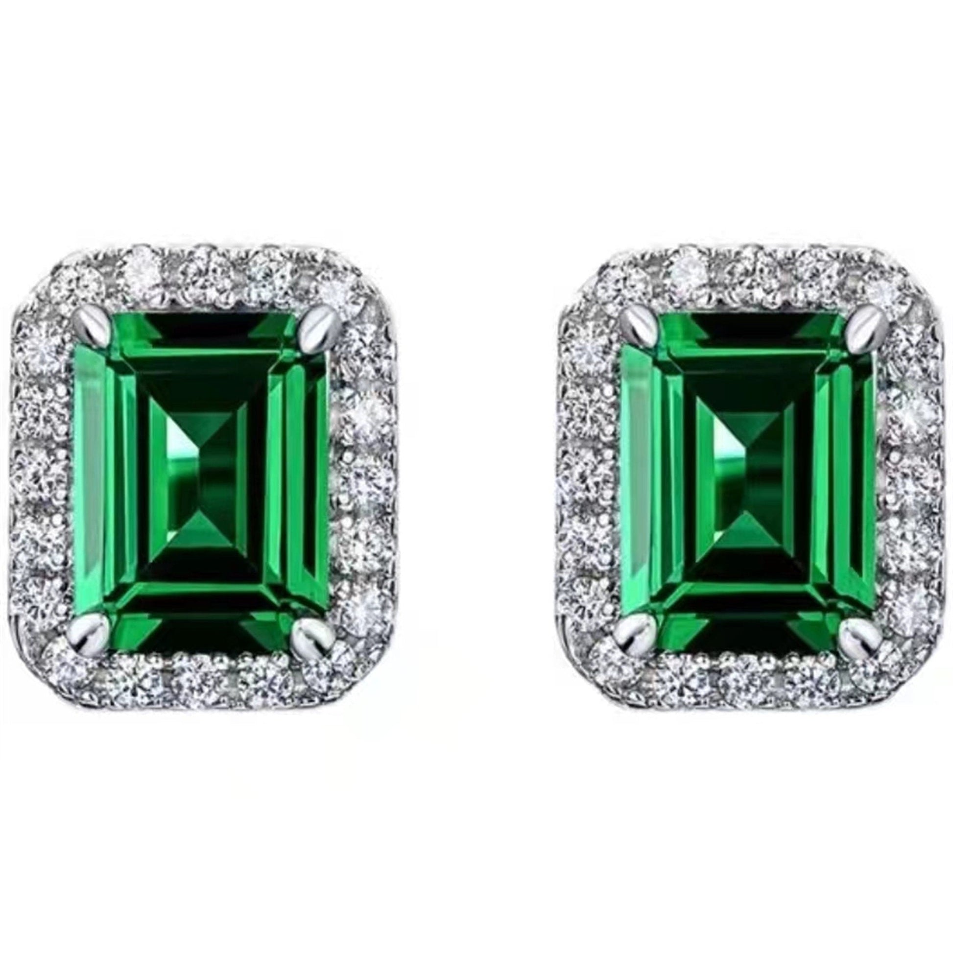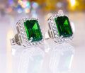Emerald Halo Earrings Studs/1.5ct+1.5ct Classic 14K/18K White Gold Moissanite Engagement Handmade Minimalist Moissanite Vintage Earring
