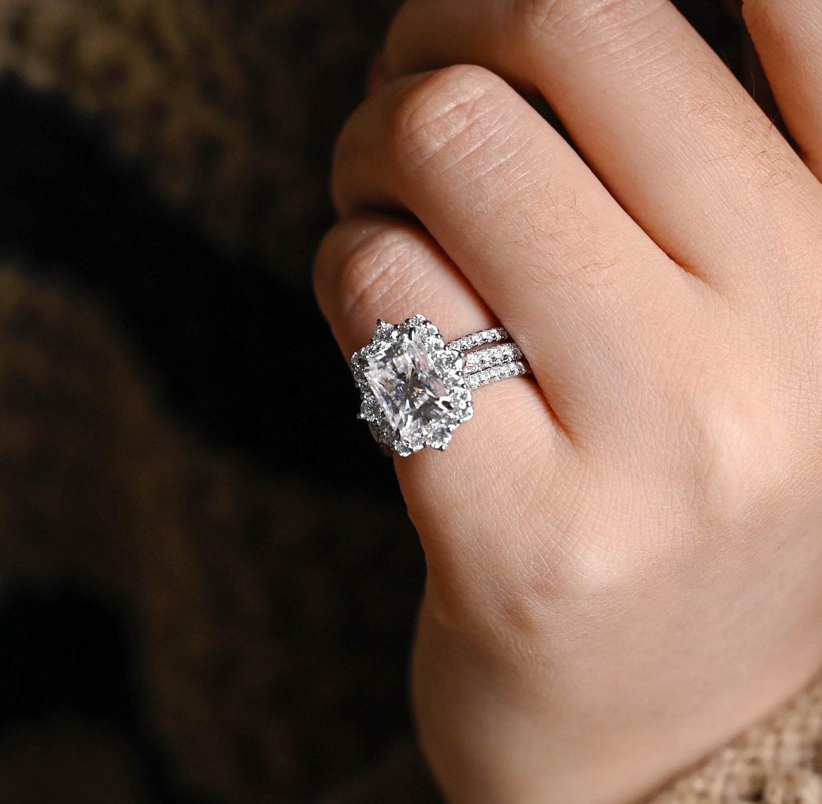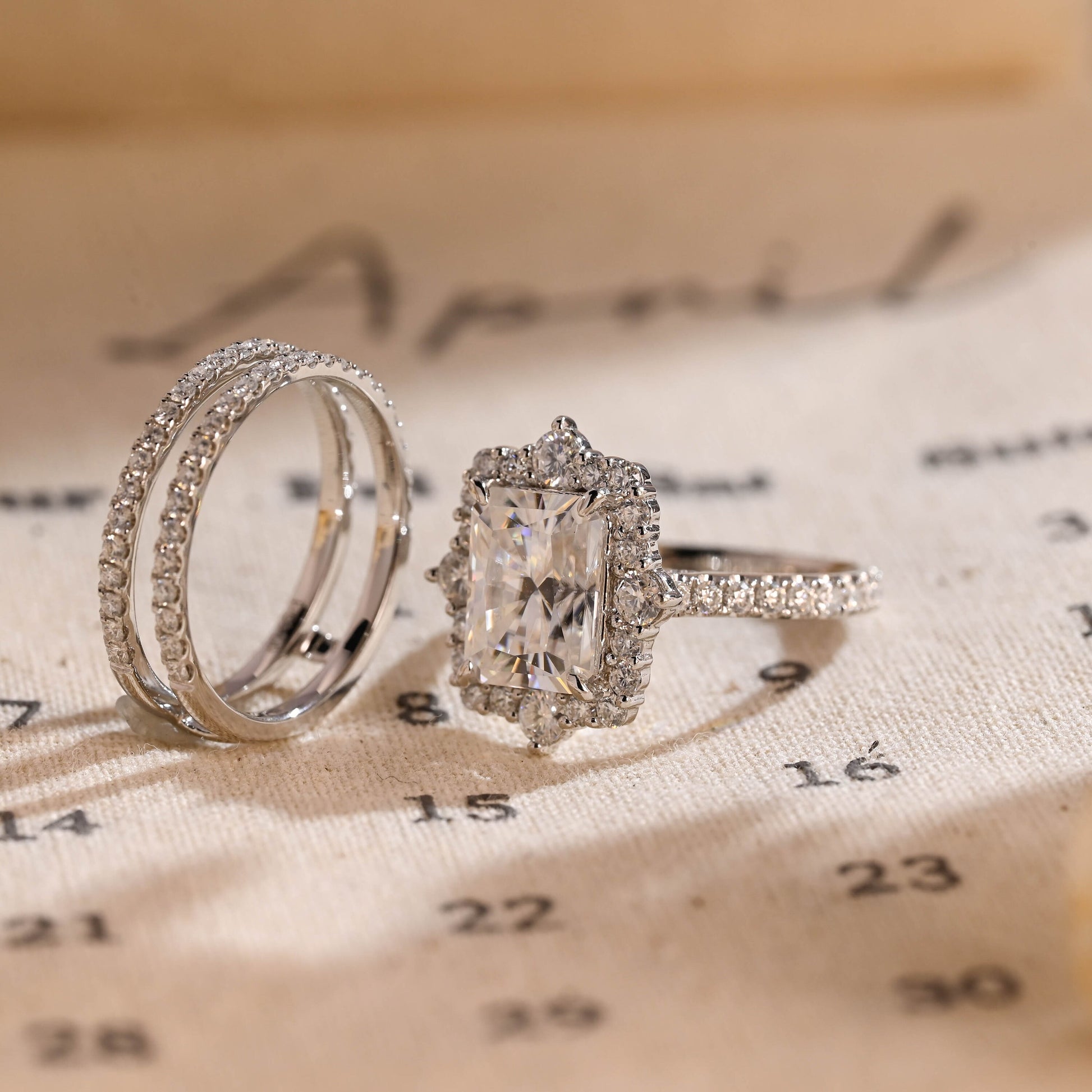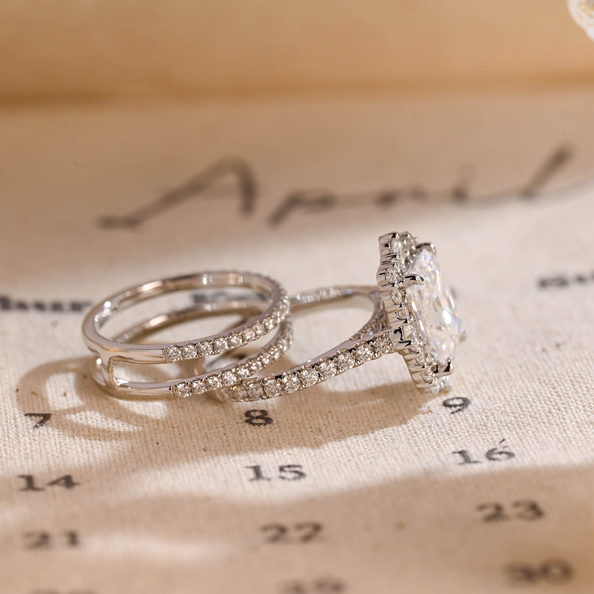 Enhancer Radiant Moissanite Engagement Ring Set, Solid Gold Moissanite Wedding Ring Set Eternity Bridal Ring Set for Women Anniversary Gifts