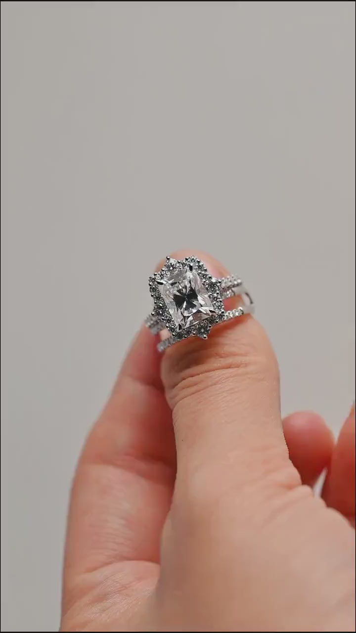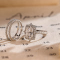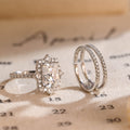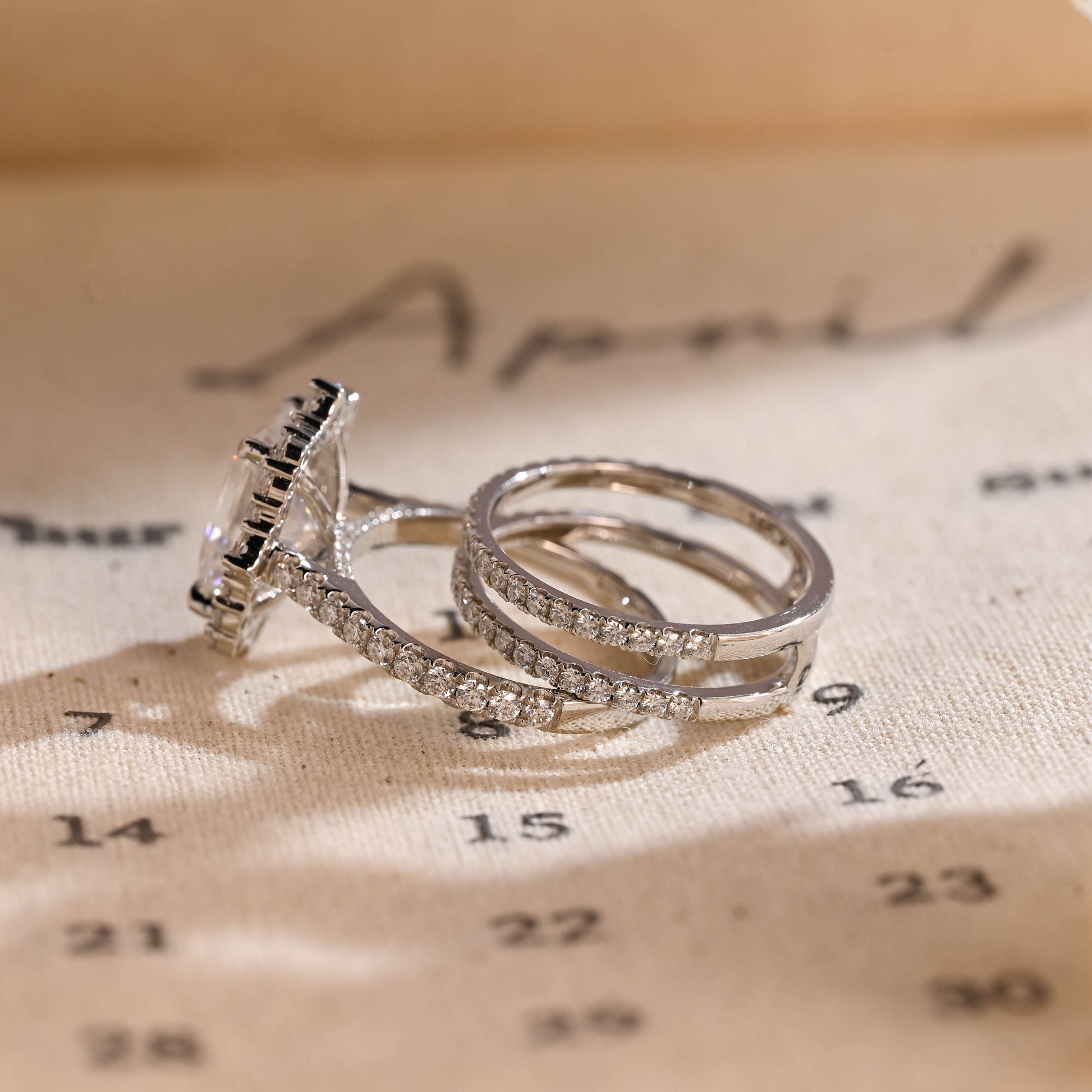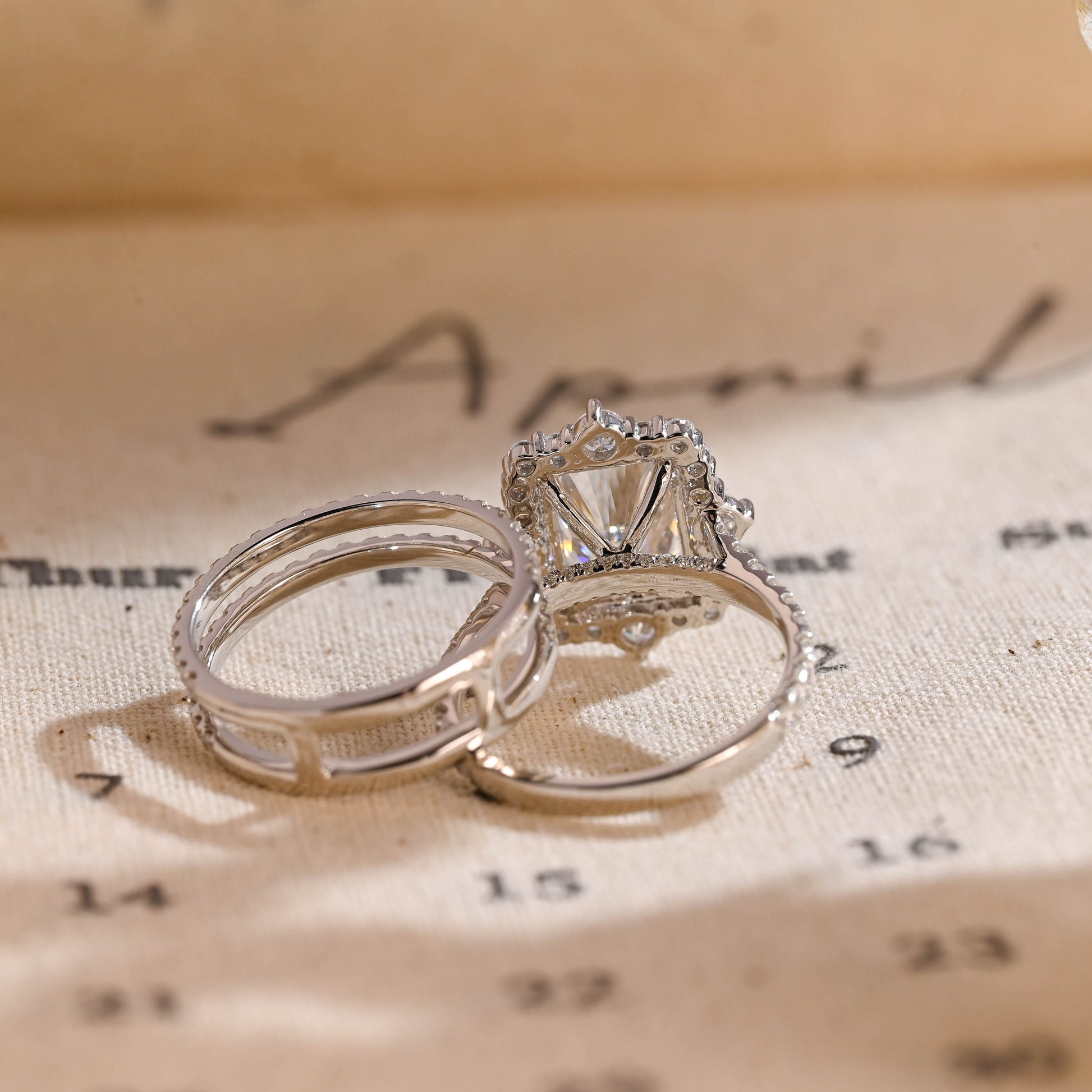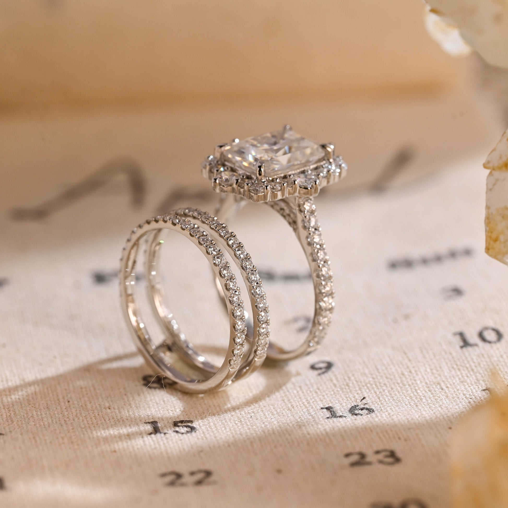 Enhancer Radiant Moissanite Engagement Ring Set, Solid Gold Moissanite Wedding Ring Set Eternity Bridal Ring Set for Women Anniversary Gifts