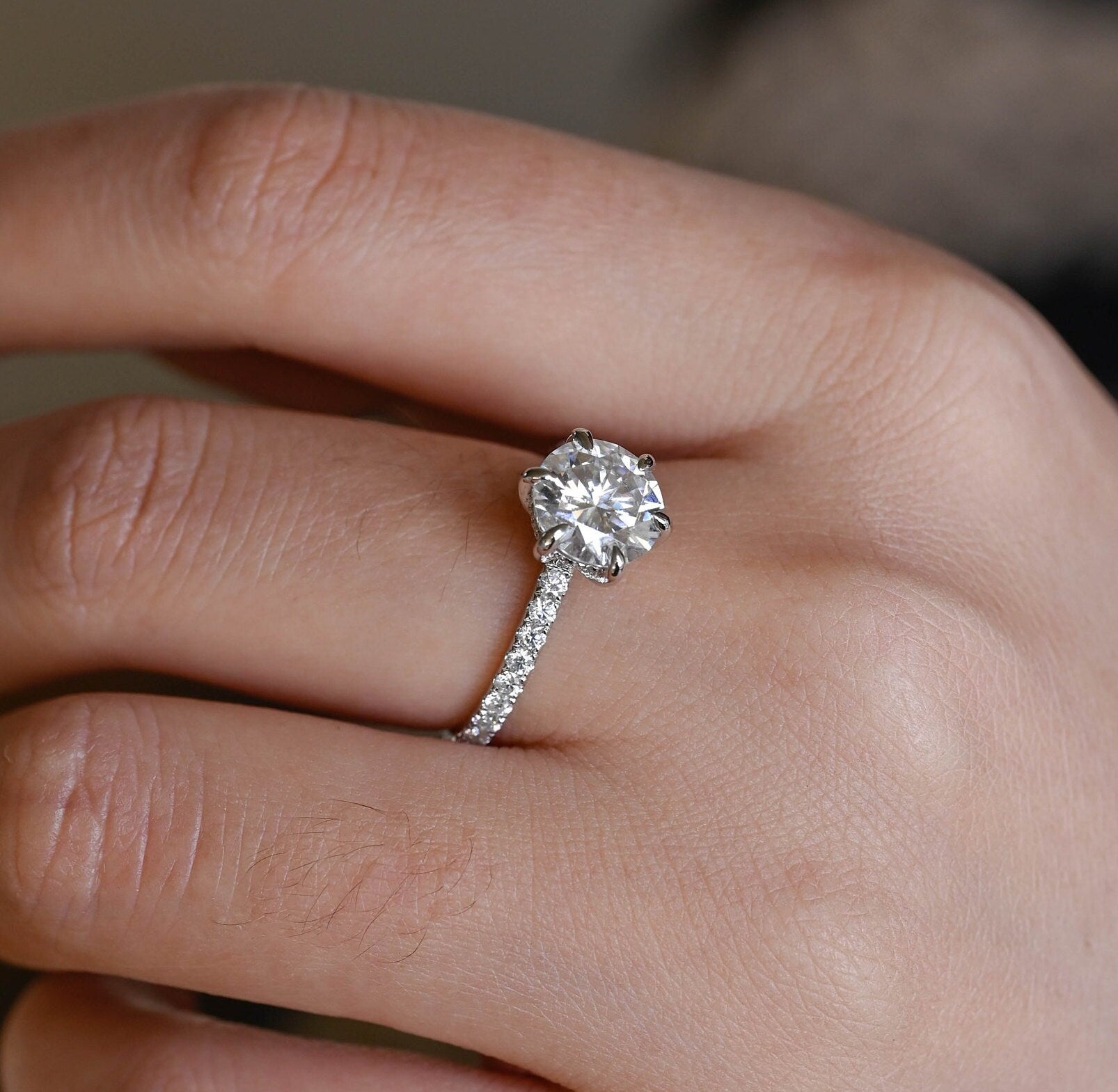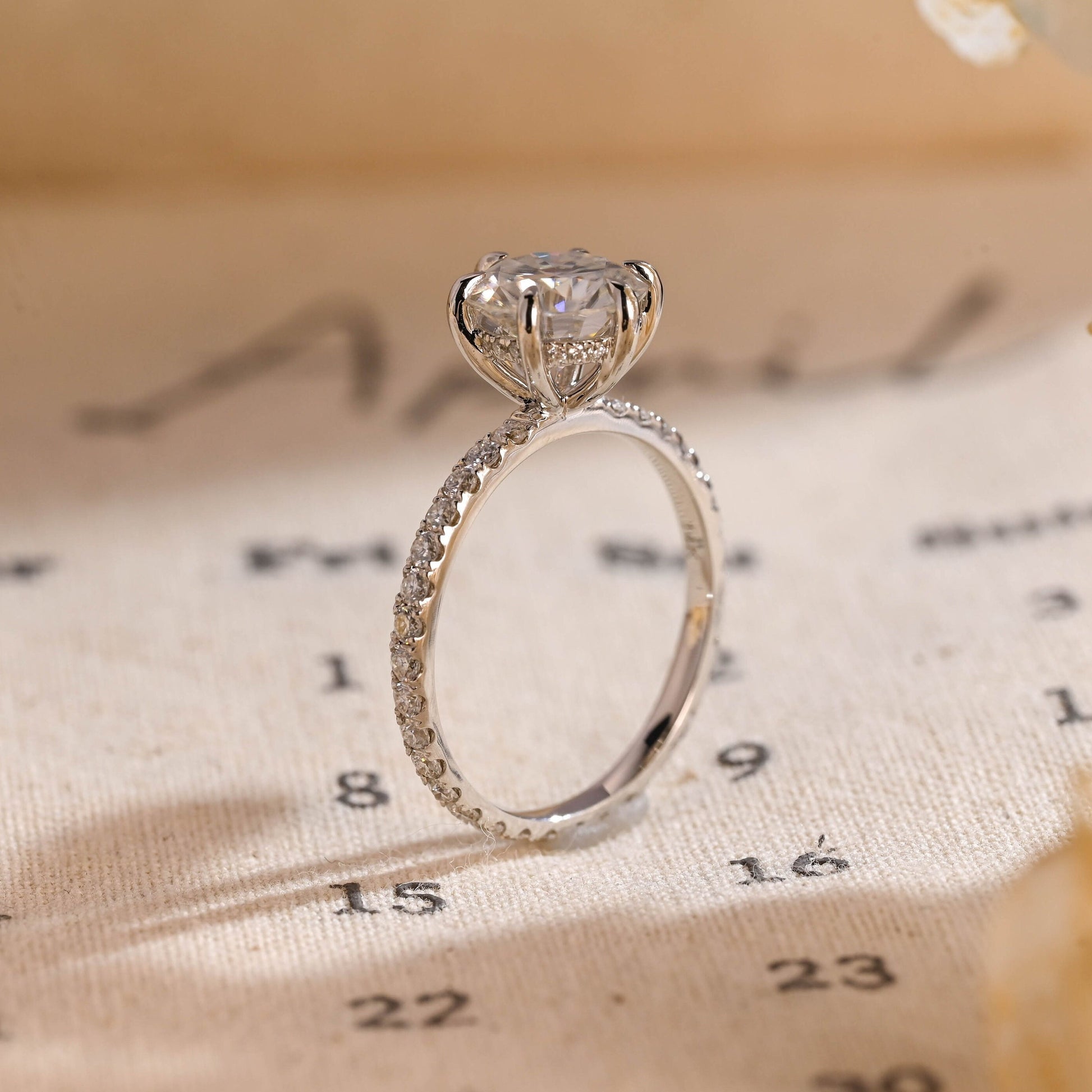 2ctΒ Full Pave Hidden Halo Round Diamond Engagement Ring, Round Cut Ring,Β Promise Ring ForΒ Wife