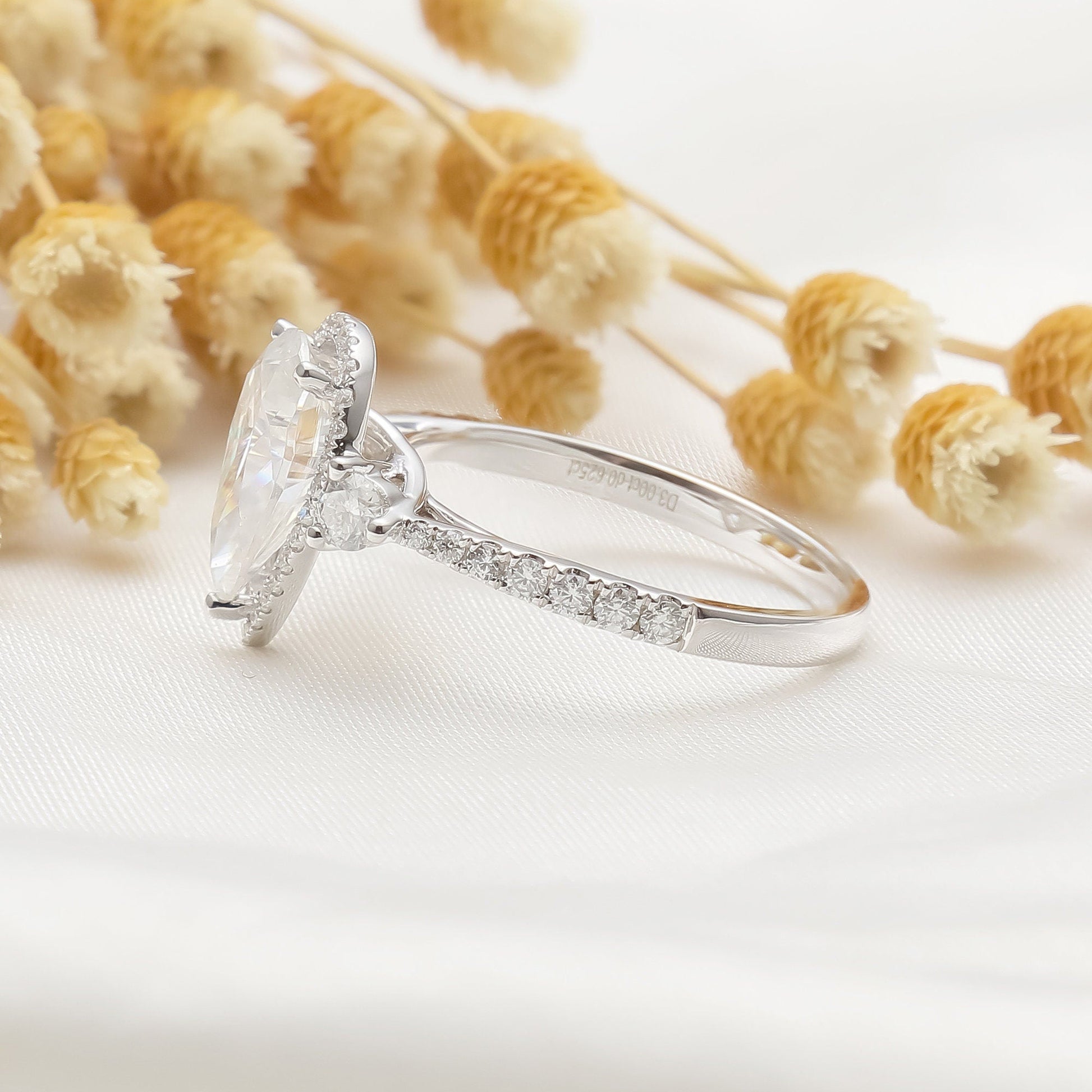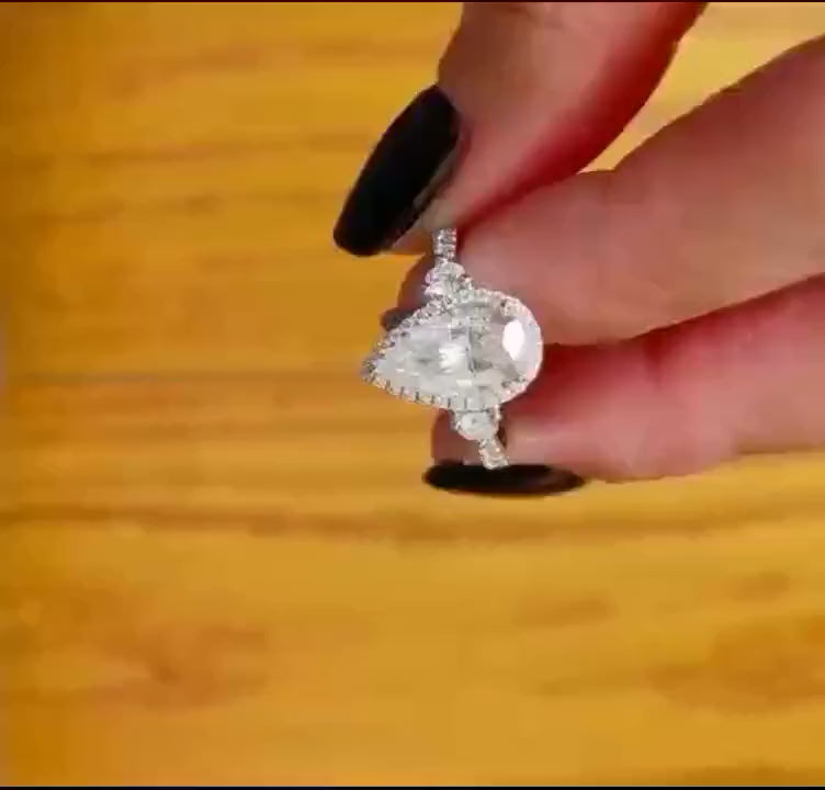 Gold Unique Wedding Ring Set, Pear Cut Moissanite Engagement Ring Set, Moissanite Bridal Set, Promise Ring for Women, 9K/14K/18K Gold Ring