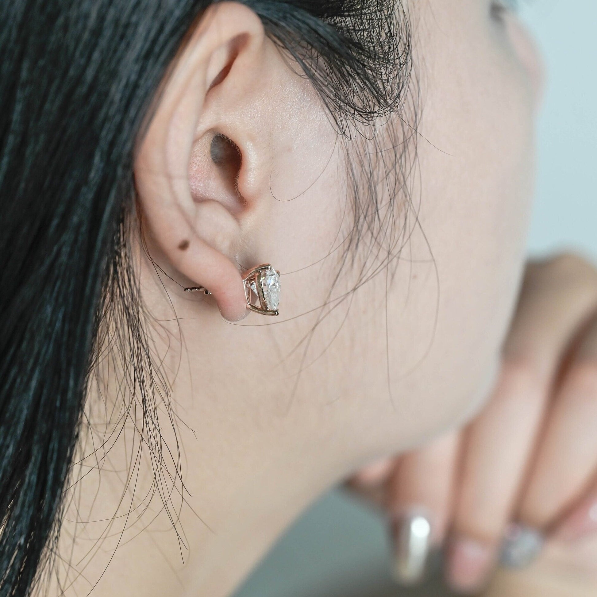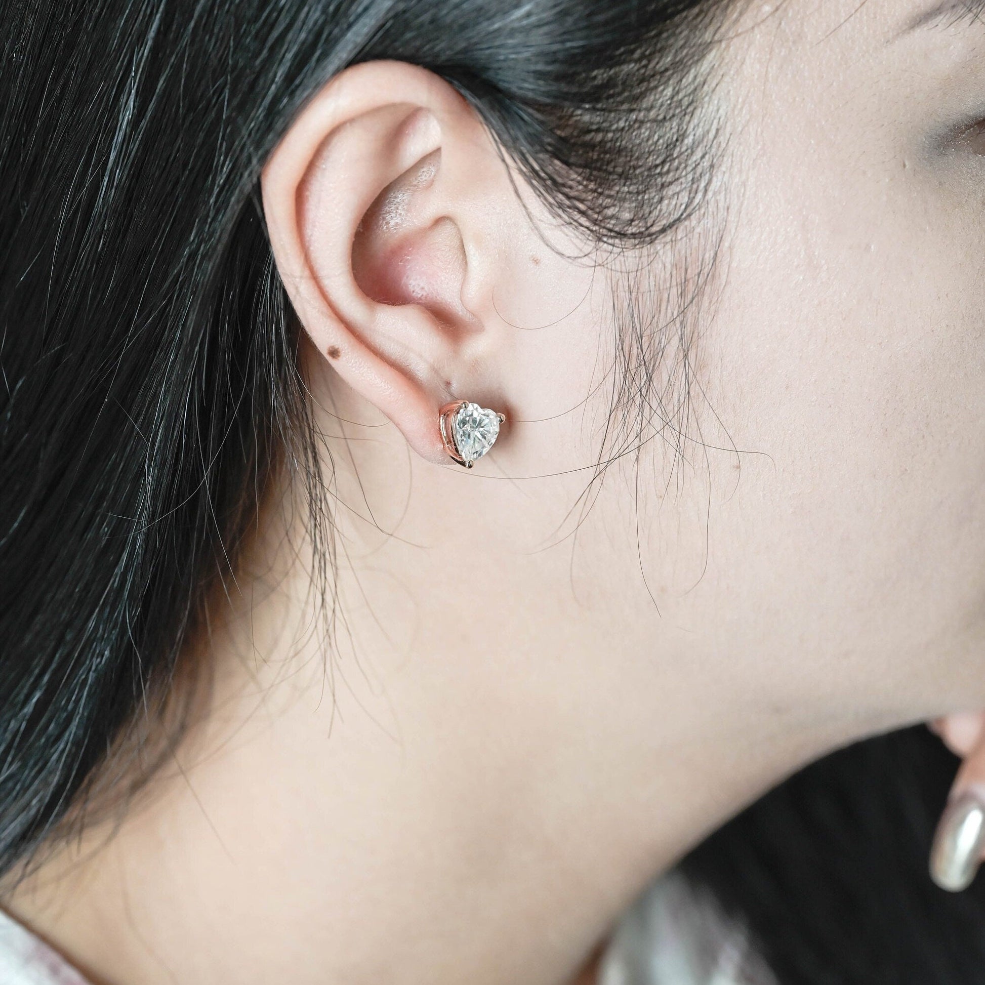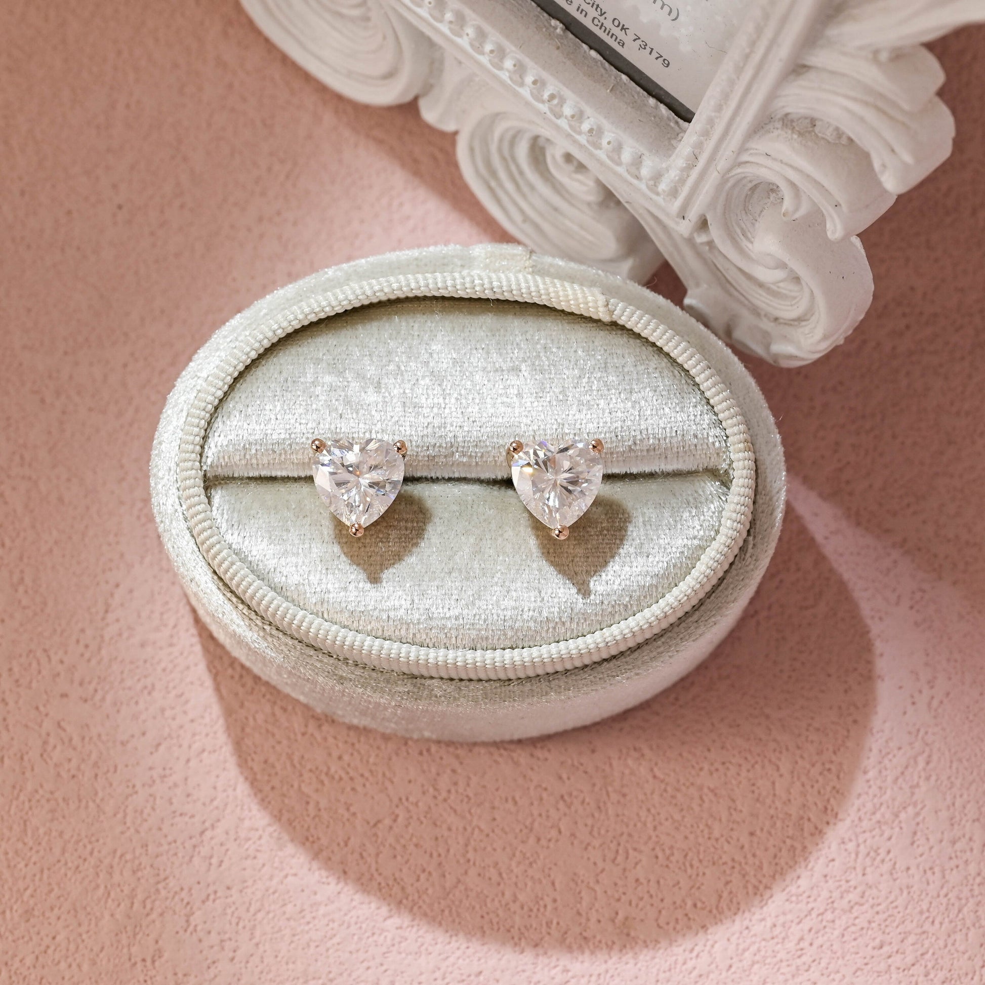 Heart Shaped Moissanite Earrings Studs/14K White Gold Moissanite Studs/Unique Moissanite Anniversary Gift for Her/1ct/2ct/3ct Heart Earrings