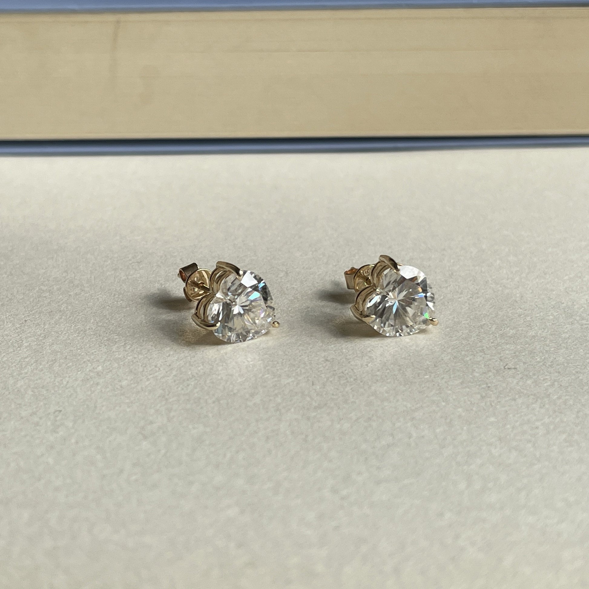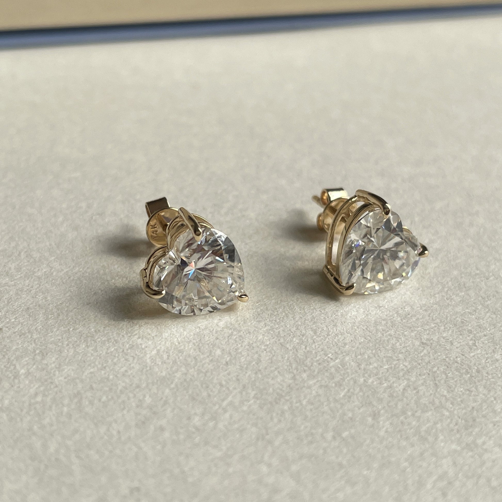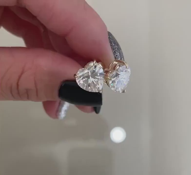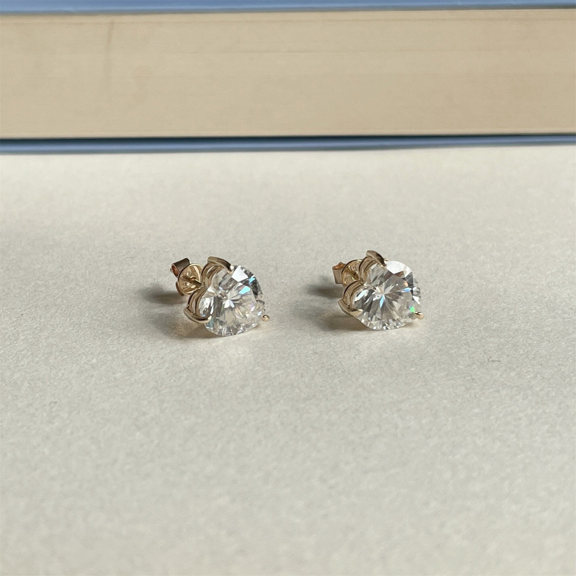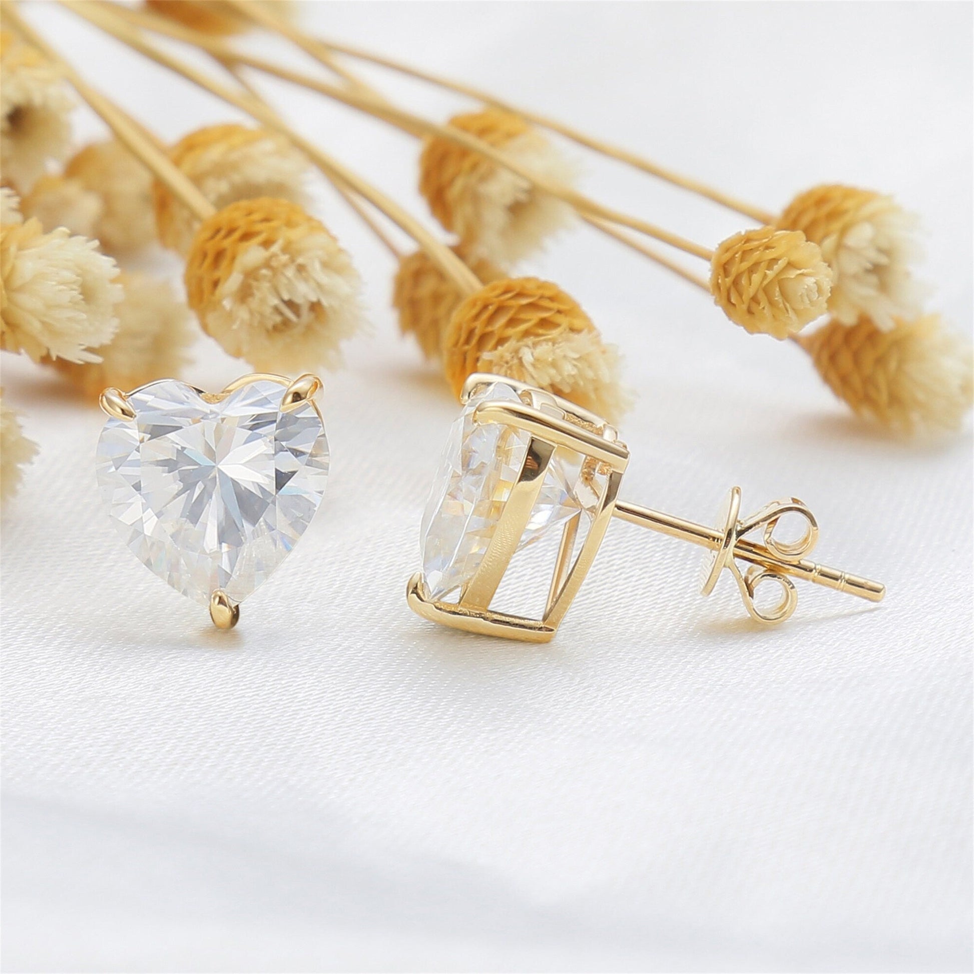 Heart Shaped Moissanite Earrings Studs/14KYellow Gold Moissanite Studs/Unique Moissanite Anniversary Gift for Her/1.0ct+1.0ct Heart Earrings