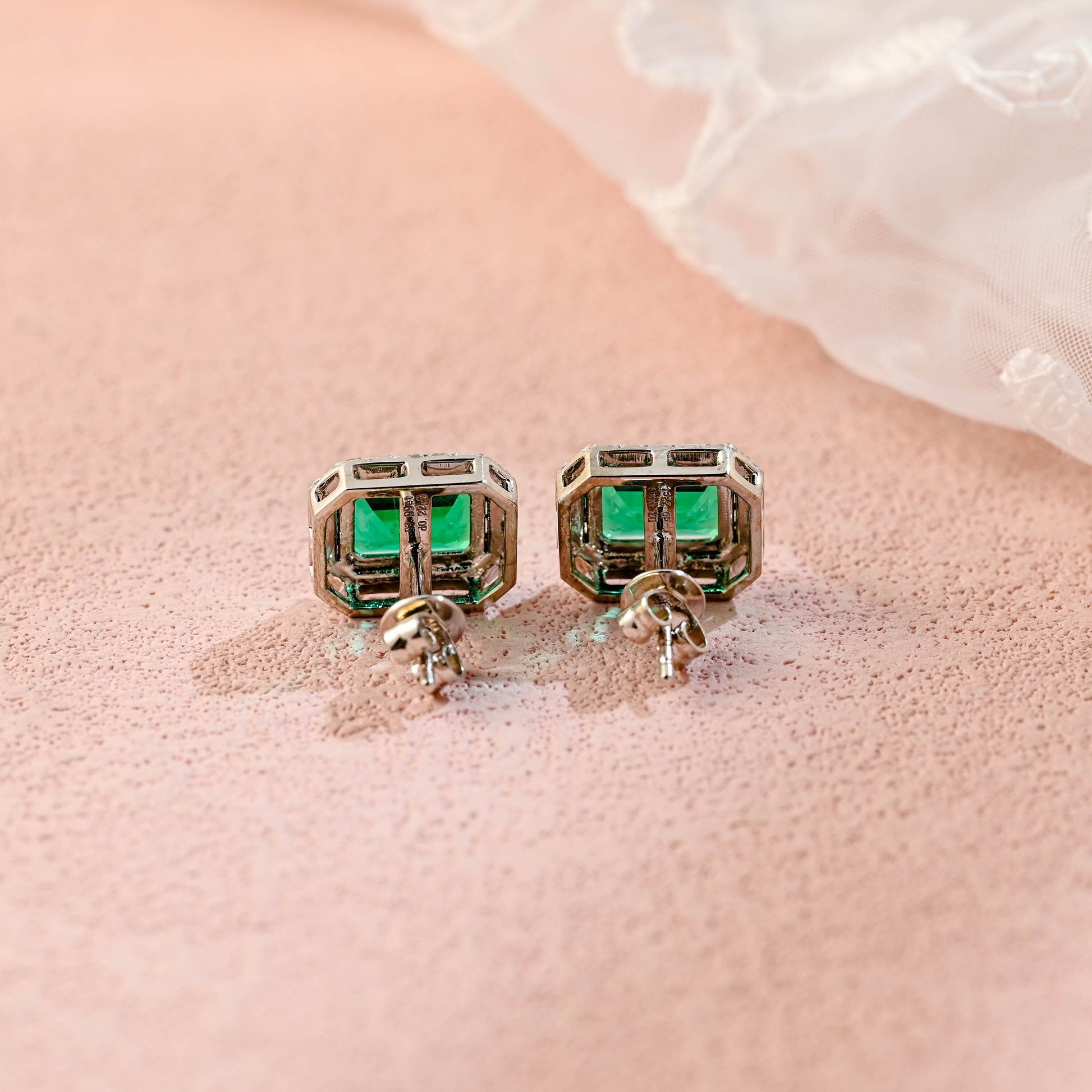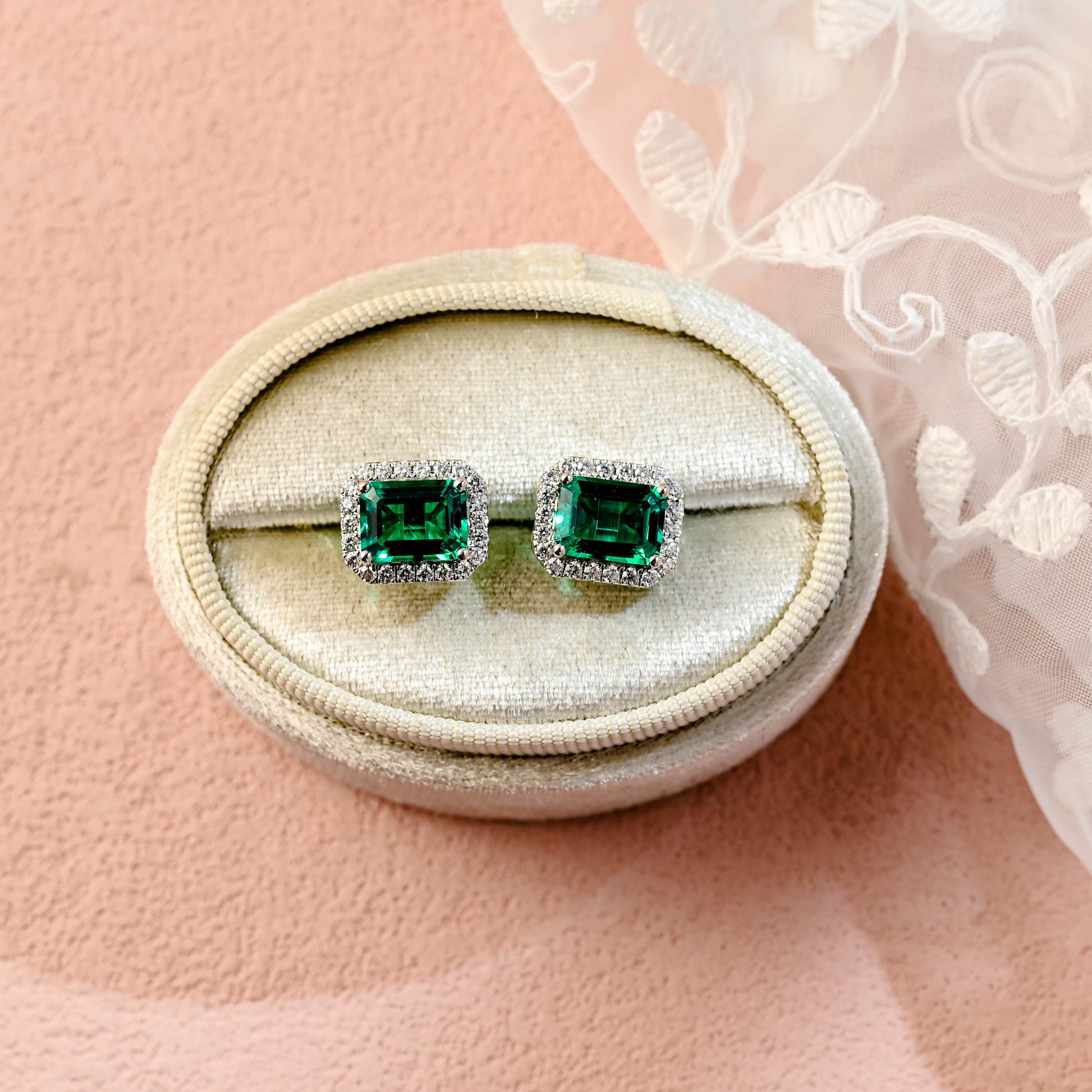 Lab Grown Emerald Earring Studs, Green Gem Wedding Earring Stud, Emerald Studs, Gold Earrings, Anniversary Gift Birthday Gift for Women