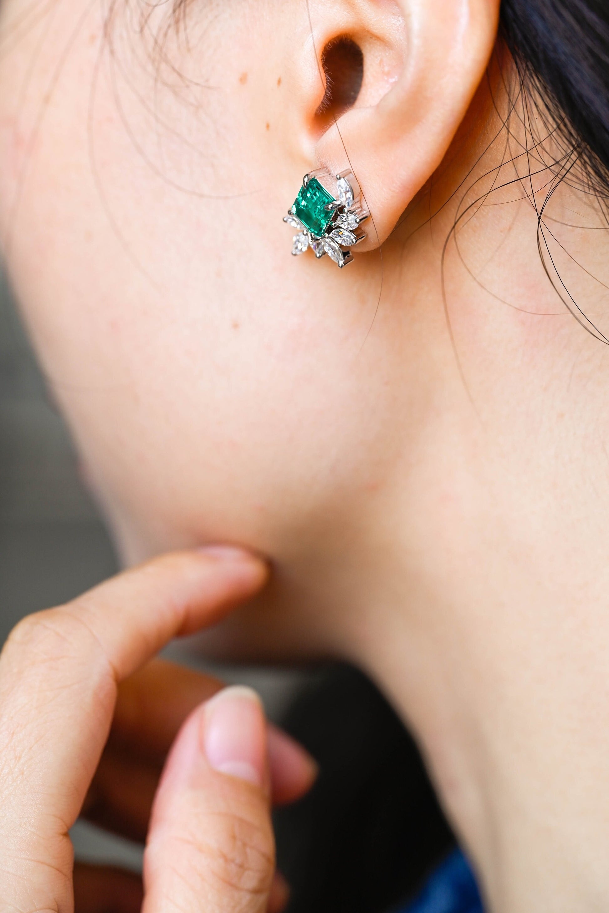 Lab Grown Emerald Earrings, Engagement Earring Studs, Marquise Moissanite Earrings, Gold Wedding Earring Studs, Anniversary Gift for Women