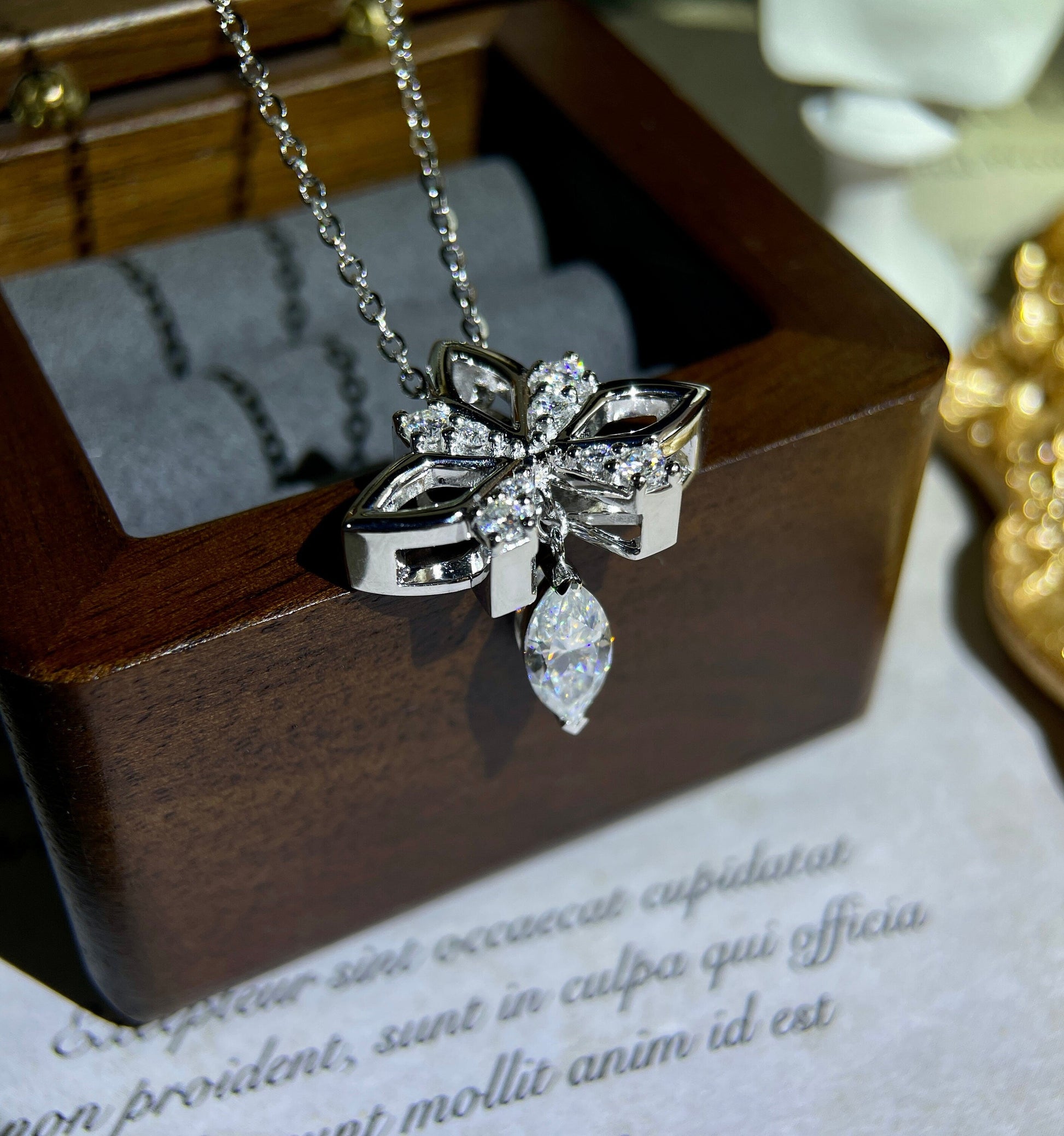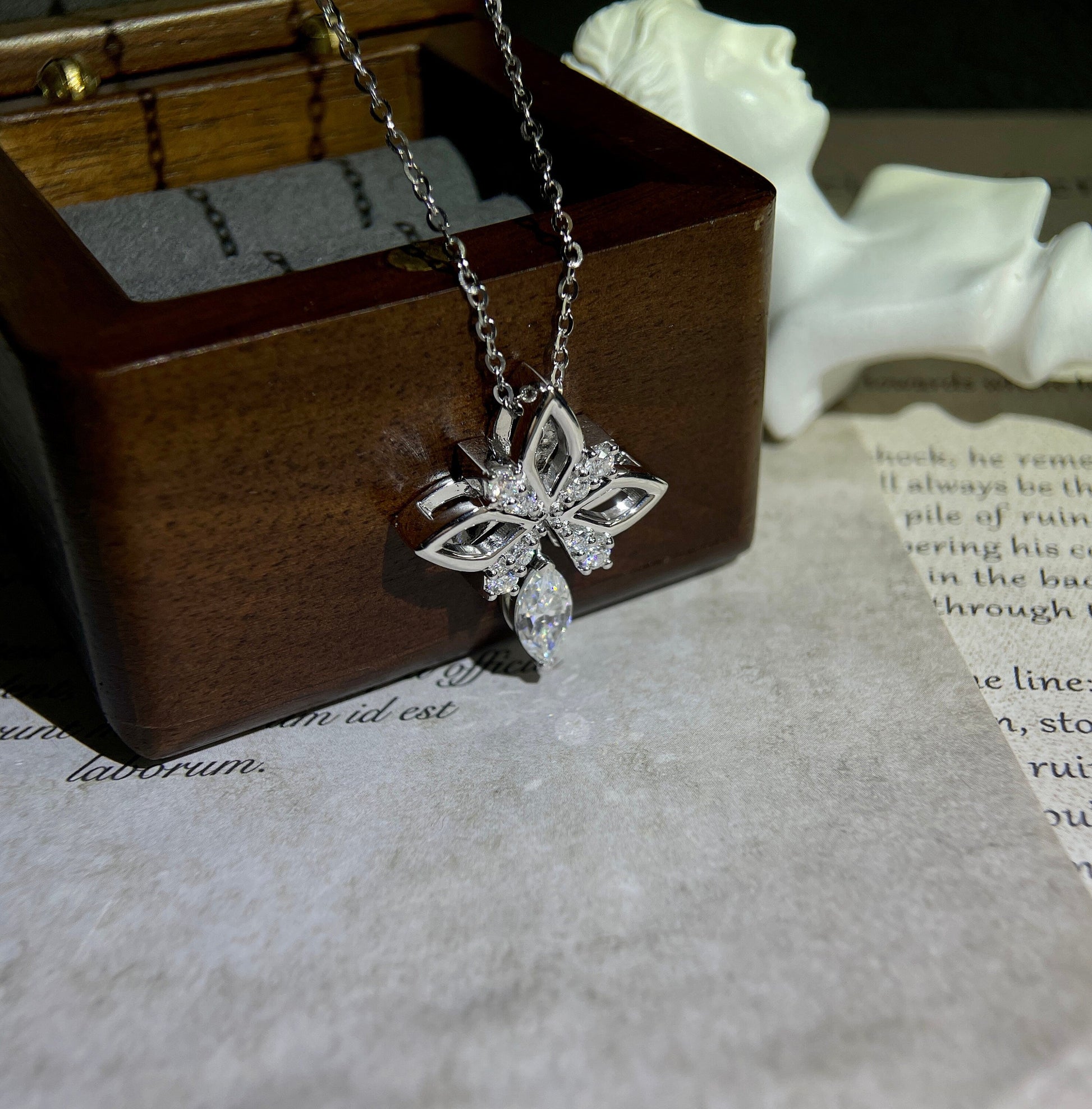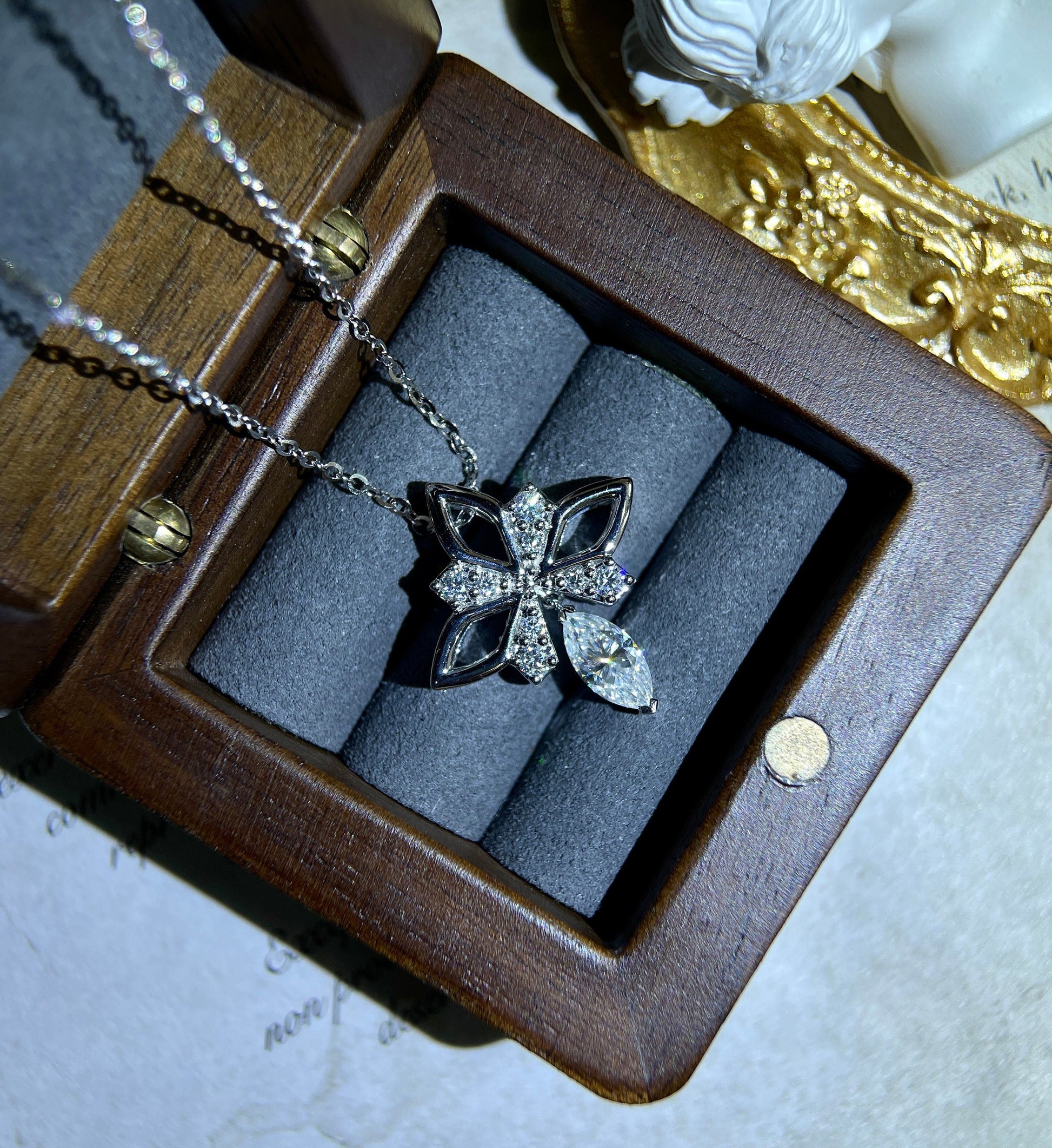 Marquise&Round Cut Moissanite Pendant 9K/14K18K Solid Gold Necklace