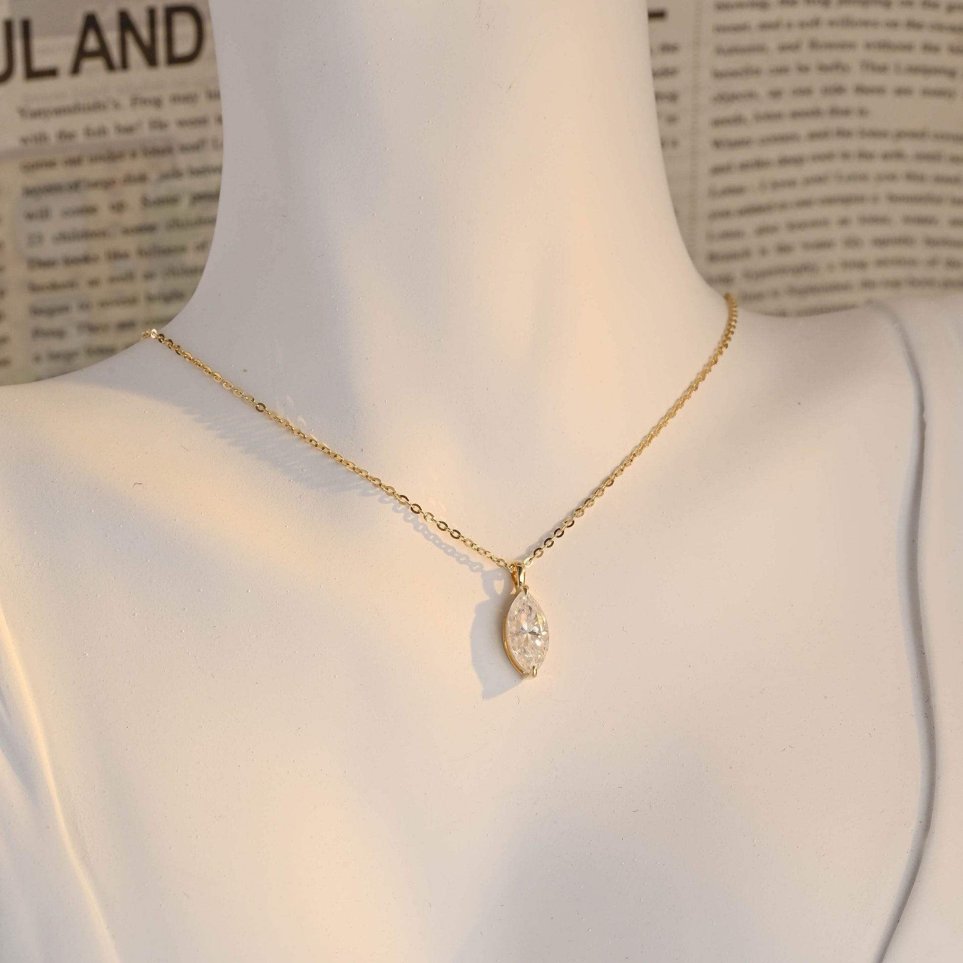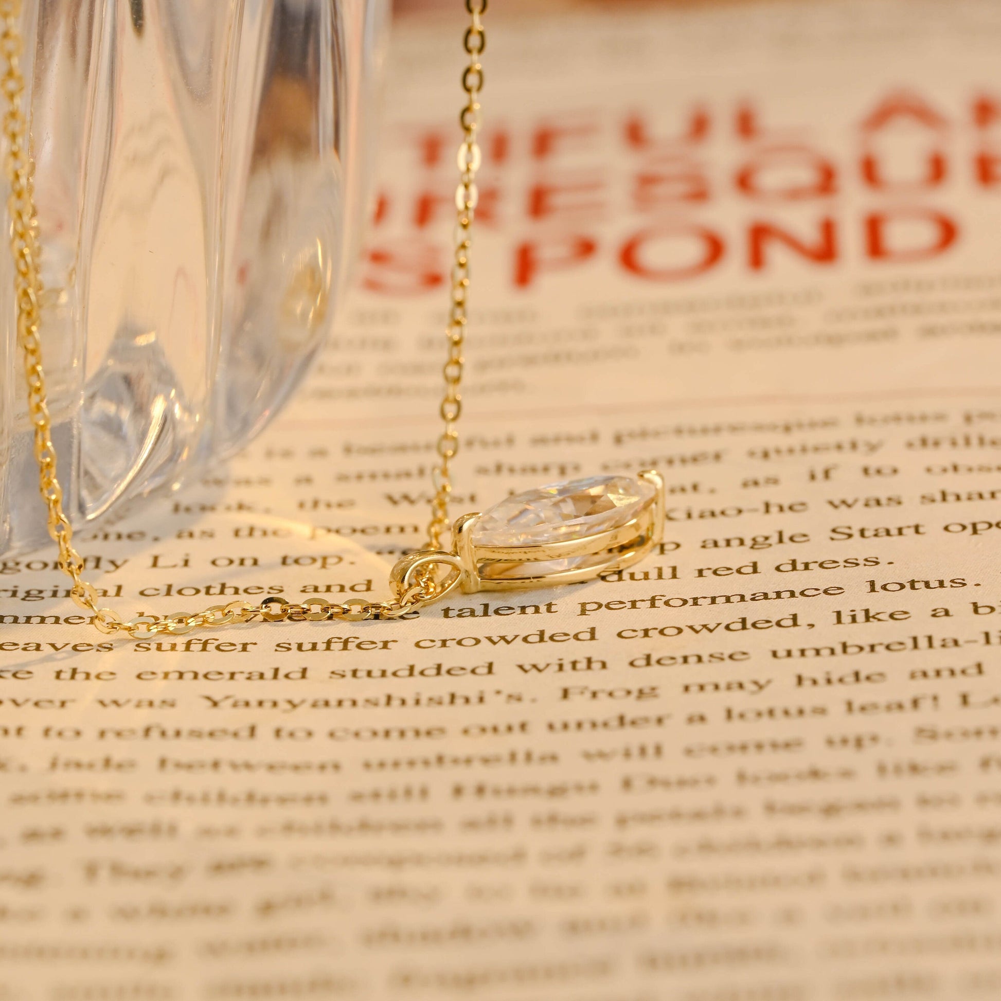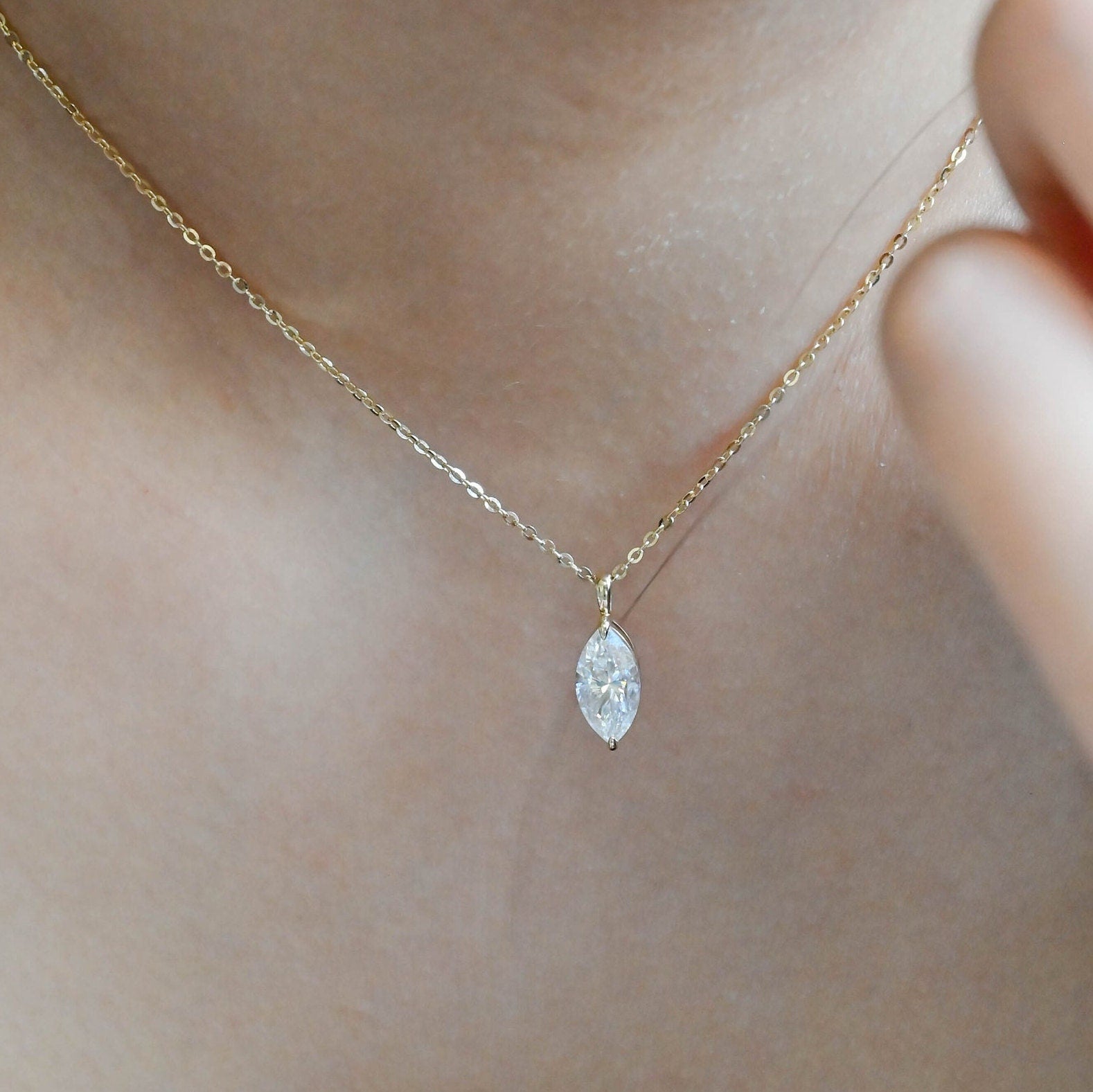 Marquise Cut Solitaire Moissanite Engagement Pendant Necklace, Solid Gold Moissanite Pendant Necklace Anniversary/Birthday/Christmas Gift