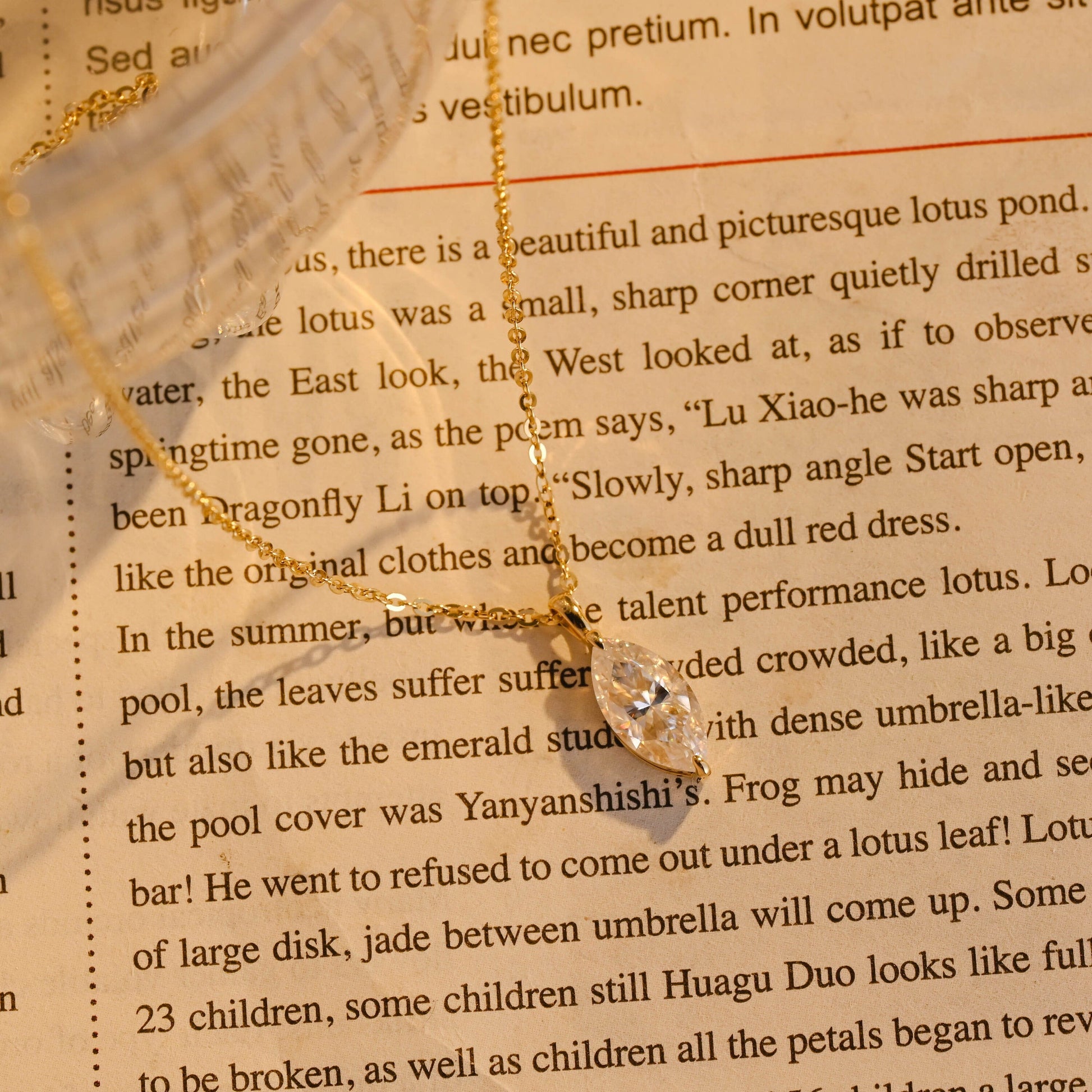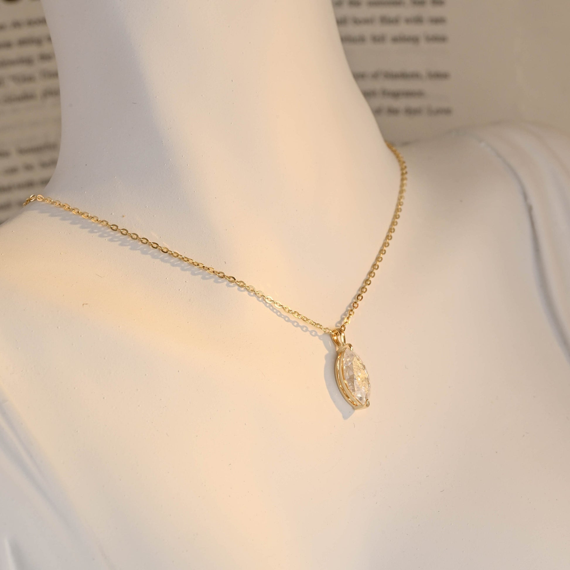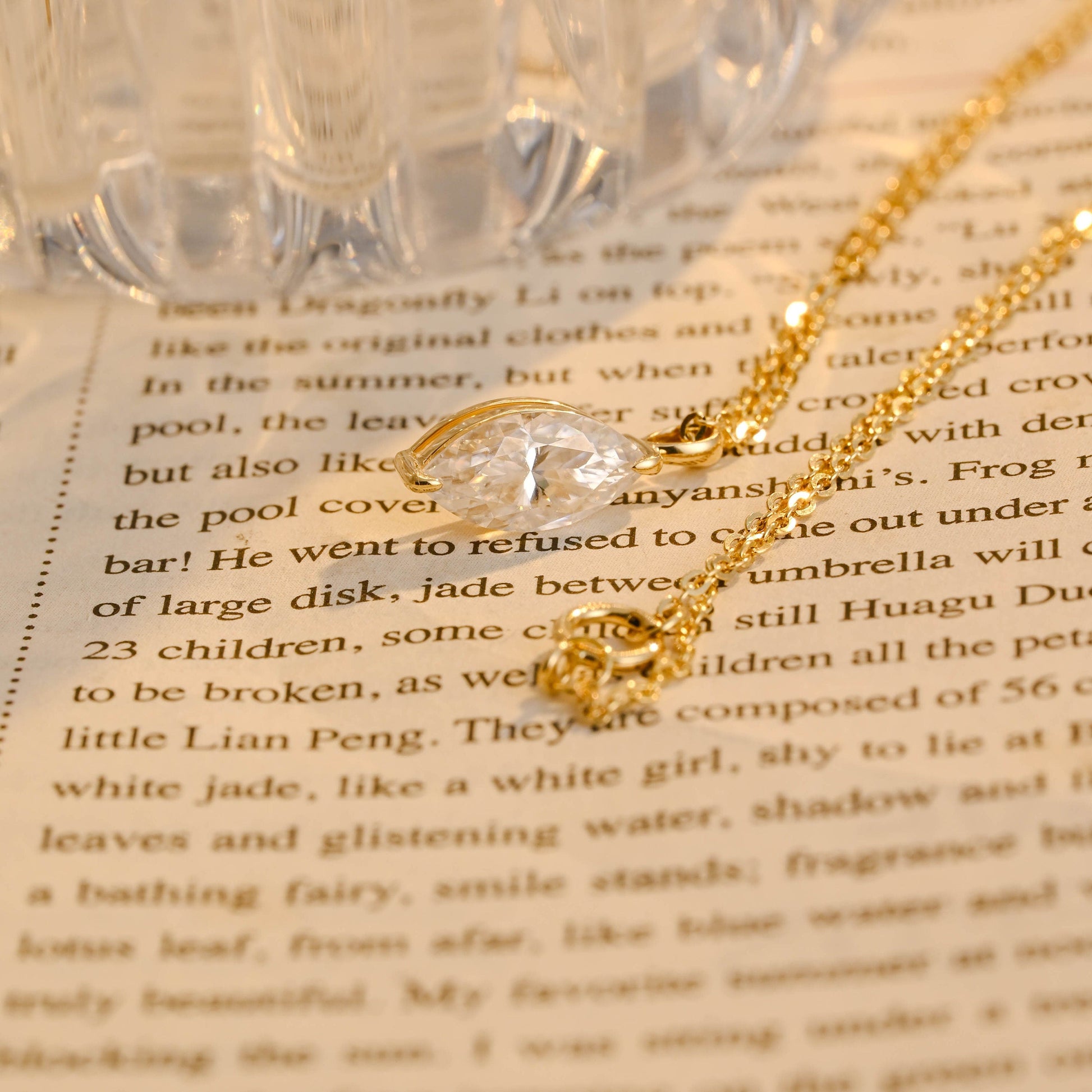 Marquise Cut Solitaire Moissanite Engagement Pendant Necklace, Solid Gold Moissanite Pendant Necklace Anniversary/Birthday/Christmas Gift