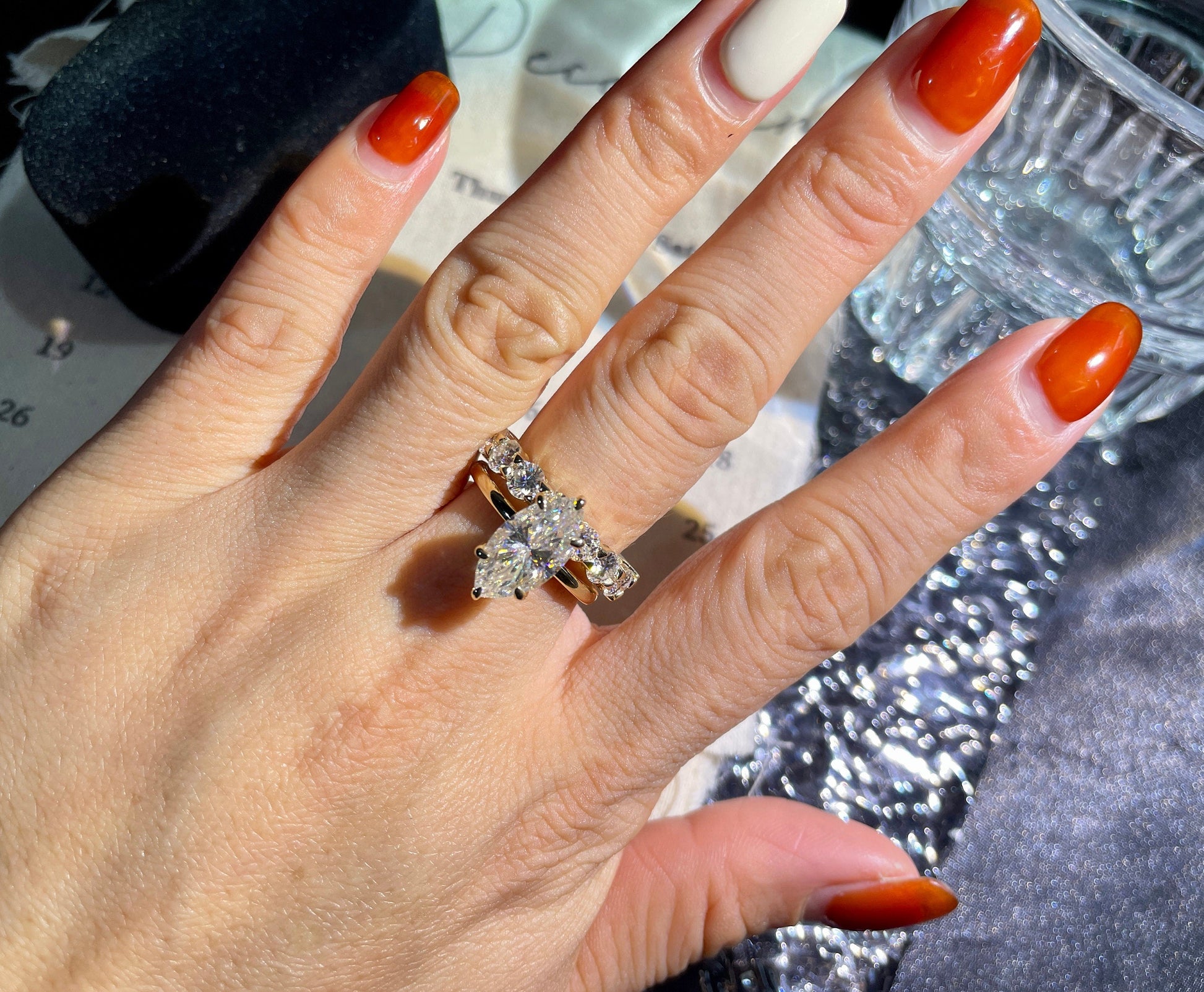 Our jewelry is crafted with simulant diamonds, moissanite, natural diamonds, lab-grown diamonds, and fine metals like 925 silver (with gold plating) and solid 10K, 14K, and 18K gold in white, yellow, and rose gold.