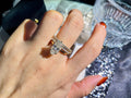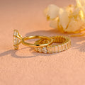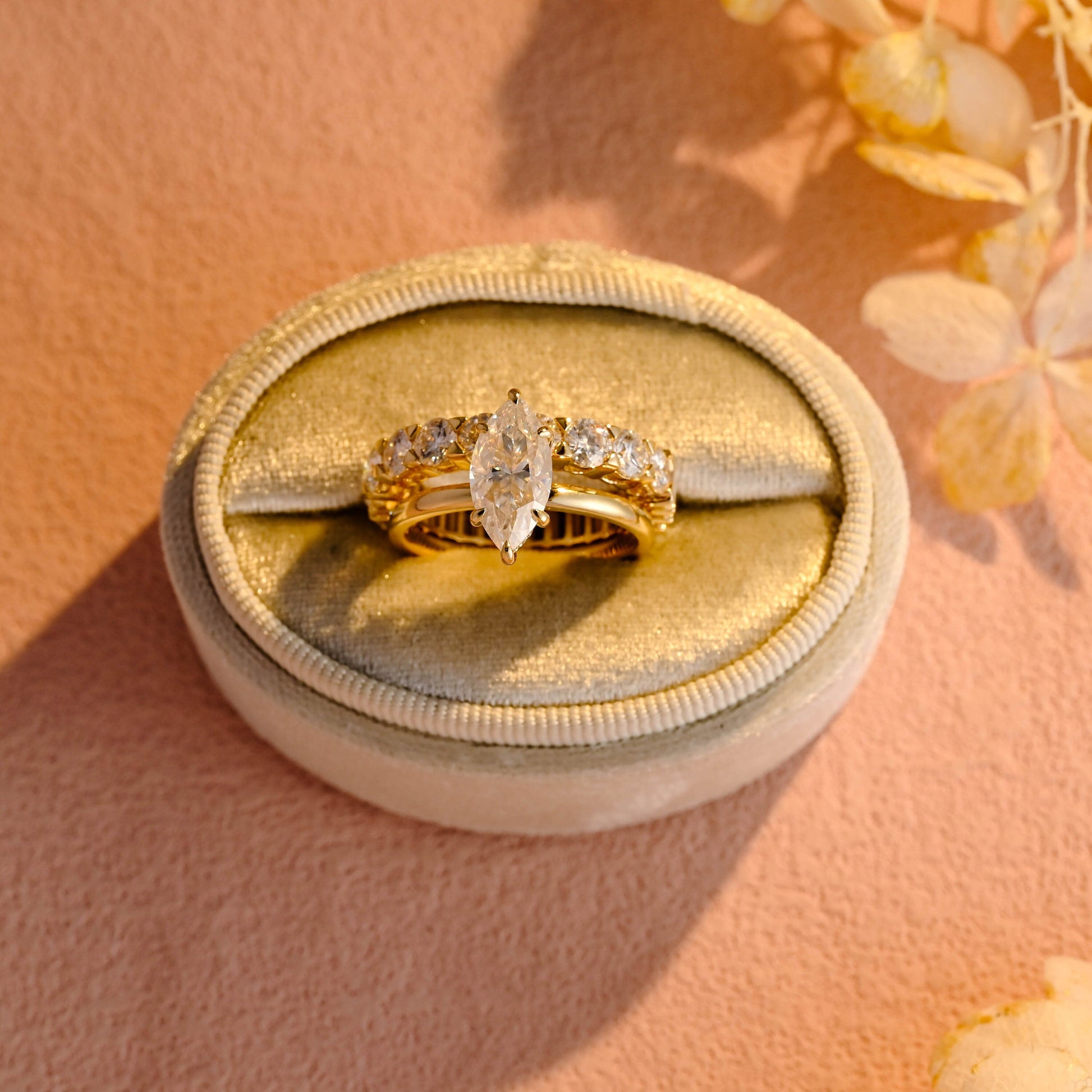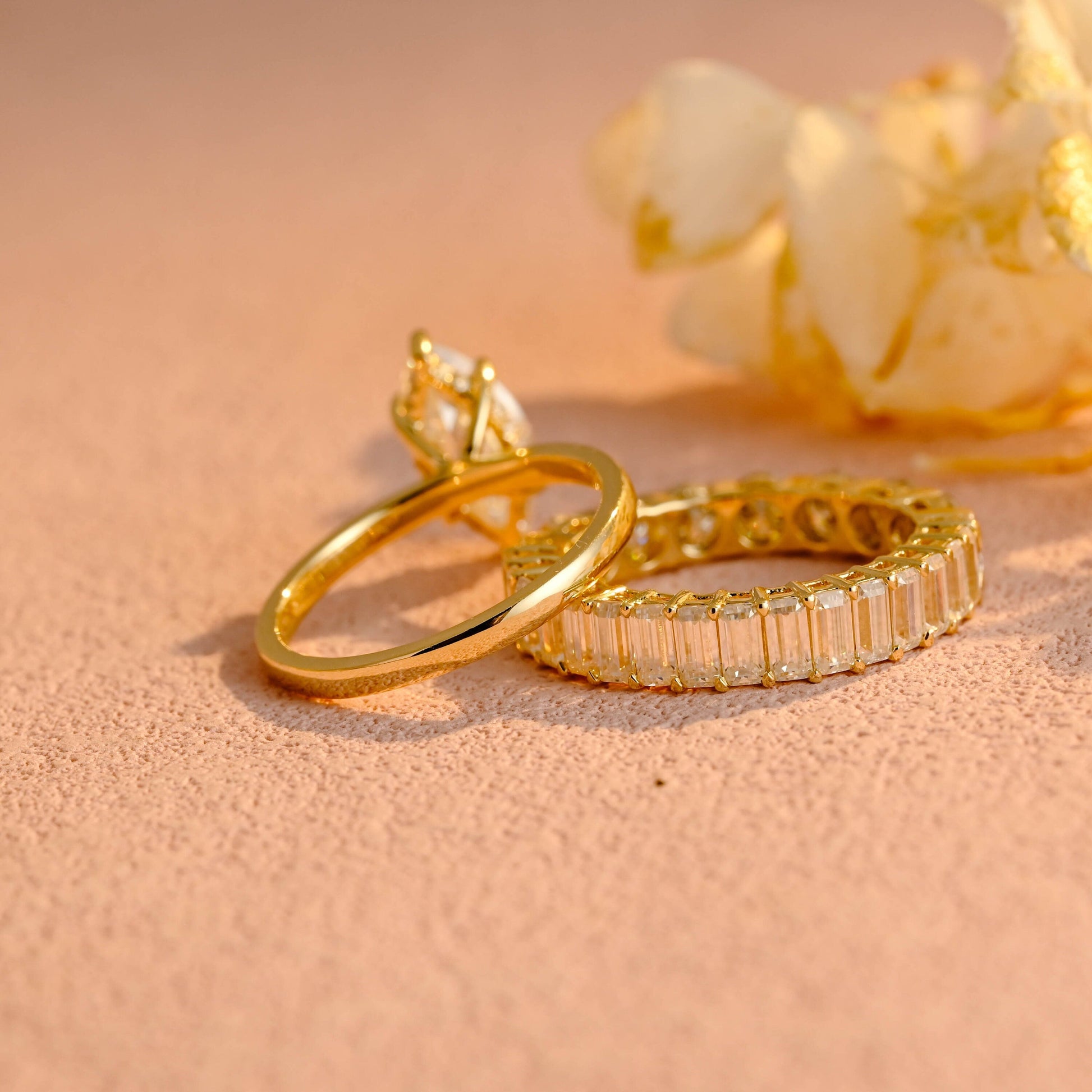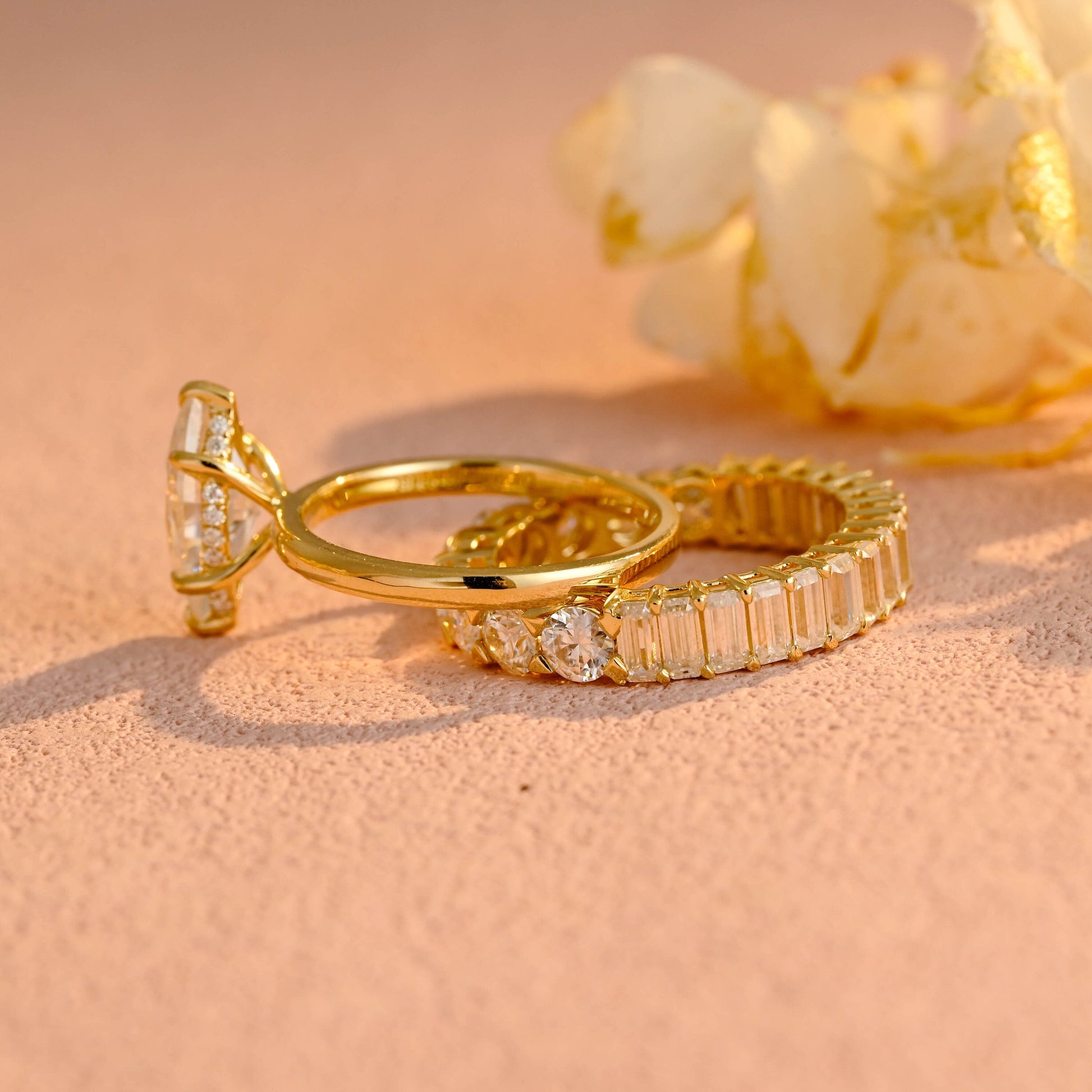 Marquise Moissanite Ring Set, Hidden Halo Moissanite Bridal Set, Two Sided Emerald Round Moissanite Wedding Band, Gold Ring Set,Gift for Her