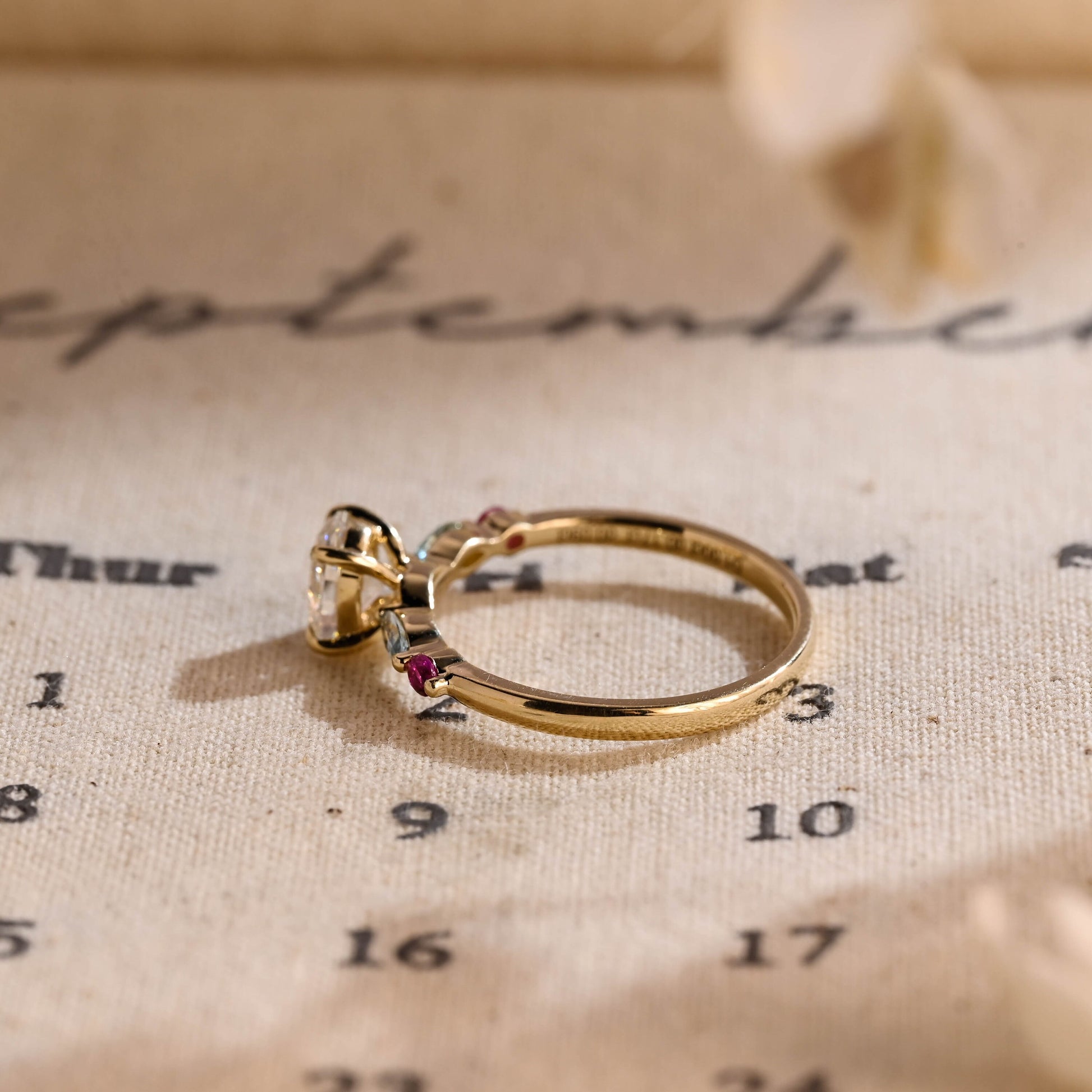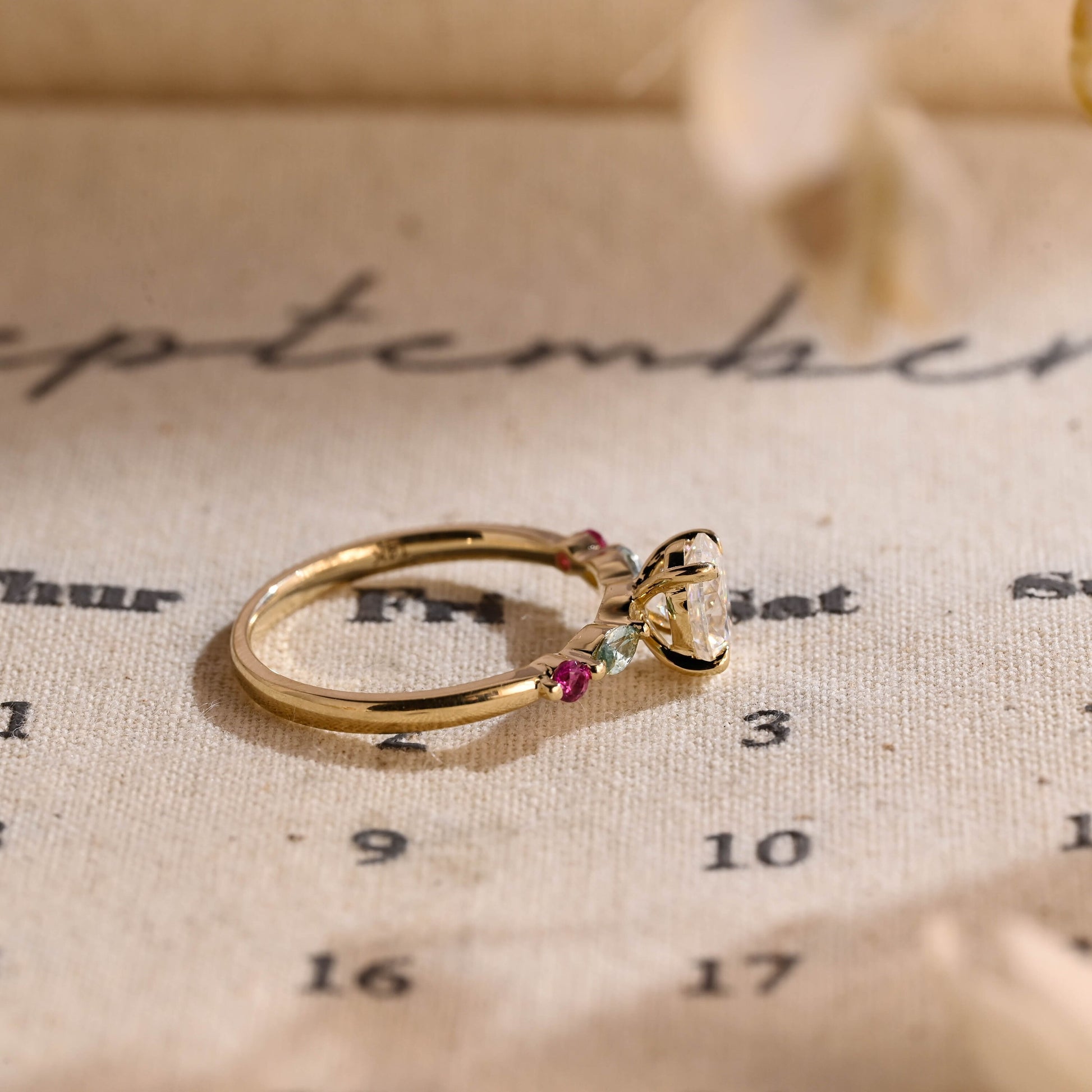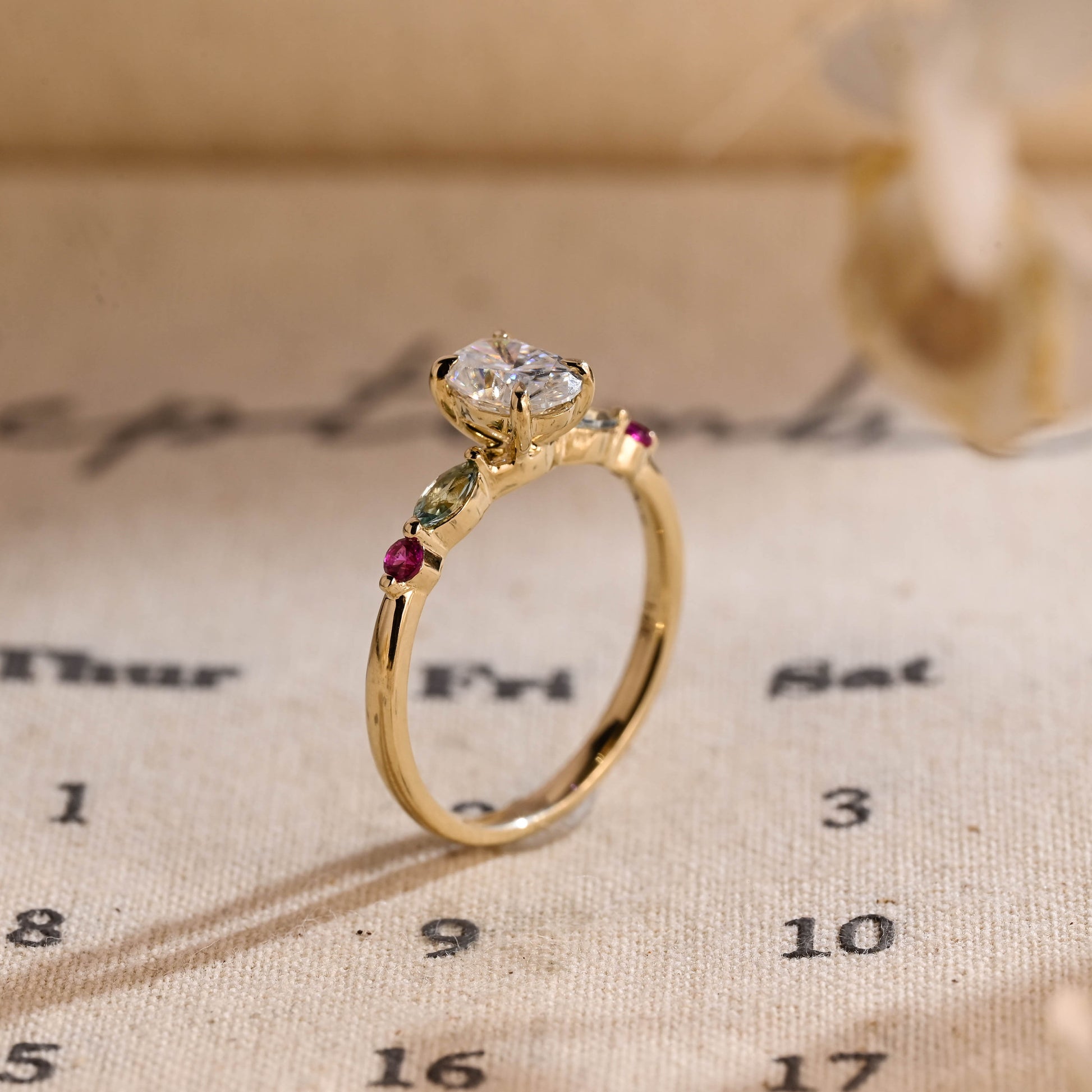1.00ct Oval Diamond Engagement Ring With Marquise Sapphire & Ruby Side Stone Ring, Promise Ring, Bridal Ring