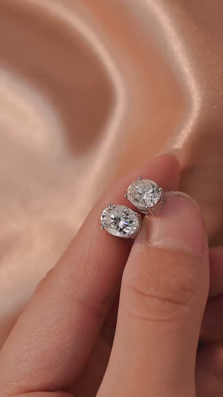 Oval Cut Moissanite Earring Stud,Oval Shaped Moissanite Earrings,2ct+2ct Real Gold Moissanite stud/Wedding Studs/Anniversary Gift for Woman