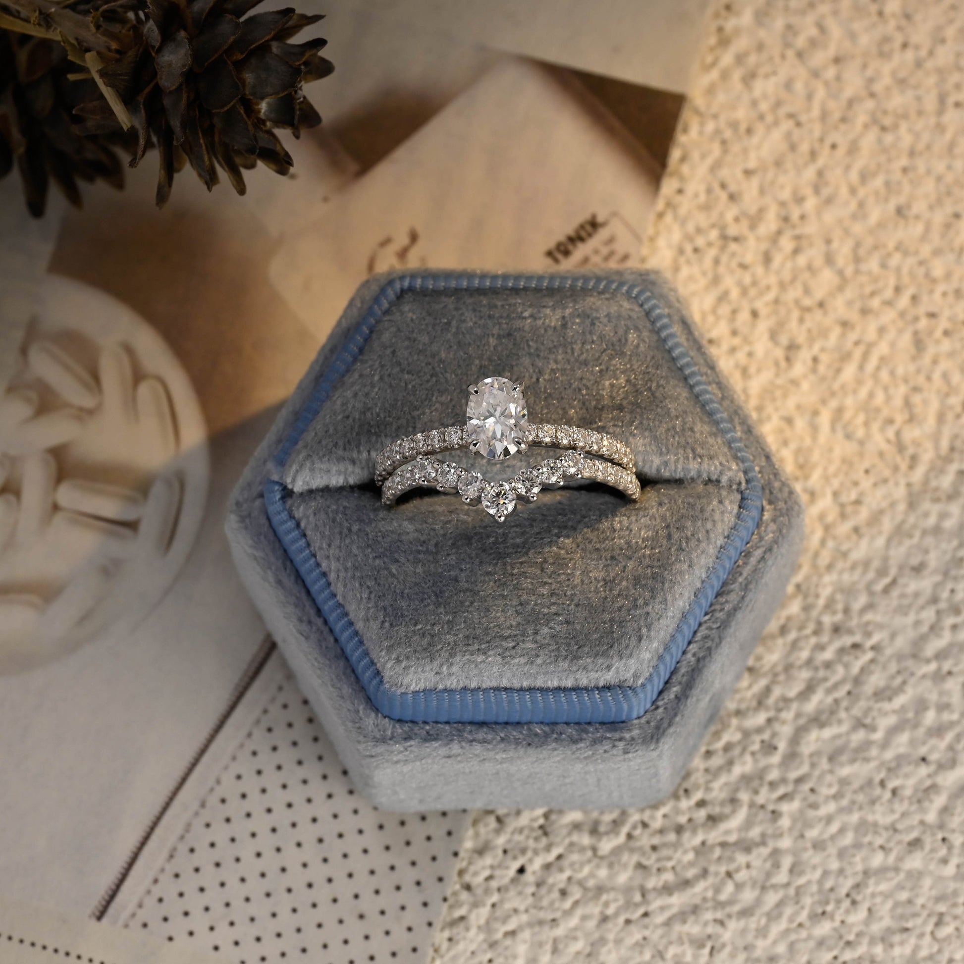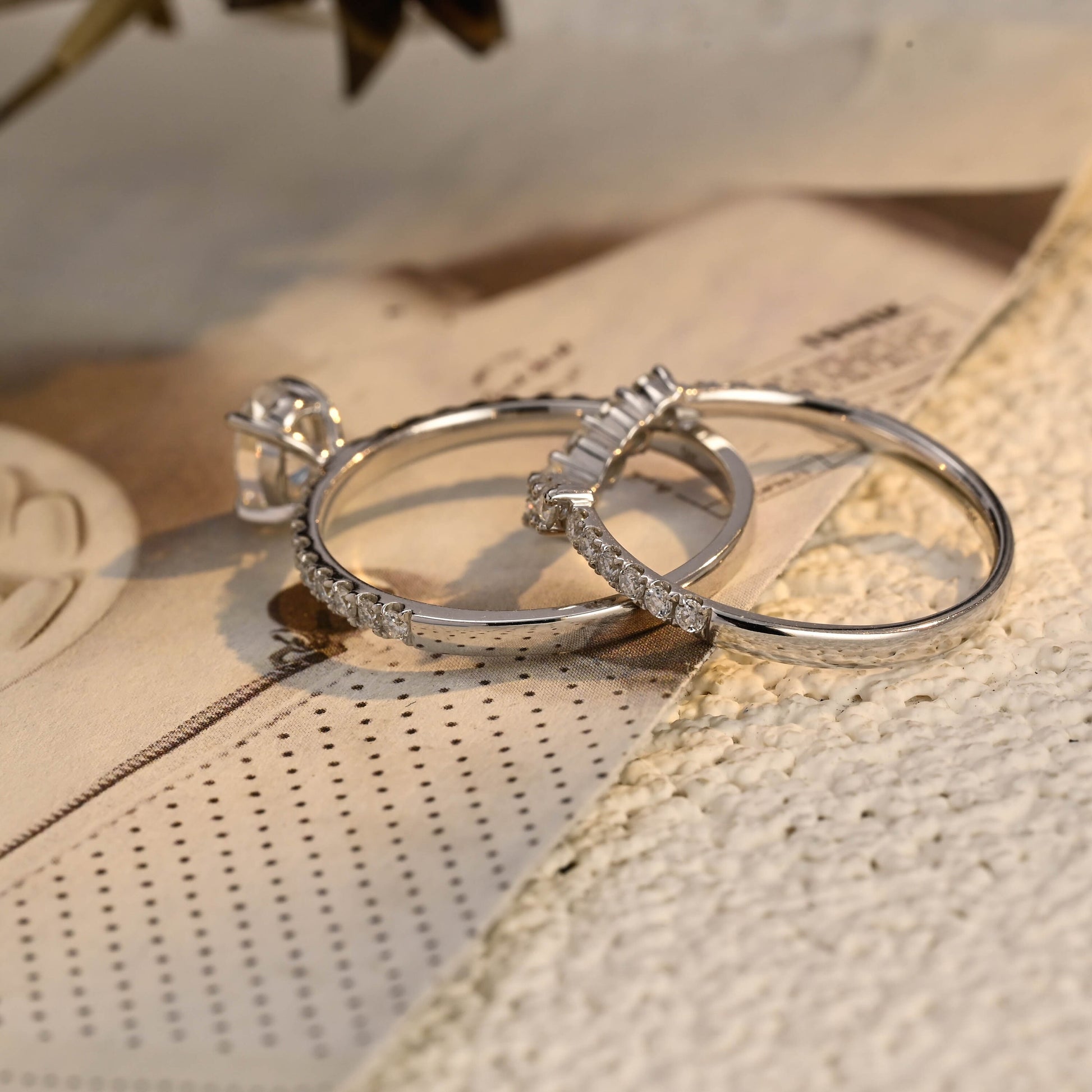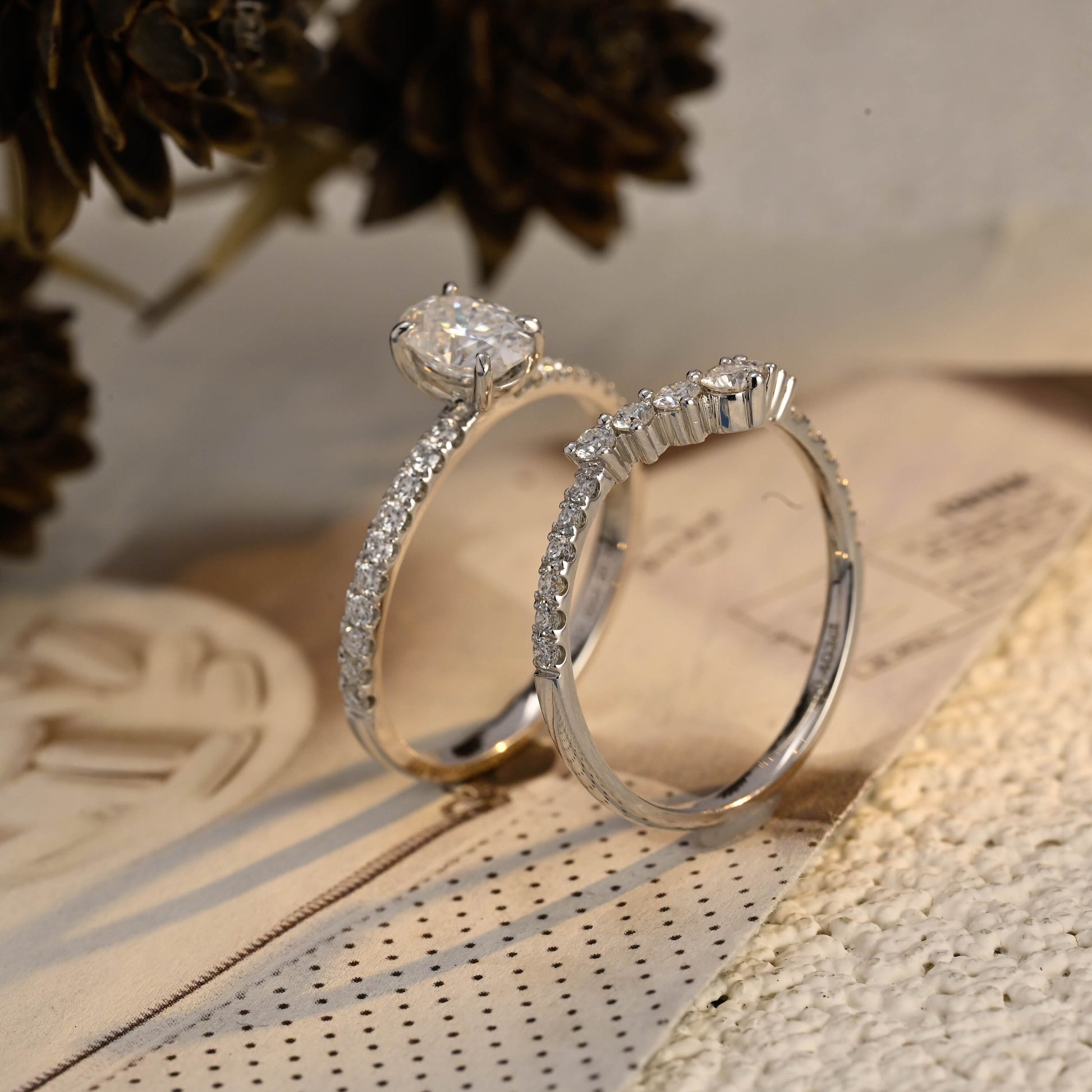 Oval Cut Moissanite Engagement Bridal Ring Set, 9K/14K/18K Solid Gold Wedding Ring Set, Classic 4 Prongs Ring/Half-Eternity Curved Band