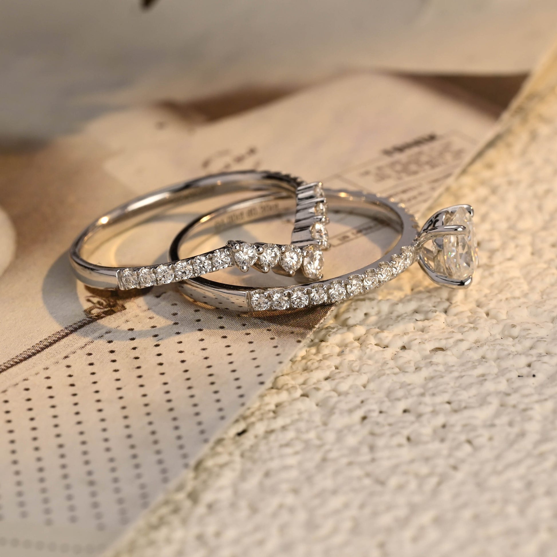 Oval Cut Moissanite Engagement Bridal Ring Set, Classic 4 Prongs