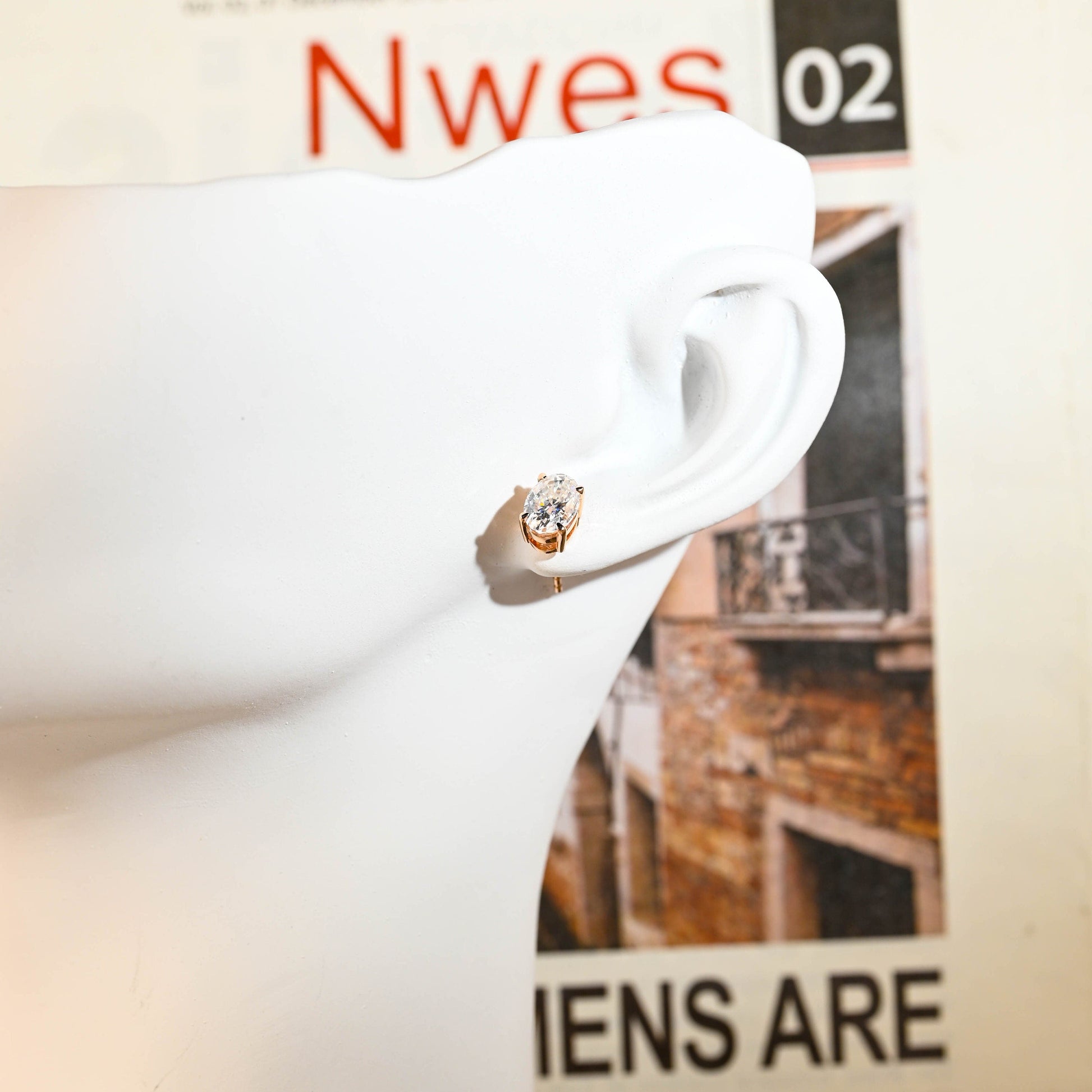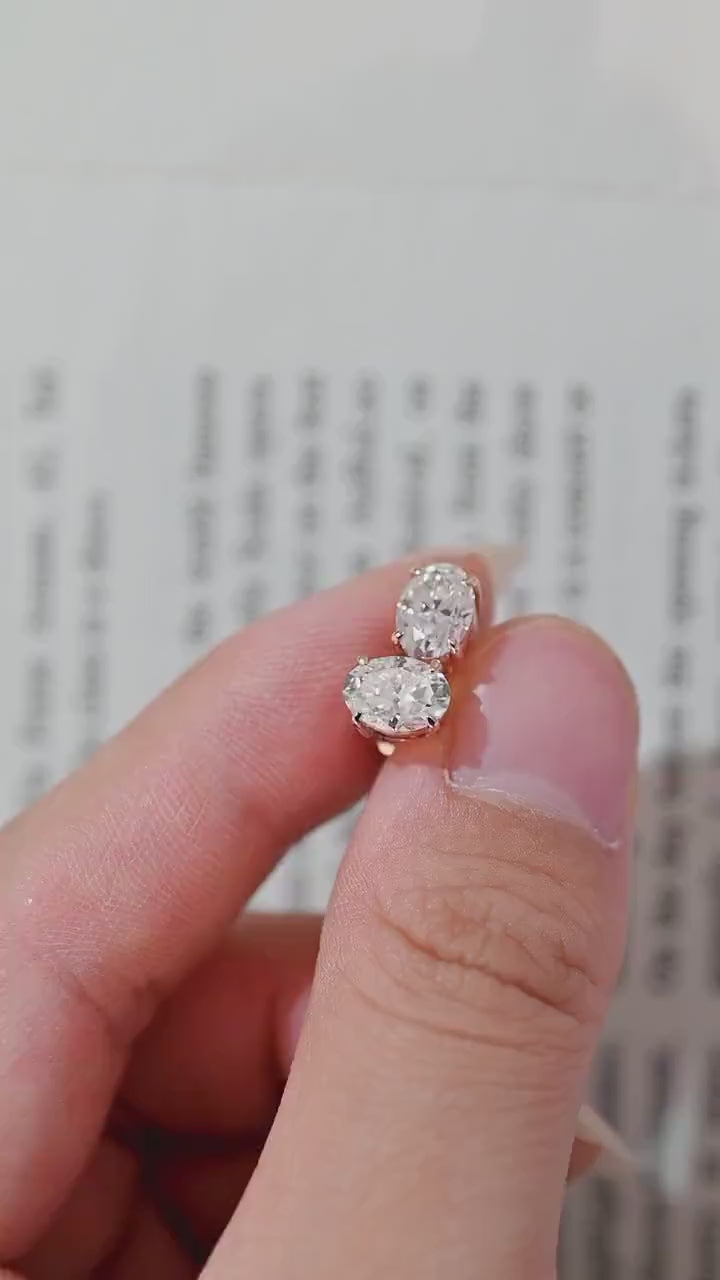 Oval Cut Moissanite Engagement Earrings Studs, Classic 9K/14K/18K Solid Gold Handmade Oval Minimalist Moissanite Vintage Earring