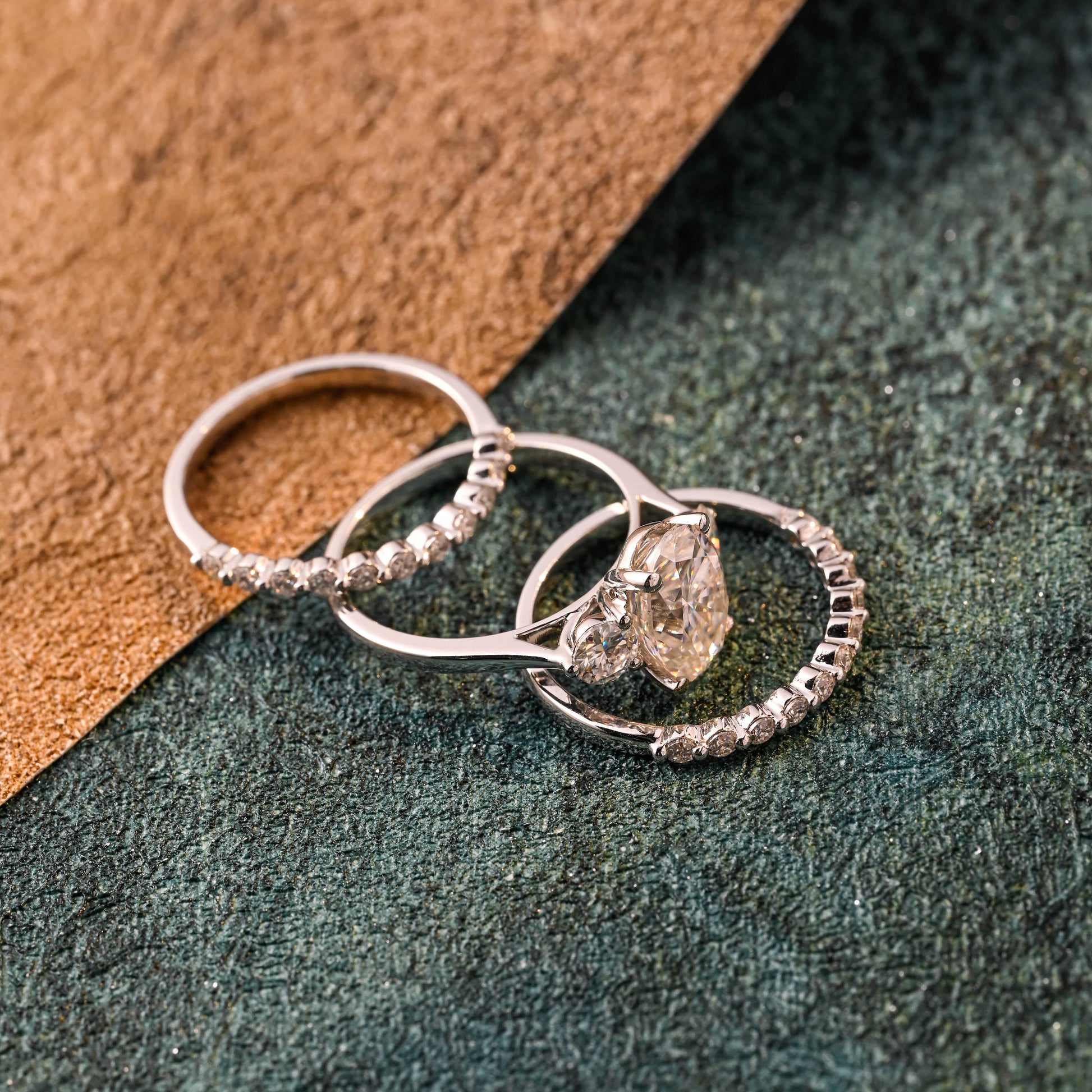 Our jewelry is crafted with simulant diamonds, moissanite, natural diamonds, lab-grown diamonds, and fine metals like 925 silver (with gold plating) and solid 10K, 14K, and 18K gold in white, yellow, and rose gold.