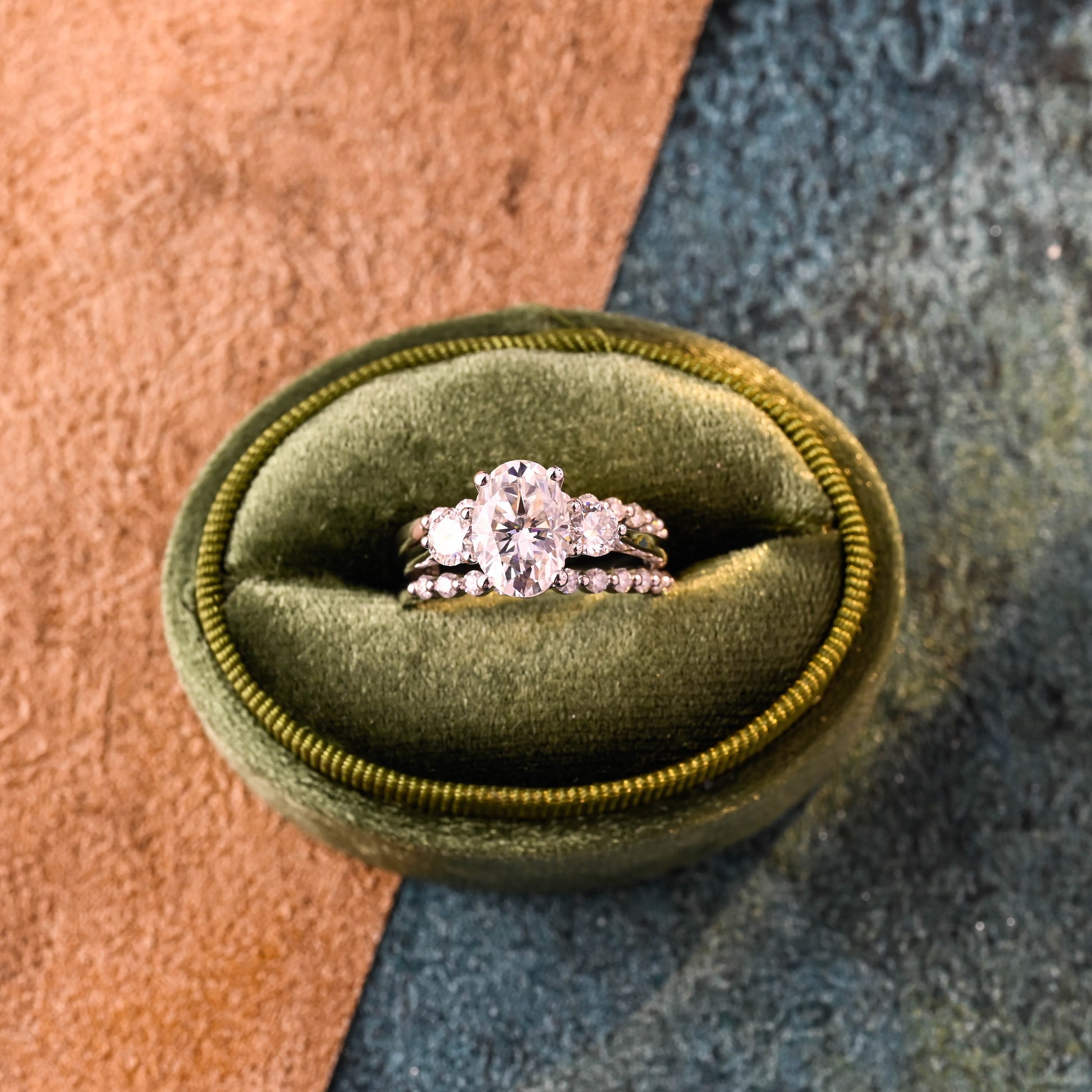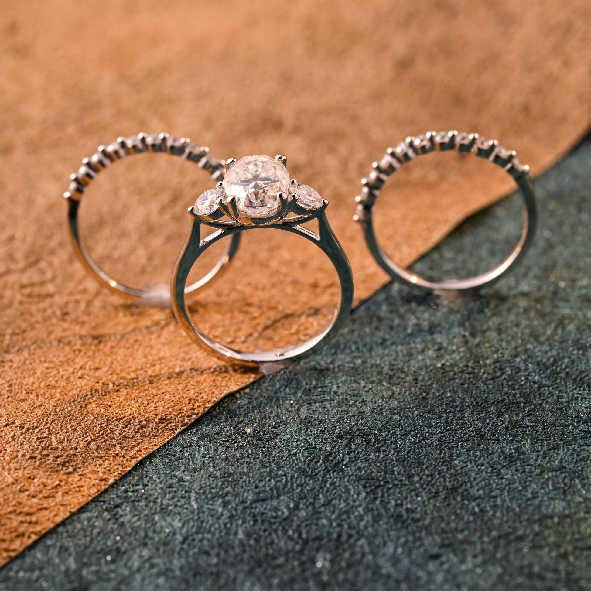Oval Cut Moissanite Engagement Ring Set, Solid Gold Wedding Ring Set, Art Deco Halo Ring Set, Vintage Bridal Set, Anniversary Gift for Woman