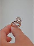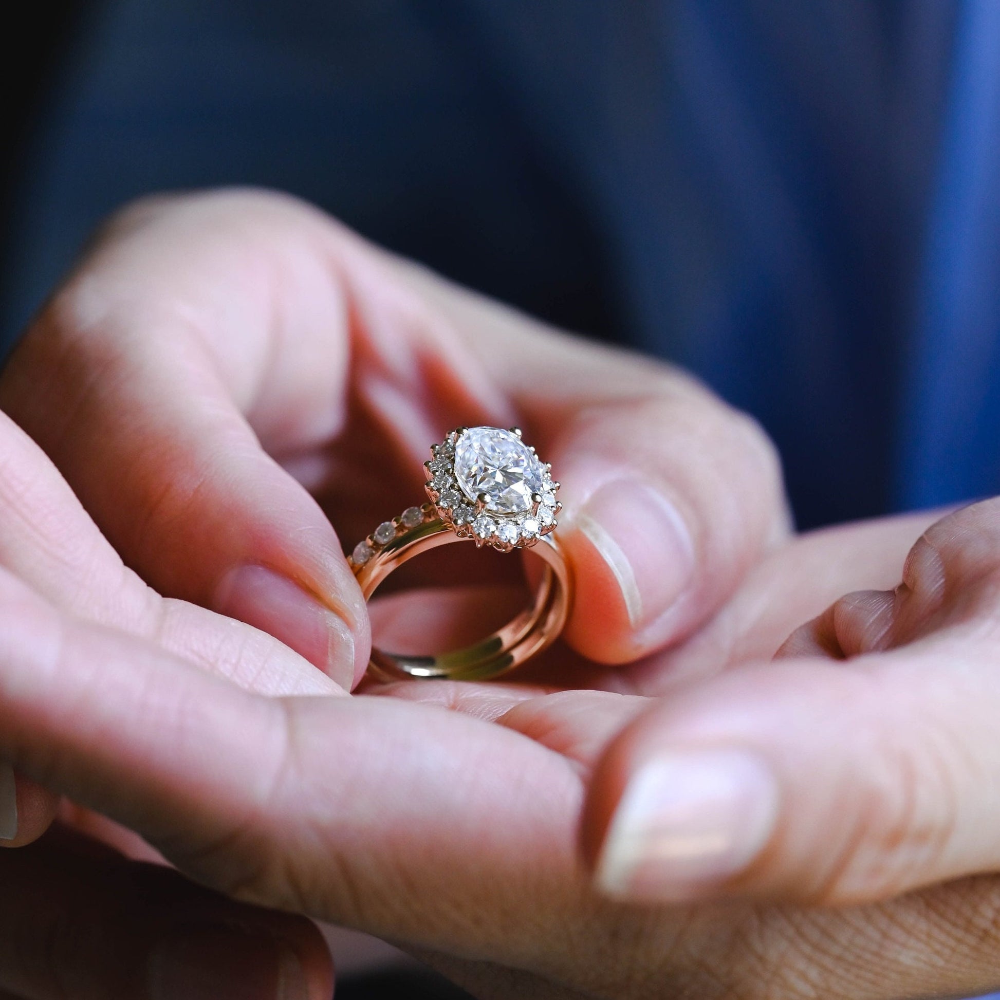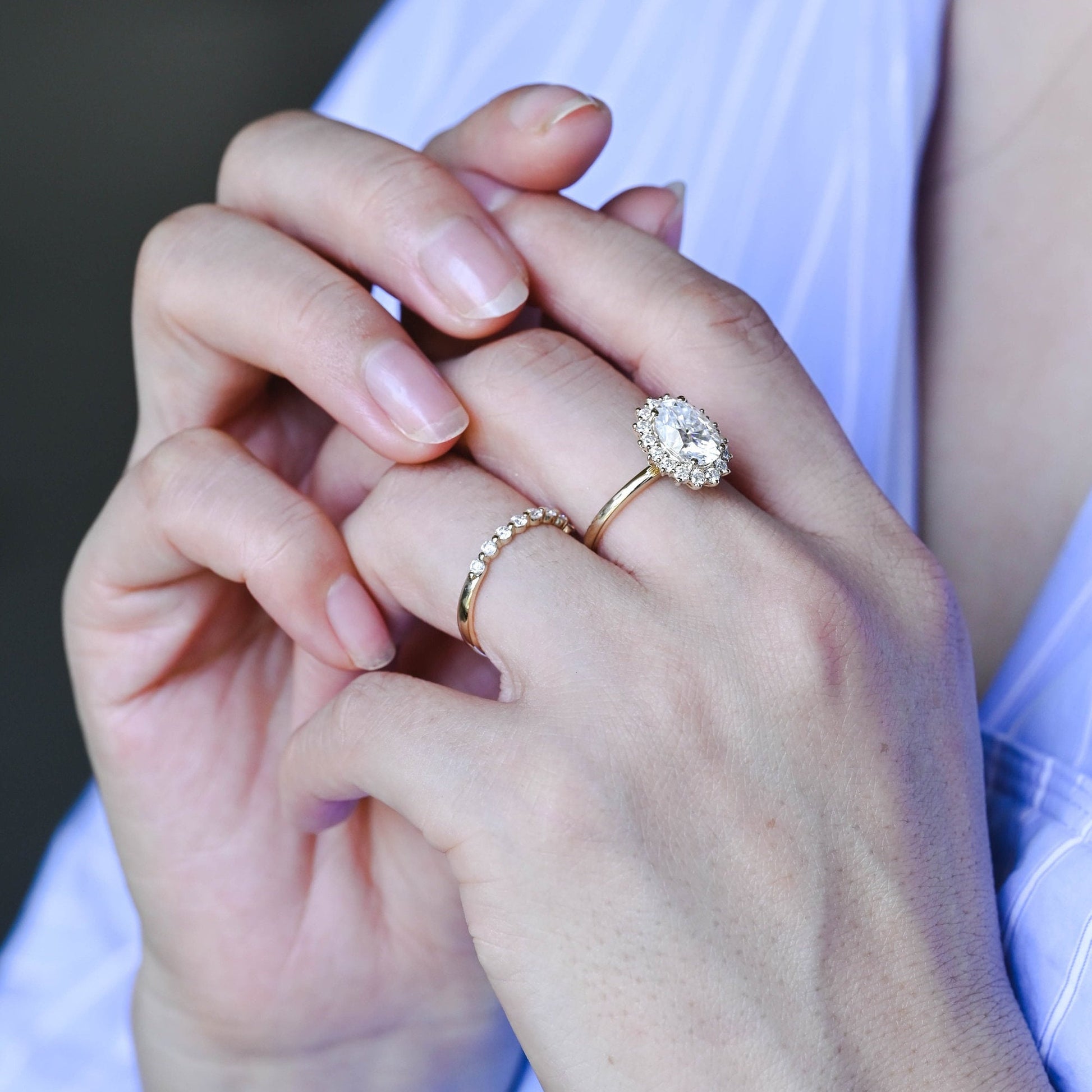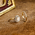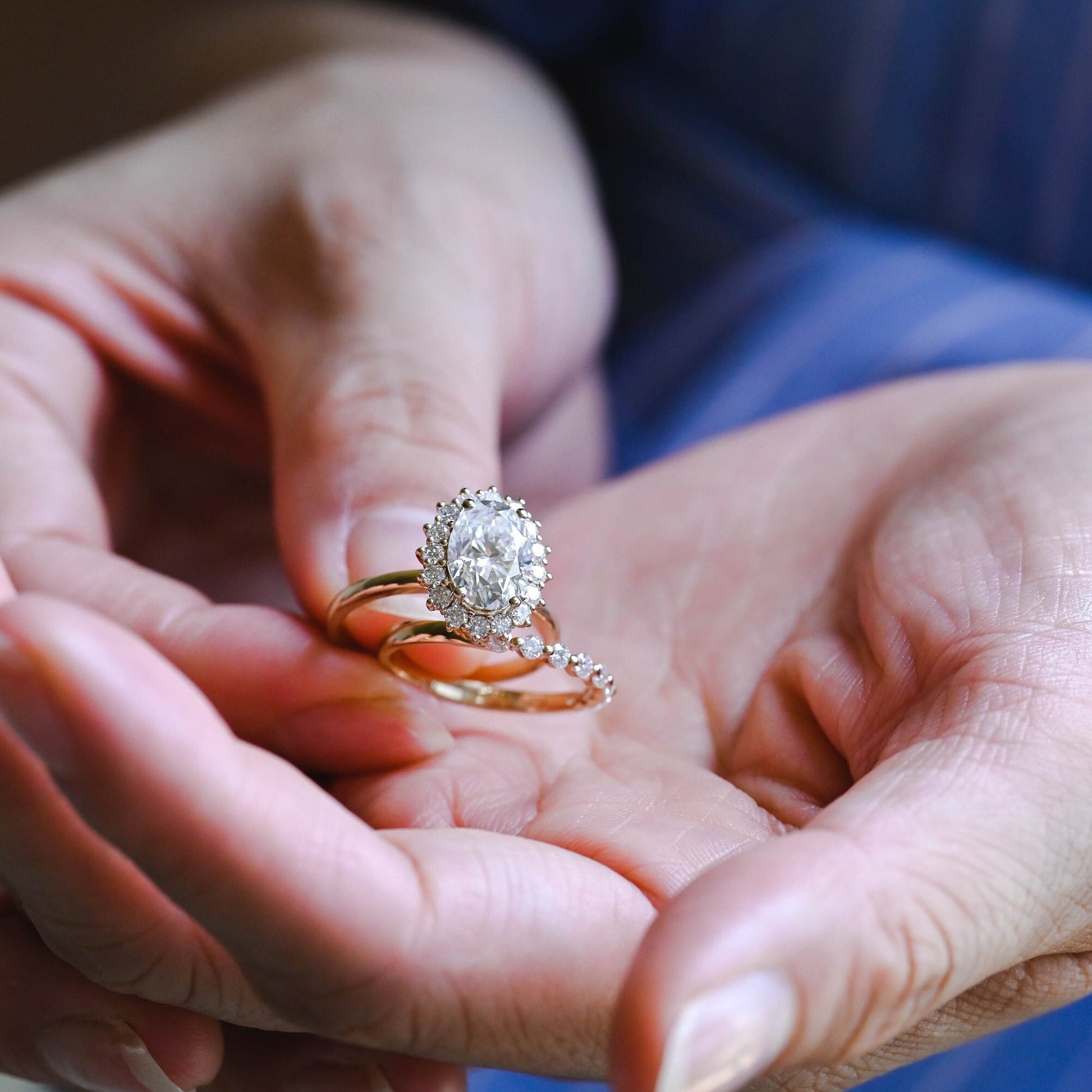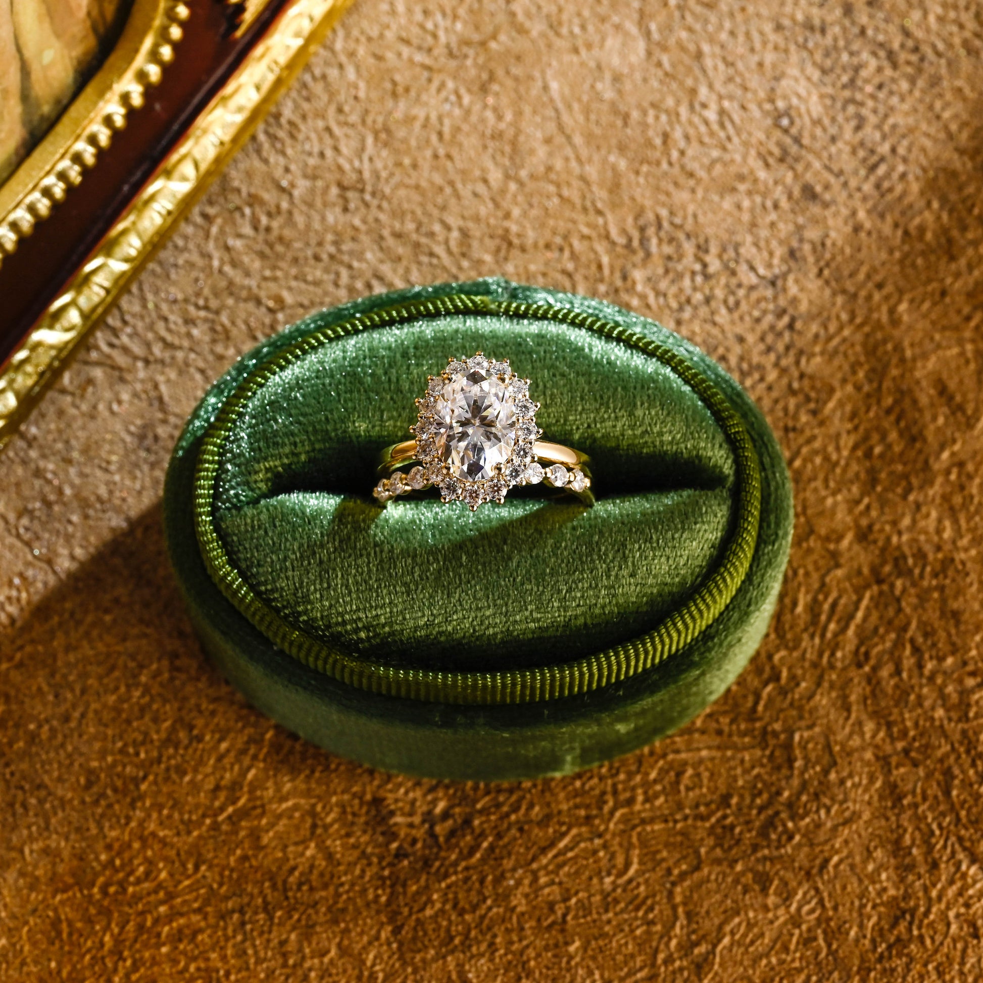 Oval Cut Moissanite Engagement Ring Set, Solid Gold Wedding Ring Set, Art Deco Halo Ring Set, Vintage Bridal Set, Anniversary Gift for Woman