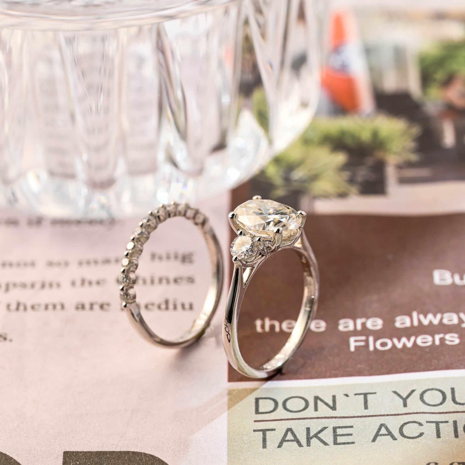 Our jewelry is crafted with simulant diamonds, moissanite, natural diamonds, lab-grown diamonds, and fine metals like 925 silver (with gold plating) and solid 10K, 14K, and 18K gold in white, yellow, and rose gold.