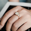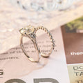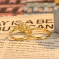 Oval Cut Three Stone Round Solid Gold Promise Handmade Bridal Ring Set