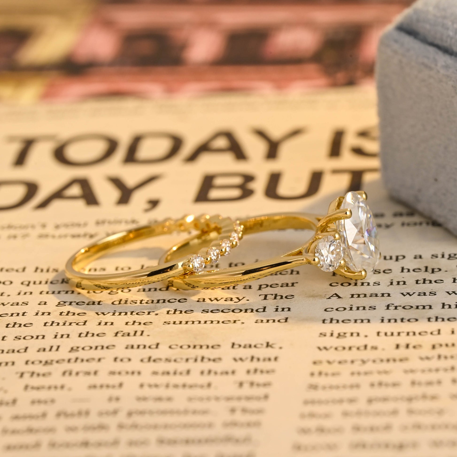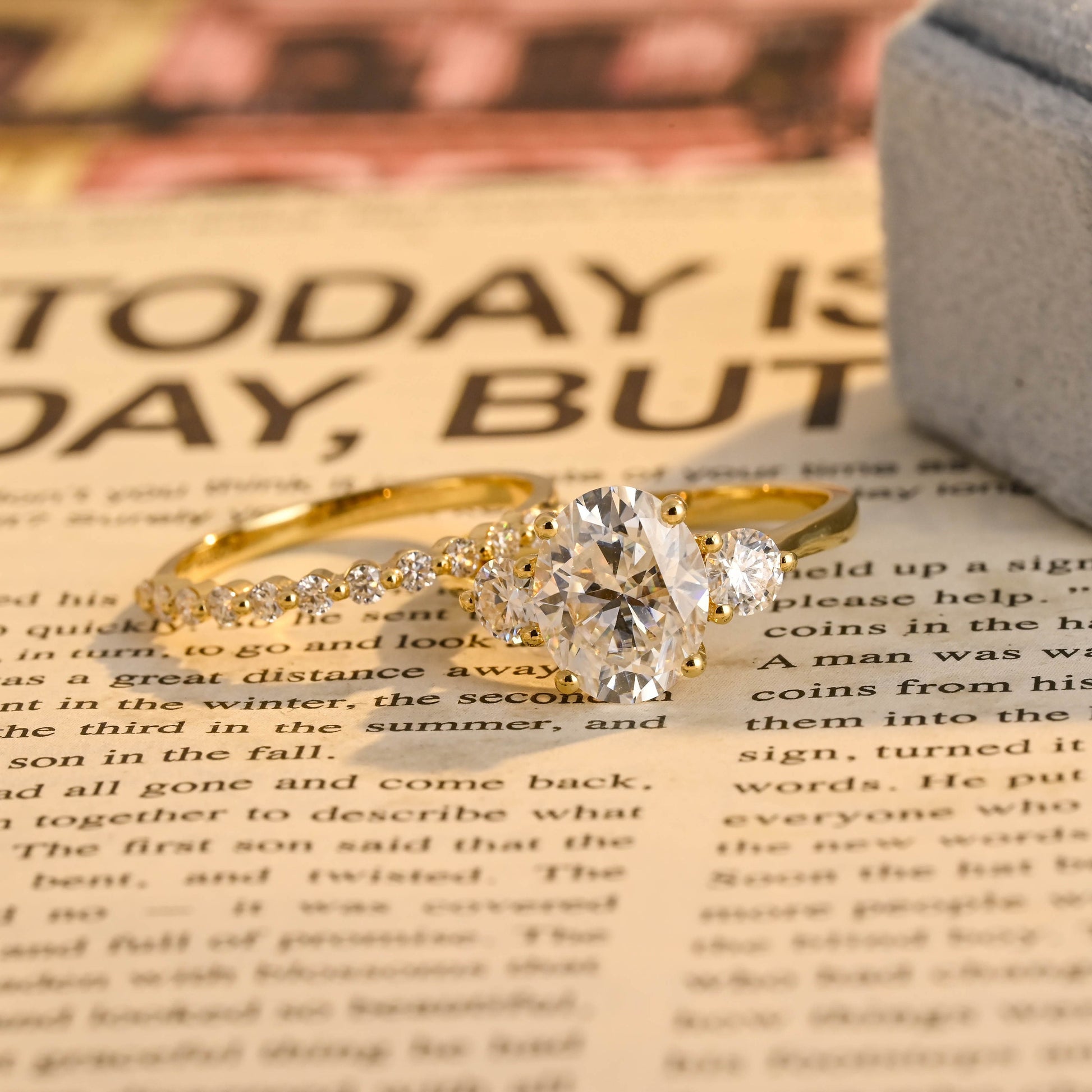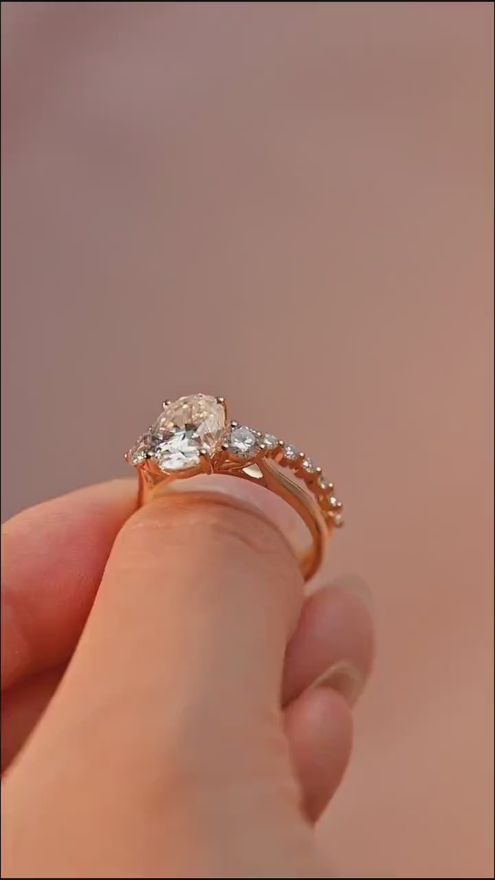 Oval Cut Three Stone Round Moissanite Engagement Ring Set, 9K/14K/18K Solid Gold Promise Handmade Bridal Ring Set, Anniversary Gift for Her