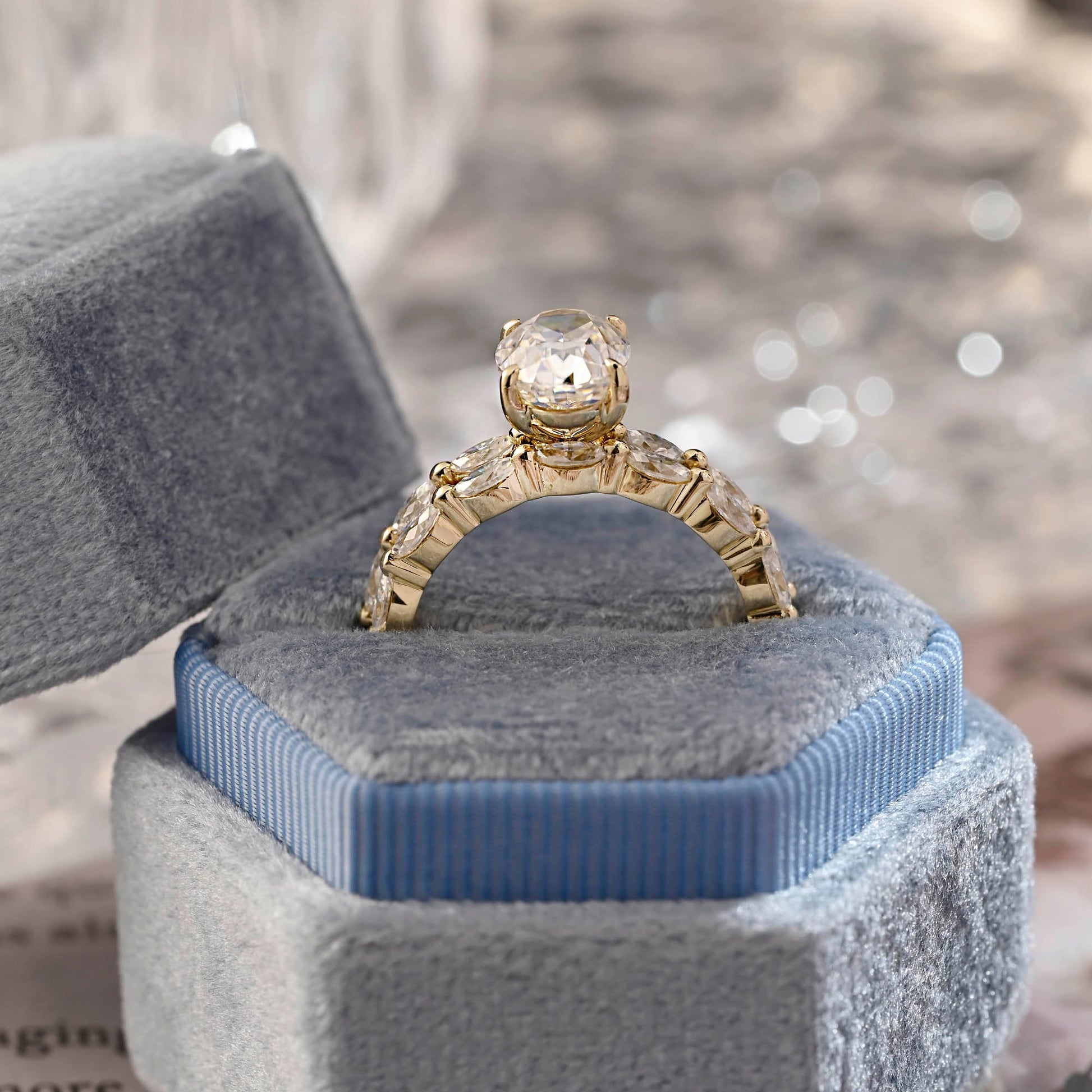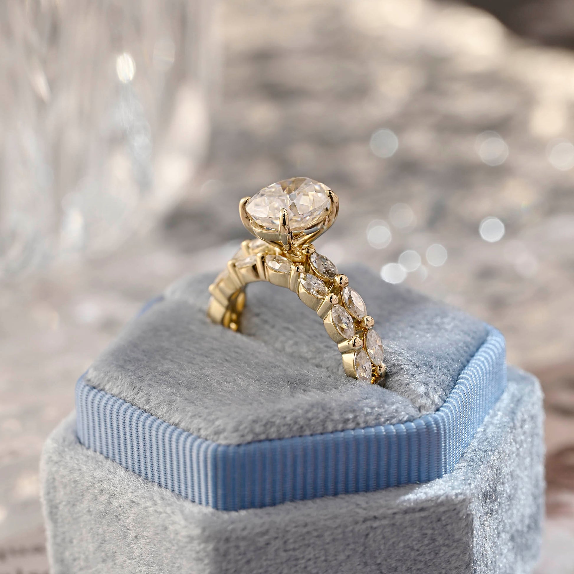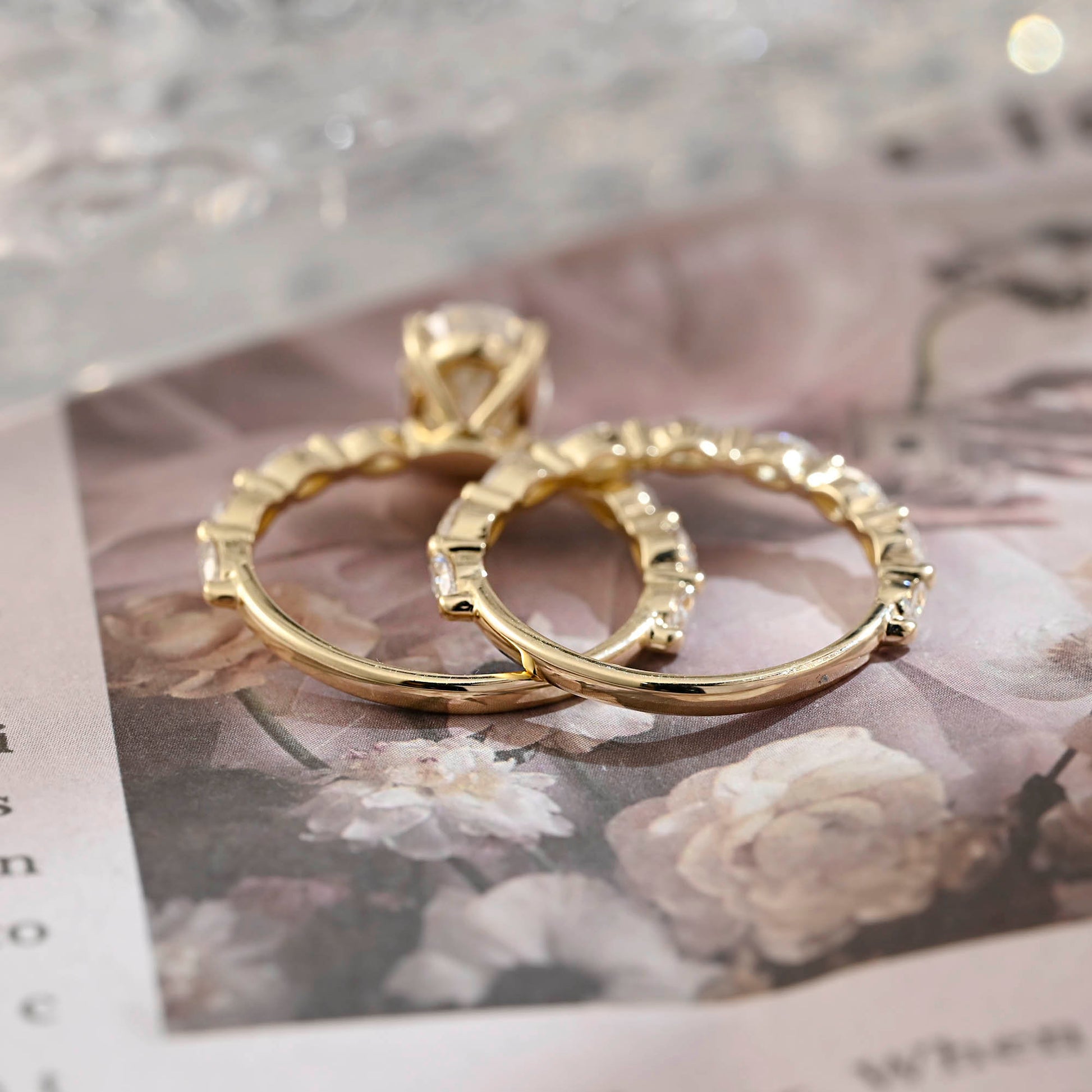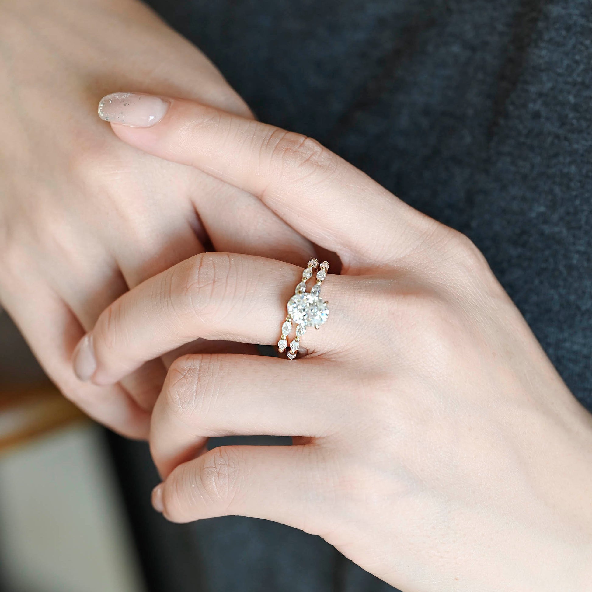 Oval/Marquise Cut Moissanite Engagement Ring Set, 9K/14K/18K Solid Gold Customizable Promise Handmade Anniversary Bridal Ring Set for Women