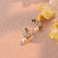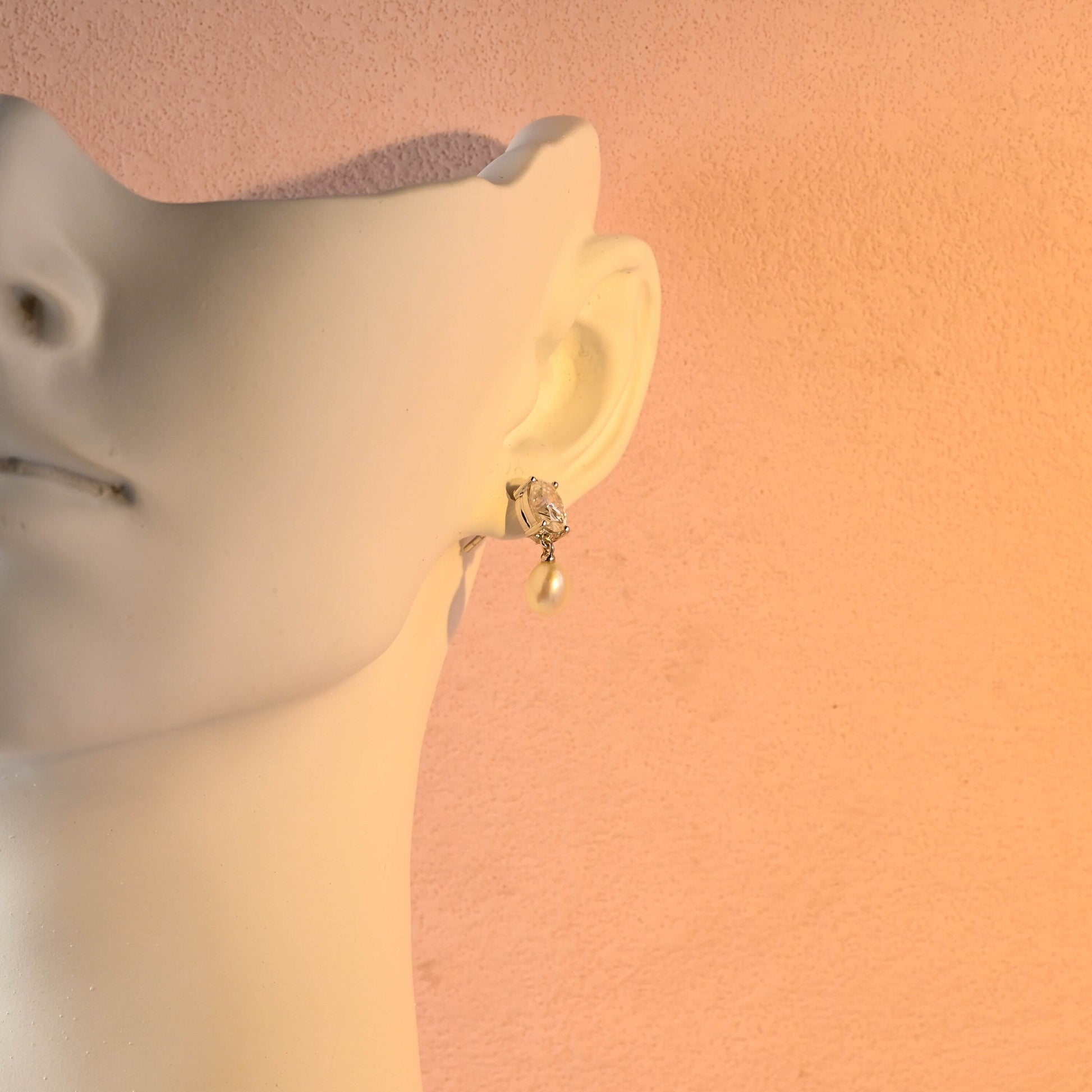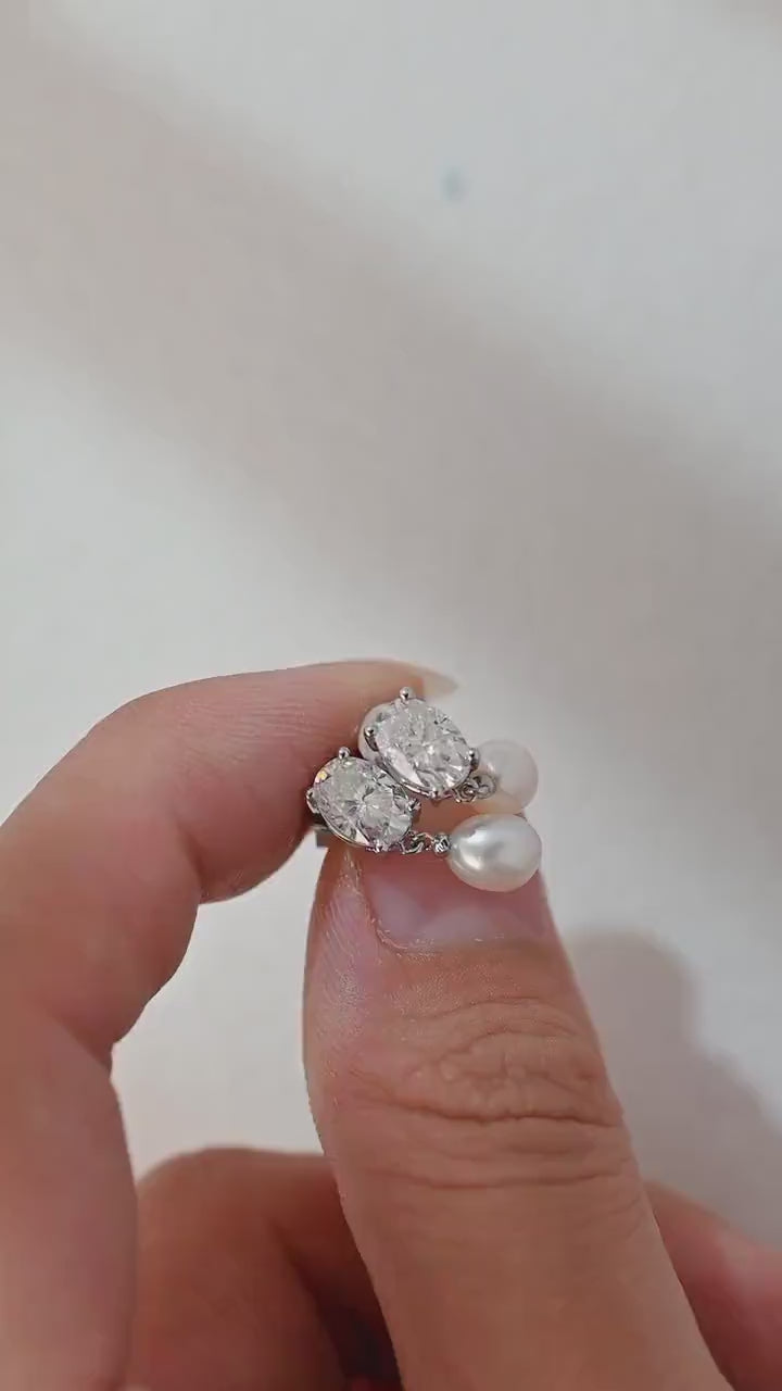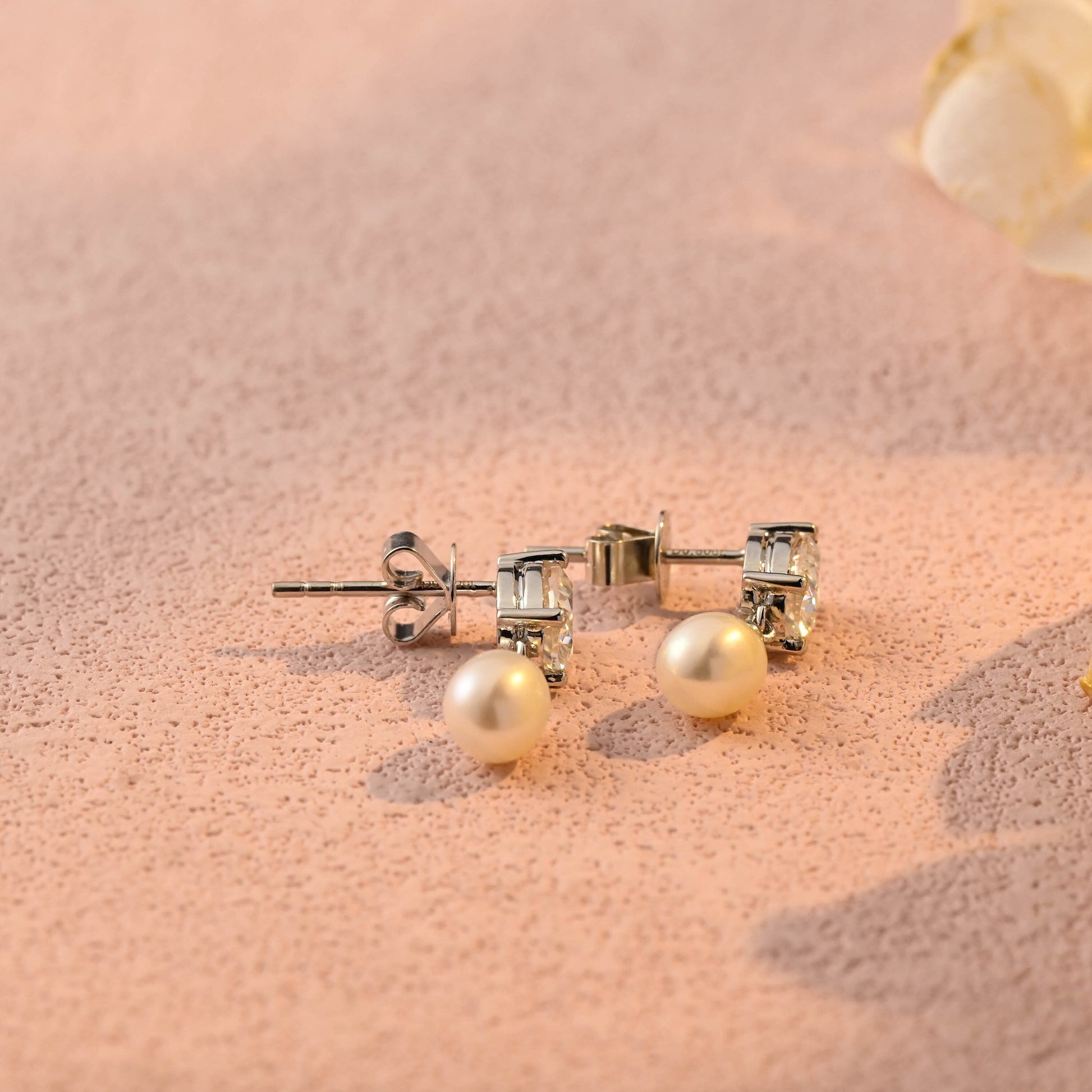 Oval Moissanite and Pearl Earring Stud/Oval Moissanite Earrings Gold/Pearl Drop Earrings/Teardrop Earrings Gold/Anniversary Gift for Woman