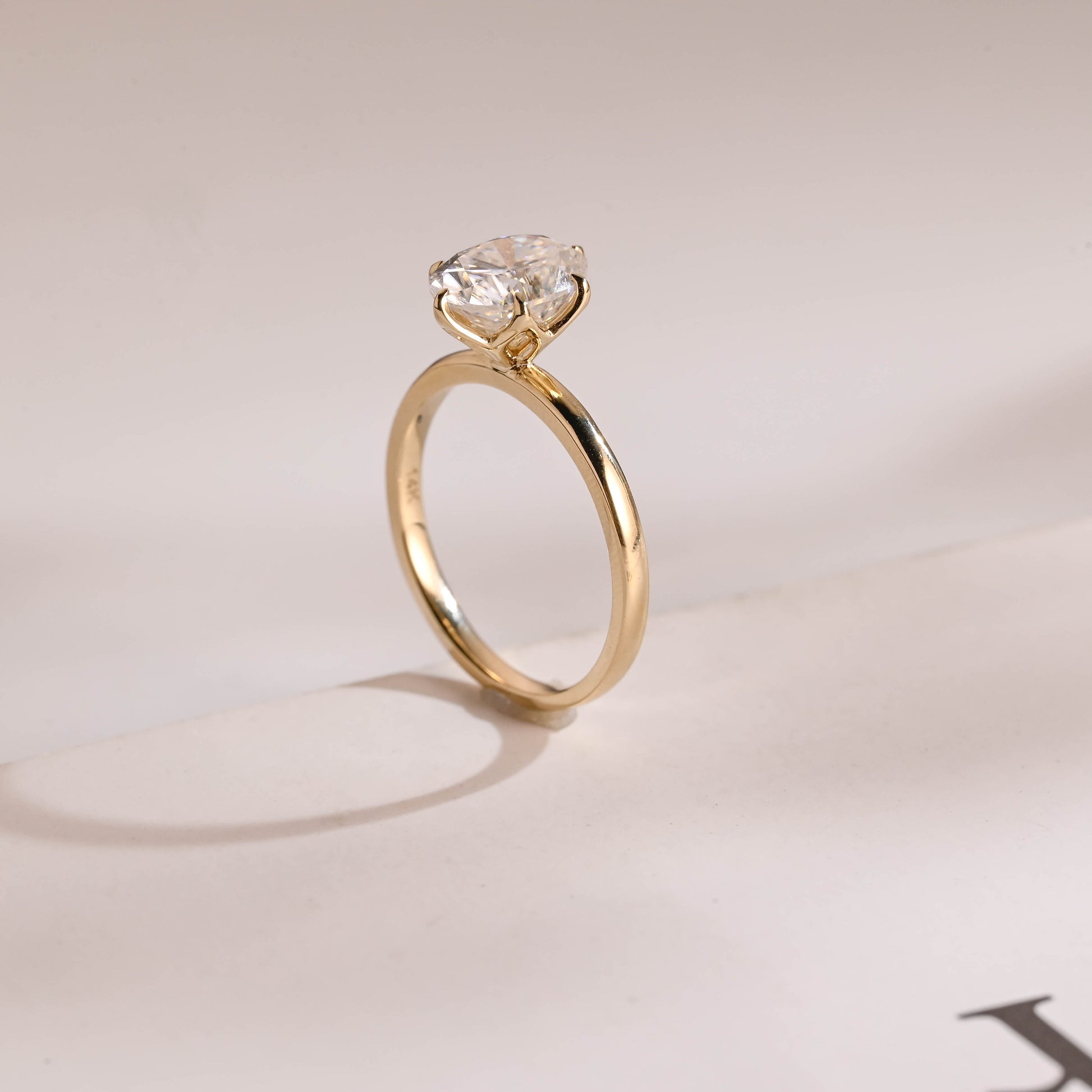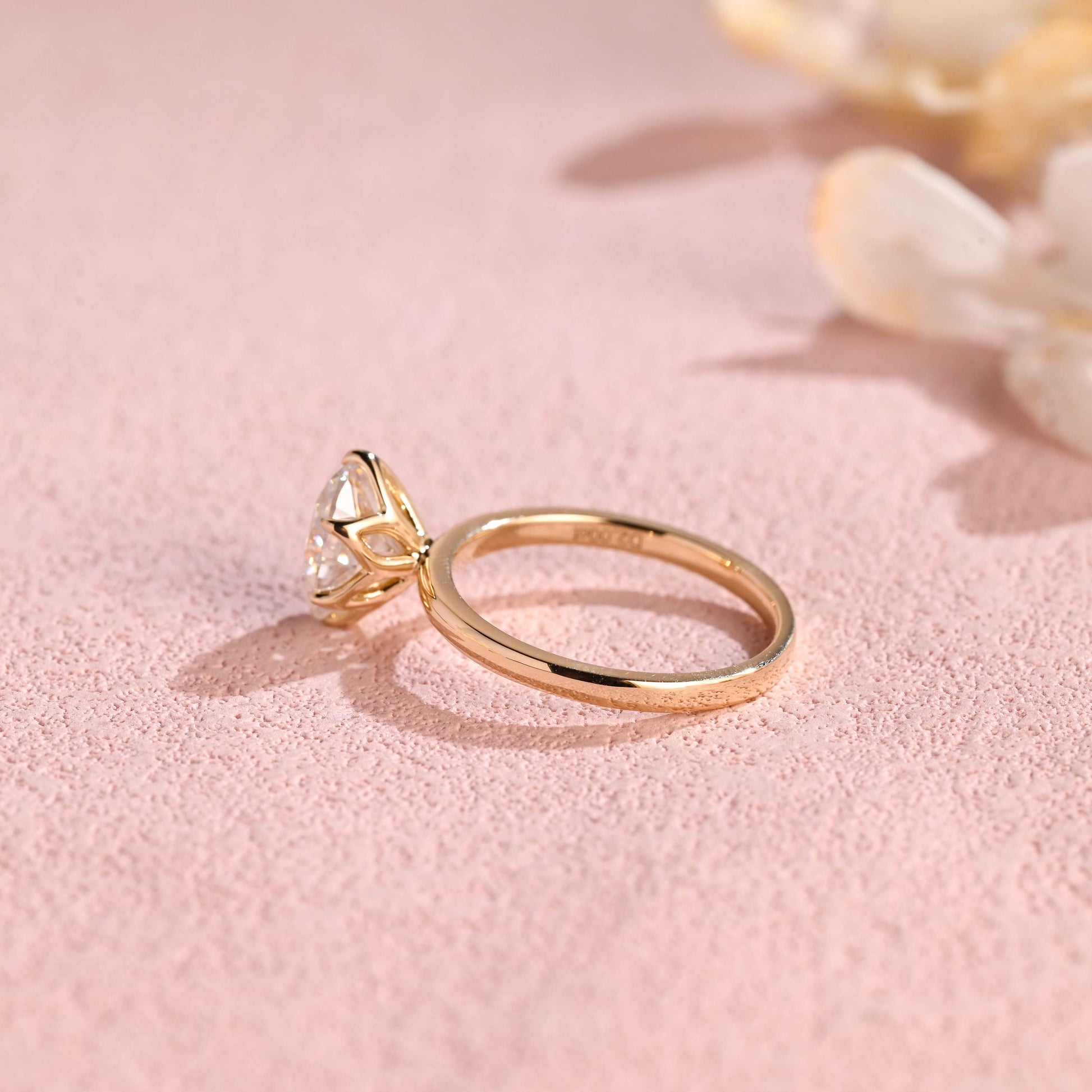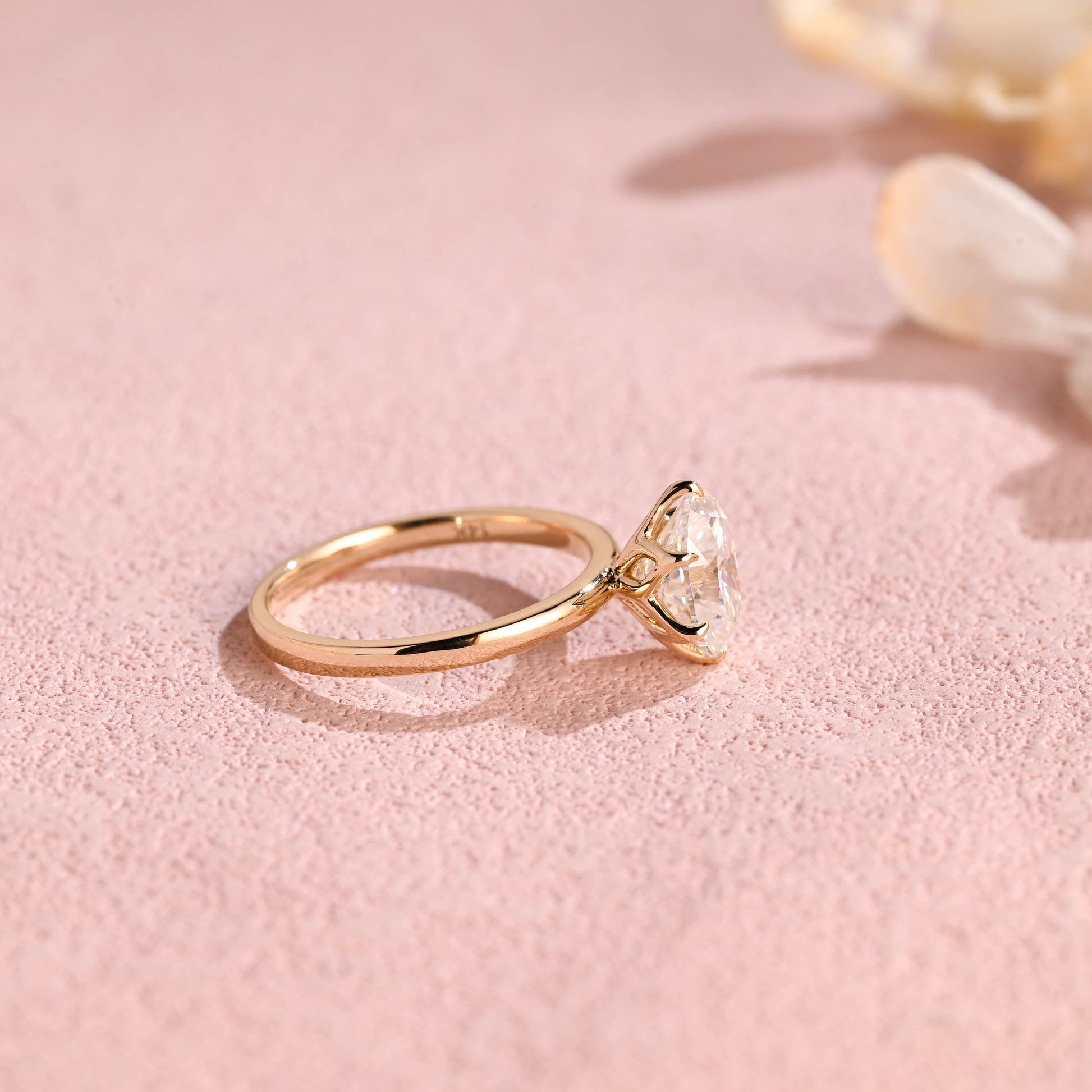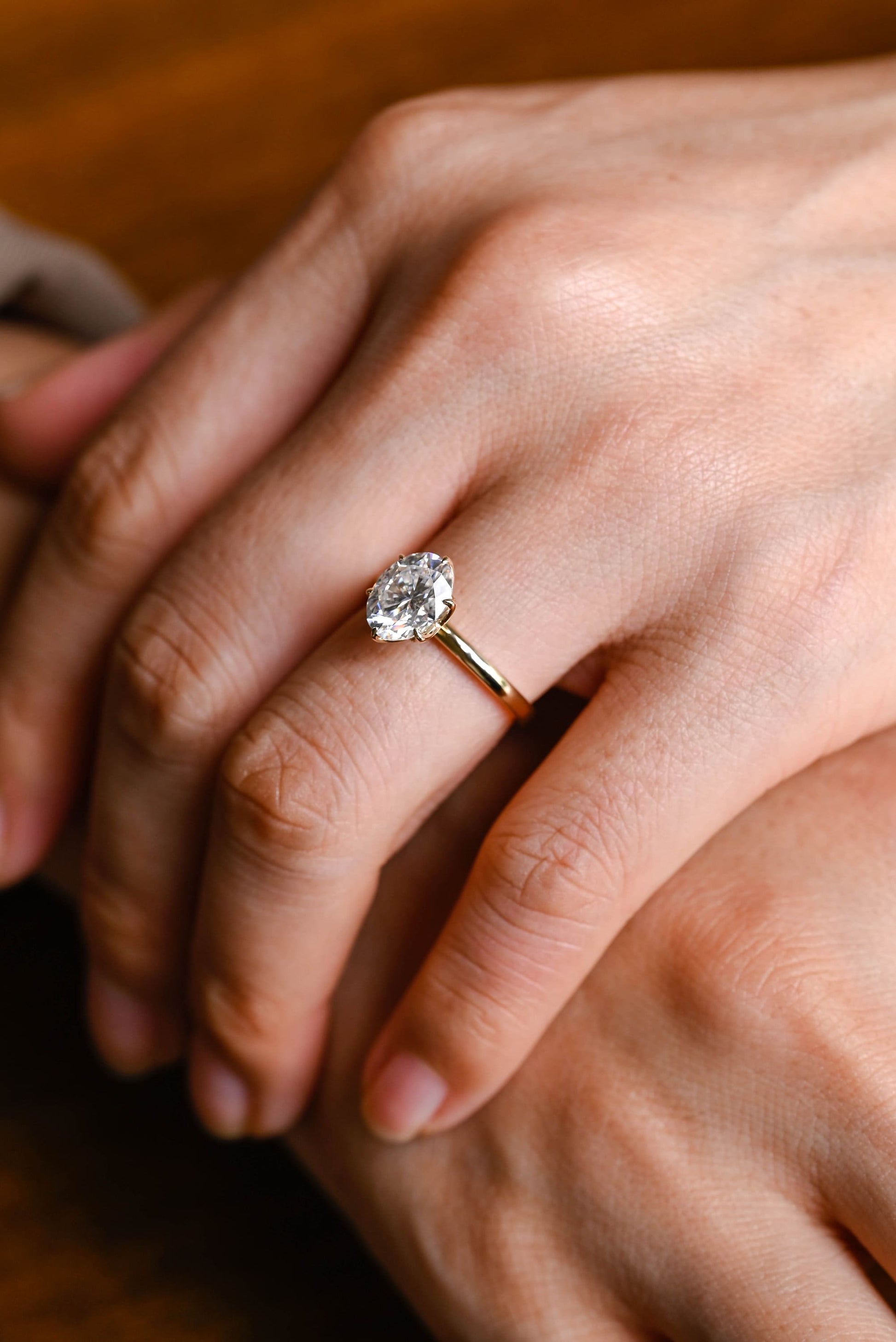 9mm Oval Diamond Engagement Ring Flower Petal Setting, Oval Cut Dainty Ring, Solitaire Oval Ring, Gift for Women